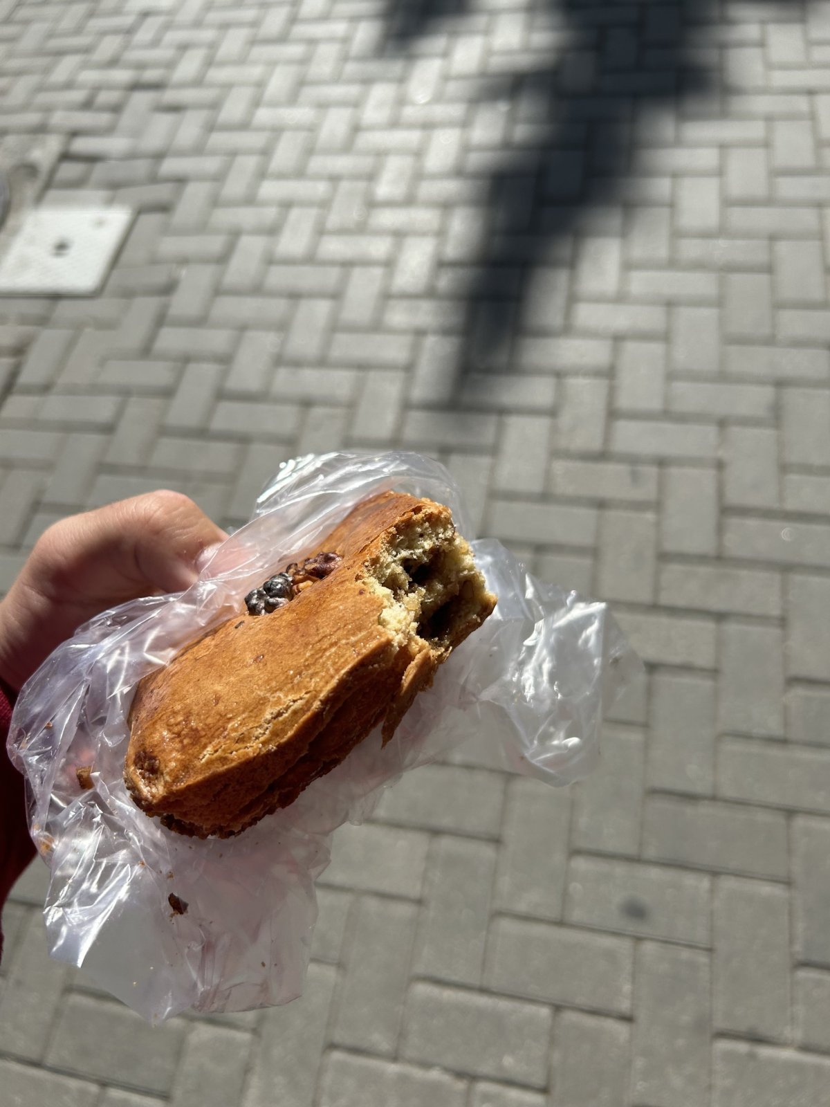 Další den musím na letiště Tbilisi, odkud poletím do Baku, hlavního města Ázerbajdžánu. Cestou si dávám obří kus buchty za 2 GEL a kupuju si vodu, kterou hned vypiji. Pak jen čekám na autobus.