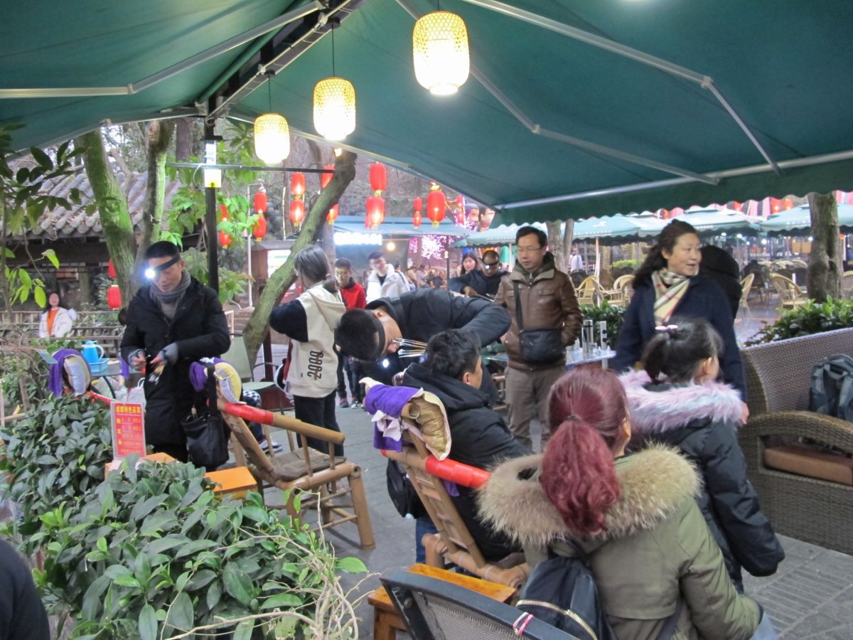 Je předvečer lunárního nového roku, jakýsi místní Silvestr. Spousta ohňostrojů a dělobuchů. Davy lidí v ulicích starého města. V hotelu jsme dostali jako pozornost jiaozi (ťiao-c'), vařené taštičky s různými druhy náplní. V rybí hospodě, kde jsme večeřeli, nesměla paní přebalit mimino, podle obsluhy by to vadilo ostatním hostům. O chvíli později zabíjela stejná obsluhující rybu přímo před zraky hostů tím, že s ní mlátila o zem tak dlouho, dokud se ryba nepřestala hýbat... Před půlnocí jsme oslavili lunární nový rok panákem místní domácí švestkové pálenky, na kterého nás pozval Francouz, se kterým jsme se náhodně dali do řeči. Žije ve starém městě už 10 let a má tam se svou čínskou manželkou bar.