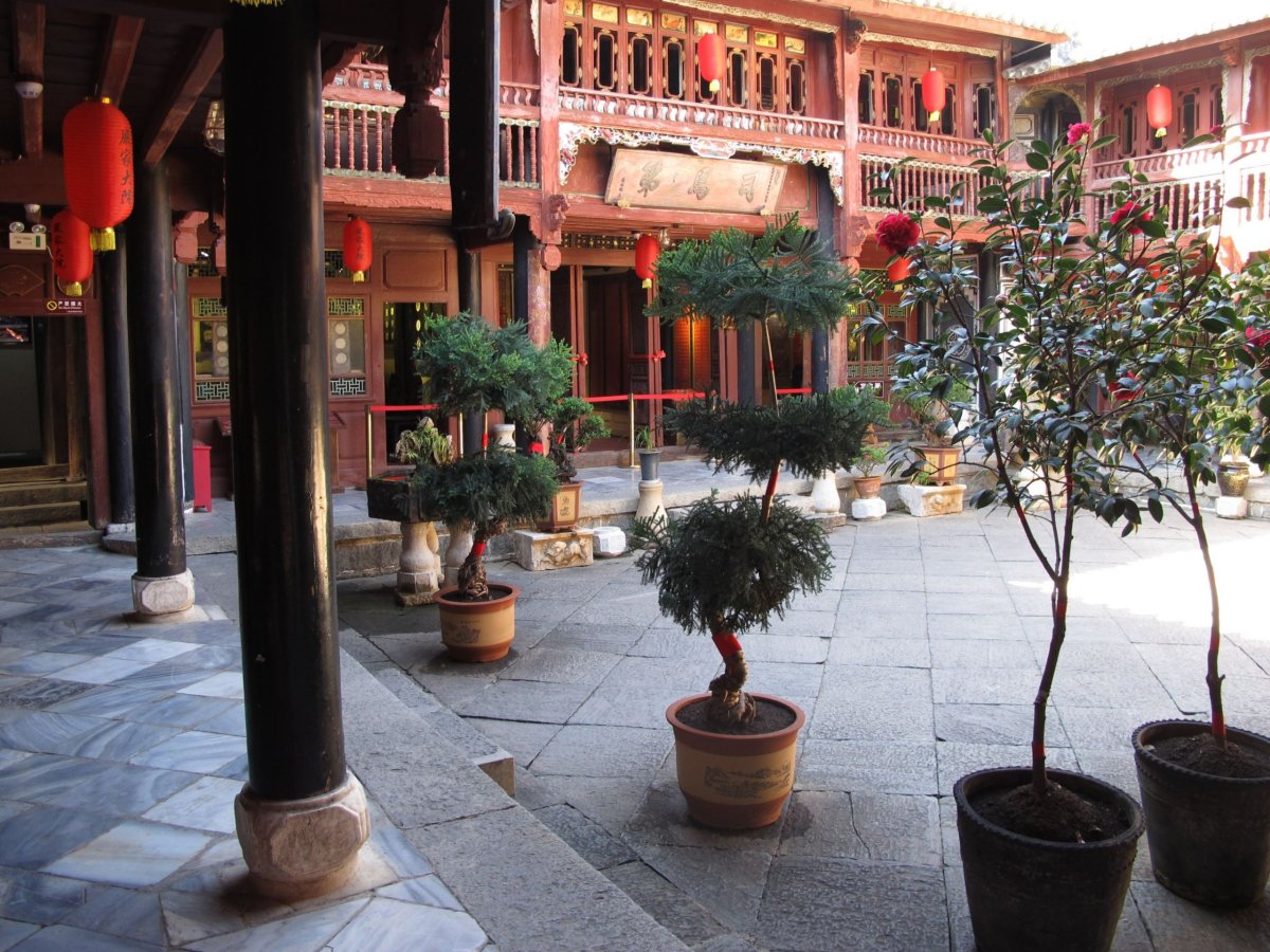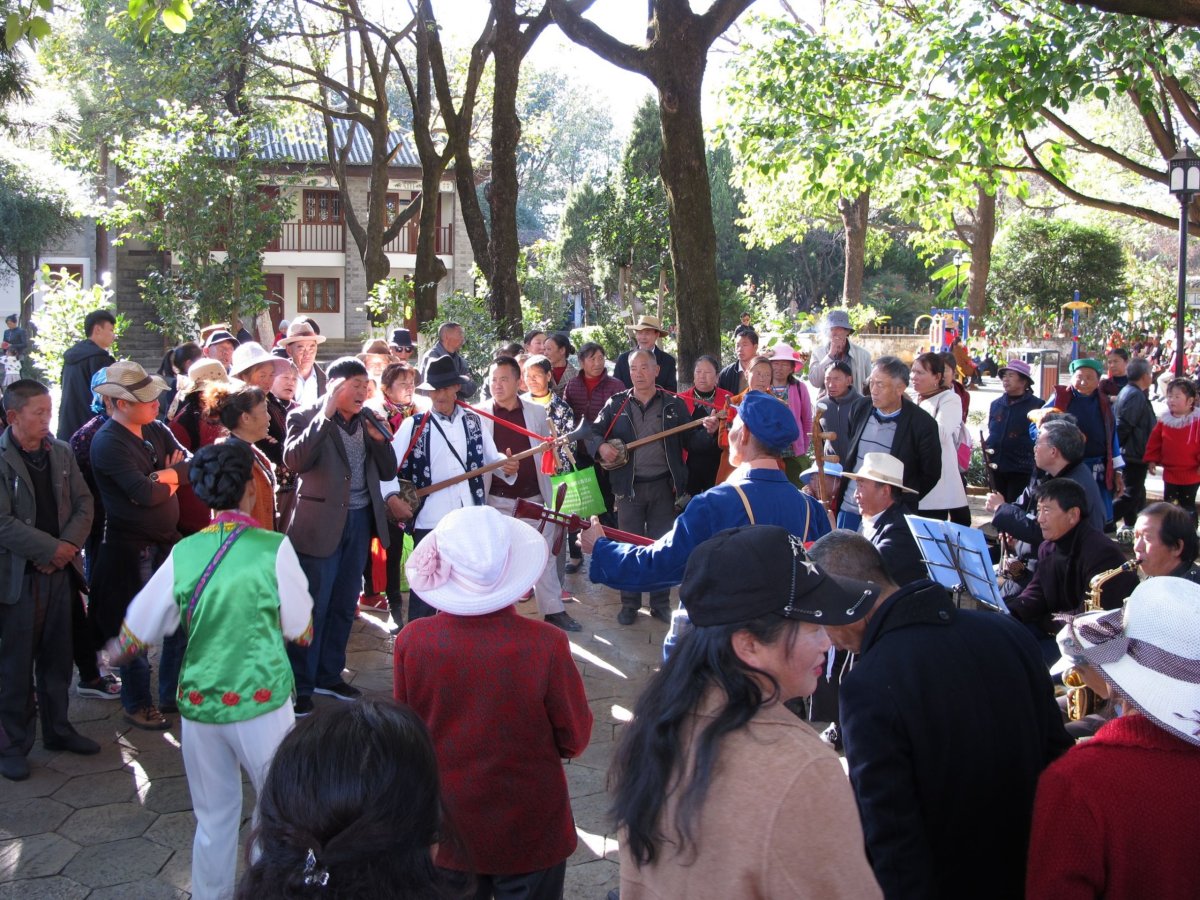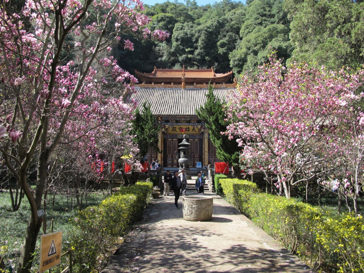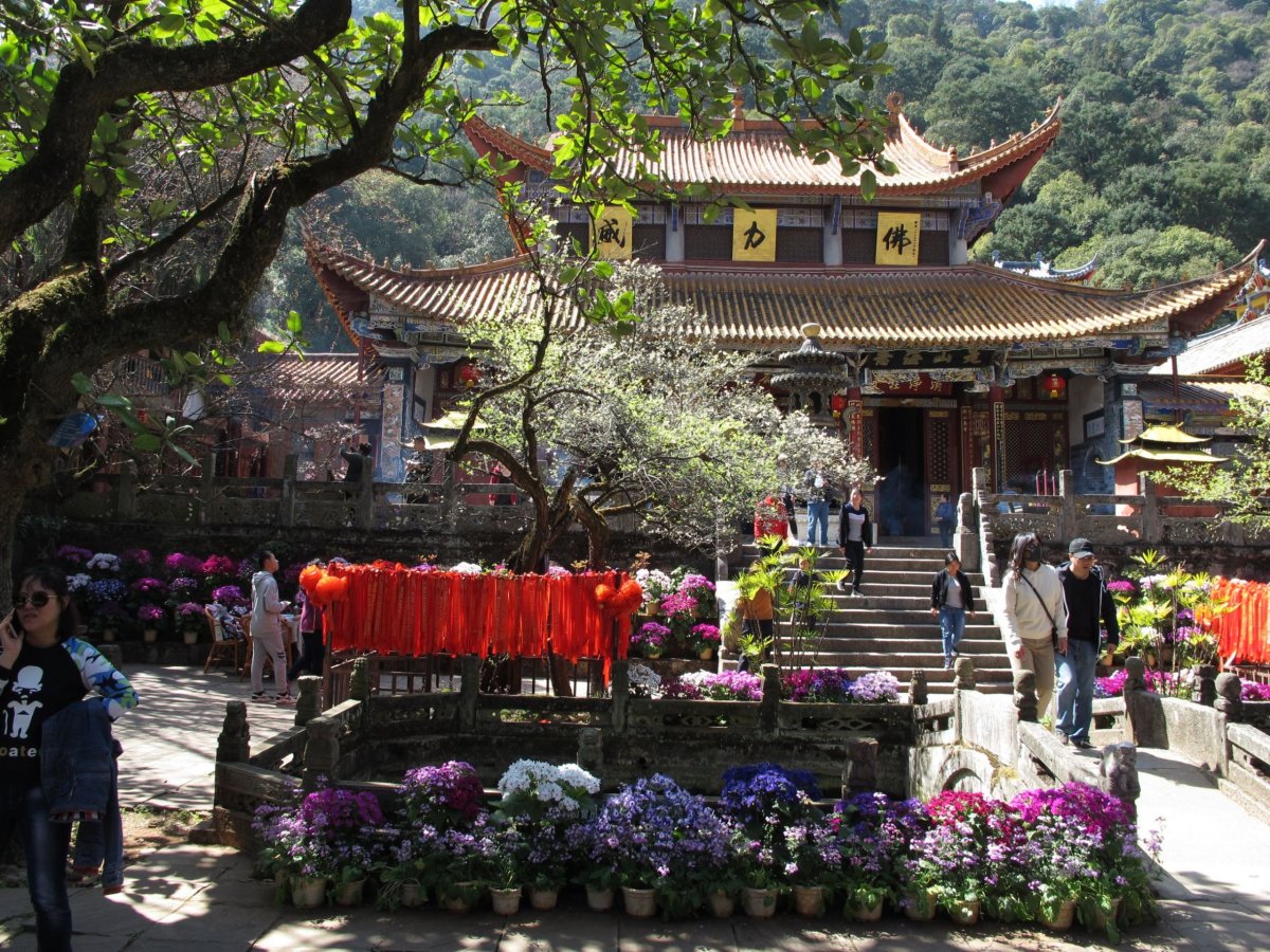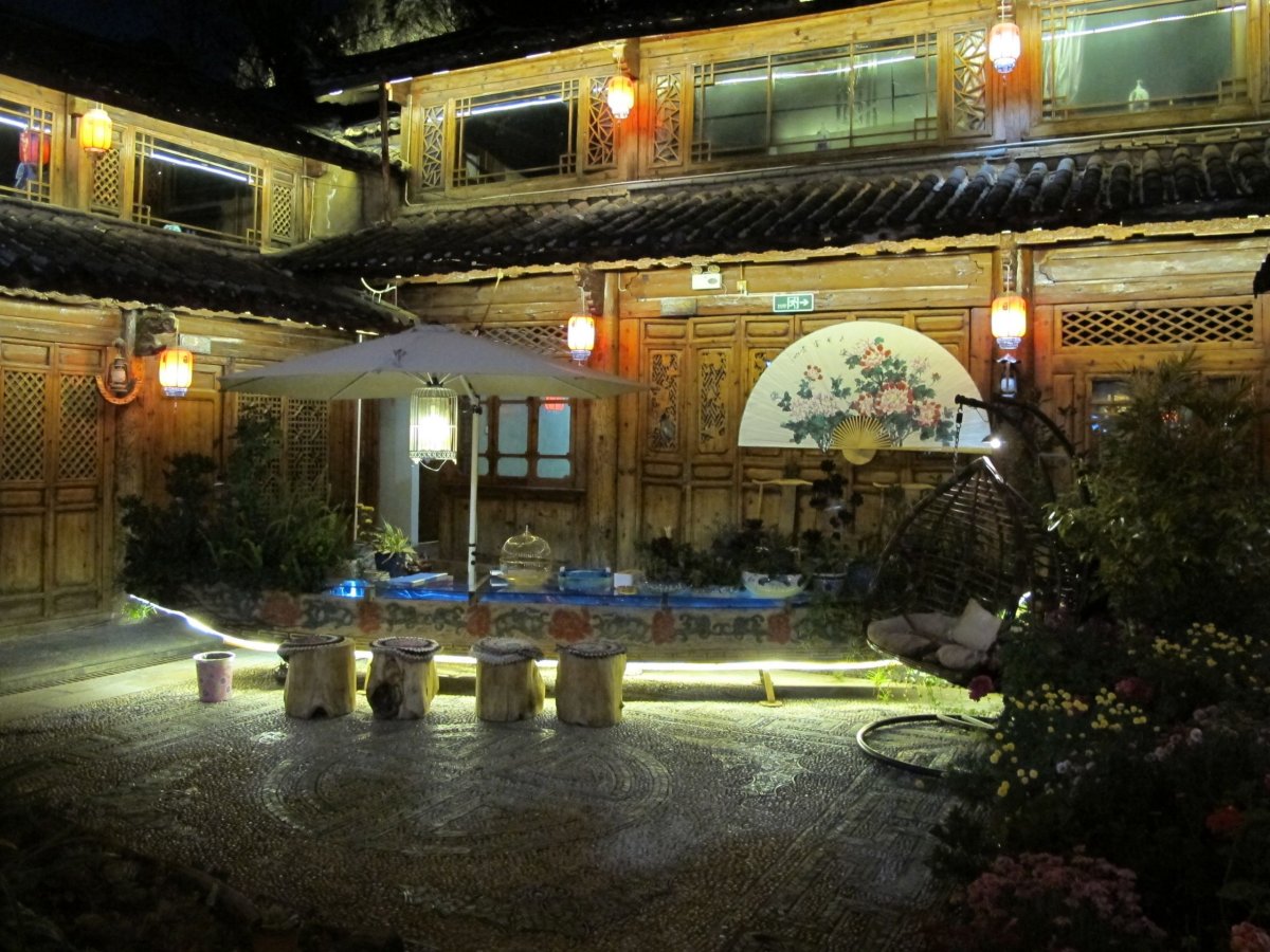 Den 4: Ráno balíme batohy a necháváme je v úschově v hostelu. Jedeme do Wuhou (Wu-chou) Temple (vstupné 60 yuanů), rozsáhlého komplexu chrámových budov a pečlivě udržovaných zahrad. Jeho počátky sahají dvě tisíciletí zpátky. Povečeřeli jsme vynikající pekingskou kachnu, stavili se v hostelu pro batohy a nočním letem na jihozápad (který nám místní low cost posunul o několik hodin poněkud zmatečnou SMS, která byla - jak jinak - jen v čínštině) se přenesli do města Lijiang (Li-ťiang). Tím jsme opustili provincii Sichuan a ocitli se v provincii Yunnan (Jün-nan). Ta se vyznačuje nejvyšším počtem různých národnostních menšin v Číně. Část Yunnanu je historickou částí Tibetu. Yunnan sousedí na jihu s Vietnamem, Laosem a Myanmarem (bývalou Barmou). Zároveň jsme se rozloučili s pošmourným počasím. Zatímco v Chengdu jsme viděli sluníčko během 4 dnů jen chvilku, po zbytek cesty svítilo prakticky od rána do večera.
