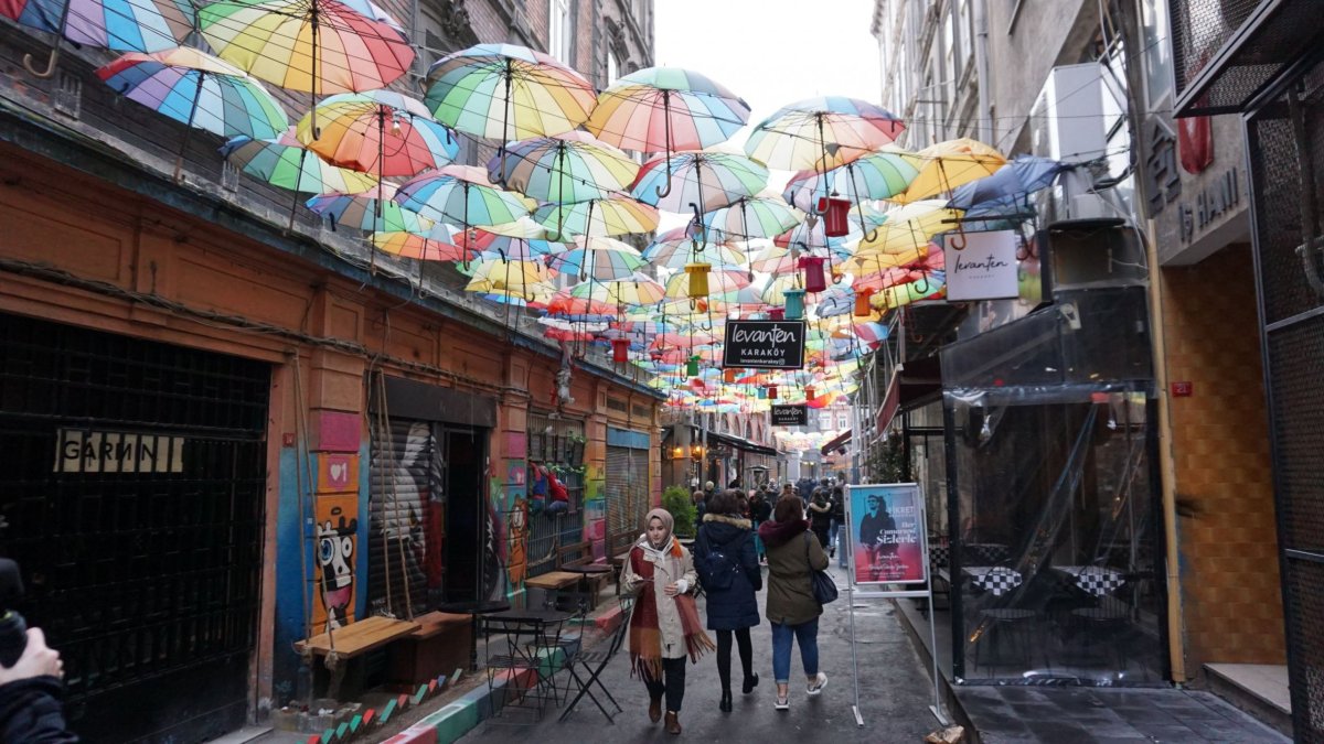 Od paláce Dolmabahçe jsme se vydali na menší hipster/instagram zastávku do tzv. Umbrella street ve čtvrti Karaköy. Na google mapách jako Hoca Tahsin Sk. No:14. Takže ideální zastávka na kafe nebo nějakou svačinu.