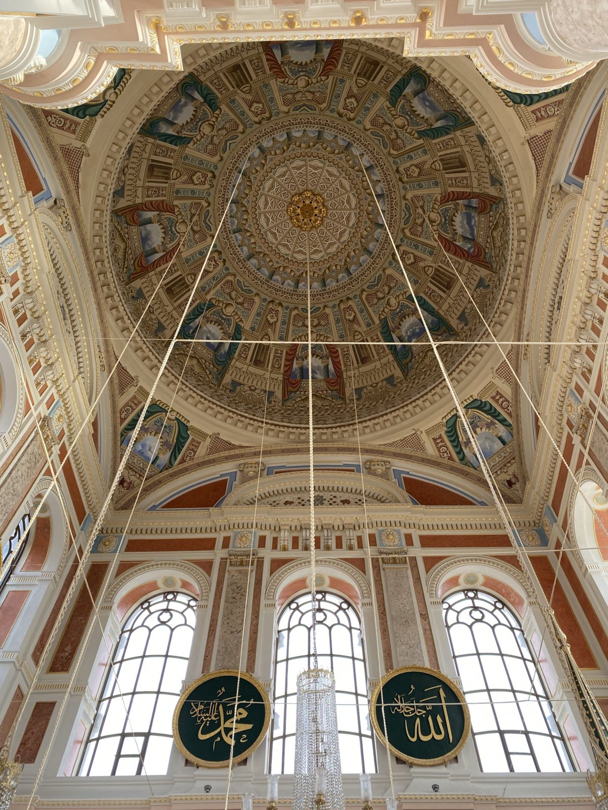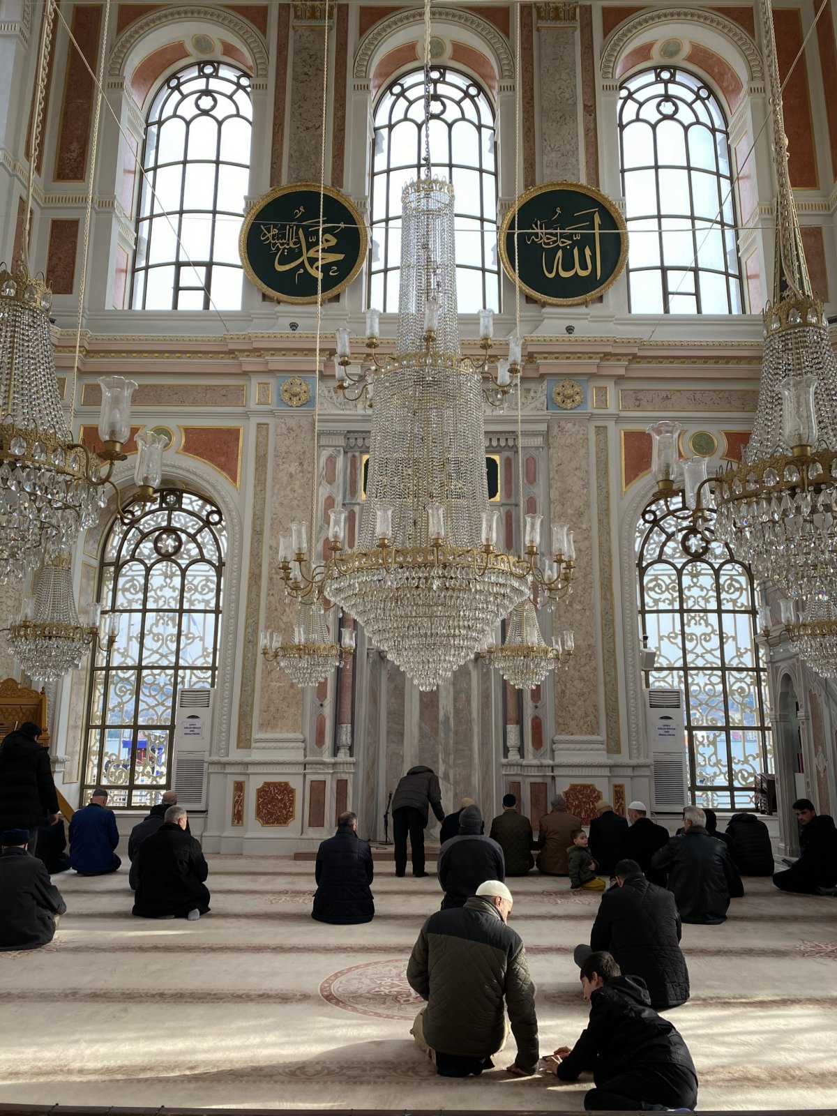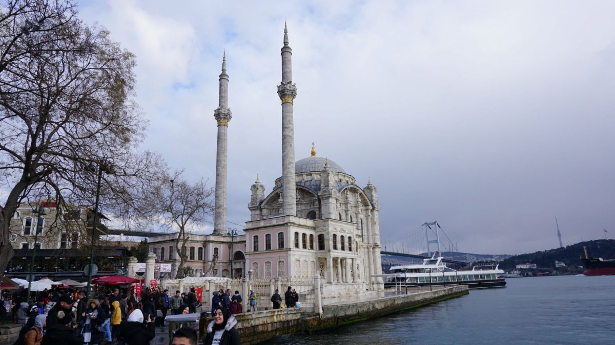 Zpátky v městečku jsme zapadli do jedné boční restaurace Kavak Kebap, kde nefungovali naháněči a za 15 TL pro oba jsme koupili už Xtou variaci kebabu pro dva lidi. Což bylo jedno z nejlepších jídel za celých šest dní, takže tohle místo opravdu doporučuju. Bez naháněčů a za hubičku. Dále jsme se vydali, přemýšlím, jak to mám nazvat… MHD lodí ve 14:00 zpátky do evropské části Istanbulu, konkrétně do městské části Sariyer, kde nás čekal přestup na autobus a 48 zastávek podél Bosporu k mešitě Ortakoy. Na mešitu Ortakoy jsem narazil celkem náhodně na internetu při čtení si zajímavostí o Istanbulu a okamžitě mě zaujal její interiér. Ten vypadal na fotkách, a v reálu i je, neskutečný. Asi nejnádhernější interiér mešity, který jsem kdy viděl. Obrovské křišťálové lustry, růžovo-oranžové stěny, krásný strop, veliká okna, kterými dovnitř prosvítalo první dnešní slunce a žádní jiní turisté, takže ticho a asi 30 tiše se modlících lidí pro dokonání atmosféry. Stoupli jsme si na stranu, abychom nepřekáželi, a jen jsme s otevřenou pusou koukali kolem dokola. Taková ta chvíle, kterou zná každý cestovatel, kdy zapomenete fotit a zapomenete, že jste turista. Bohužel asi po 10 minutách za námi přišel pán s tím, že bude následovat jedna z pěti denních muslimských modliteb a mile nás požádal, ať mešitu opustíme. Top tip tohoto cestopisu - sem prostě musíte.