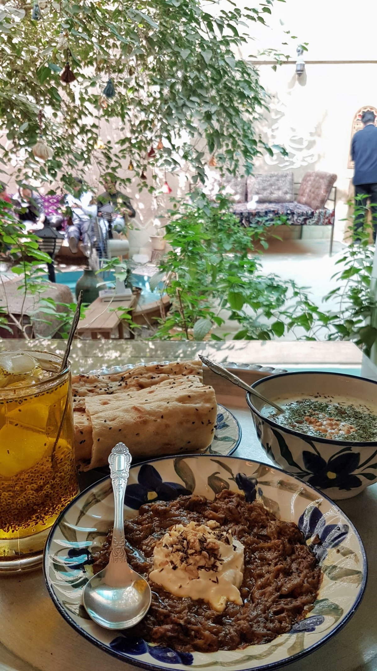 Já do restaurací v Shiraz tolik nechodila, jelikož mě furt něčím krmili v hostelu Taha Traditional Hotel – v ceně máte výbornou snídani, ale často dostanete i oběd. Navíc během celého dne máte k dispozici čaj, ovoce, sušenky.