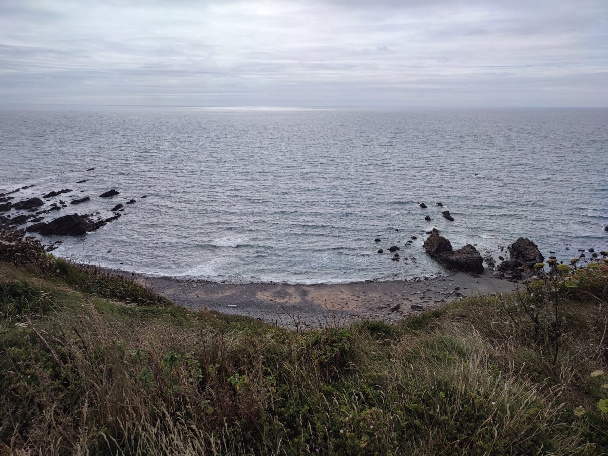 Ráno je stejně pošmourné jako byl včerejší večer. Podle předpovědi a porady s křišťálovou koulí by se mělo během dopoledne vyjasňovat. Anebo taky ne. Tady jste v Cornwallu. Přestože vám většina modelů předpovídajících počasí vyplive data, která jasně hovoří o jasném nebi, nad hlavou vám pořád visí šedá vata ze které tu a tam něco ukápne. Řádná pláštěnka a nepromokavé boty jsou tady opravdu MUST HAVE. Možná už opakuju poznatky z minulých let, ale ono to pořád platí a na tom, že je Cornwall ze tří stran omývaný mořem a tudíž je tady počasí totálně nevyzpytatelné, se dosud nic nezměnilo. Já osobně nedám dopustit na decathlonovou pláštěnku Forclaz, která schová mě, batoh a při troše snahy ještě tak 1-2 osoby. Velikost XL jsem možná trochu přehnala, ale na druhou stranu je to velice pohodlné.