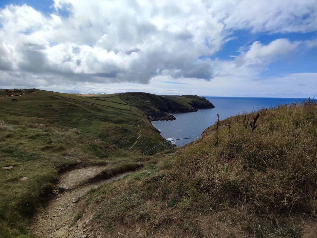 Na trase míjíme pár pletivem ohraničených šachet bývalých dolů. Vlastně asi nejsou moc ničím zajímavé, to jejich příbuzní dále u St. Agnes či u Botallacku jsou mnohem působivější. Stezka sestupuje tu až skoro ke kameny poseté pláži na úroveň moře, tu zase po schodech stoupá nahoru na rozeklaný útes, při pohledu z dálky byste ani neřekli, že se tamtudy dá projít. Sluníčko už nás zase úspěšně opéká dozlatova. Naštěstí právě přicházíme do minipřístavu o čtyřech domech, vítá nás Port Quin. Názory na přítomnost občerstvení se na internetu dosti různily, tak jsme byly zvědavé, co tady potkáme. Pro jistotu jsme se ale na cestu dobře zásobily, pro případ, že by tady opravdu nic nebylo. Jen co projdete mezi prvními domky, proti vám je na zdi přilepený kohoutek s pitnou vodou. A o kousek dál Port Quinn získává další bonusové body za stánek s občerstvením, který by dle otevírací doby měl být už nějakou chvíli uzavřen, nicméně pořád tady probíhá čilý obchodní ruch, a tak si dávám chlazenou limonádu.