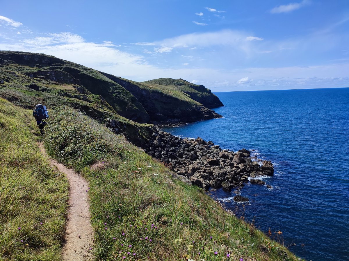Tenhle den je naplánovaný jako nejnáročnější část naší letošní etapy. A vlastně nemá cíl. Kam dojdeme, tam přespíme. Sice jsme si trasu zkrátily popojížděním autobusem o nějakých 10km, ale i tak nám minimálně ještě jednou tolik zbývá. Chtěly bychom dojít do 10km vzdáleného Polzeathu, protože tam jsou minimálně 3 kempy, kam by se teoreticky dalo zaplout. A kempy podél stezky většinou mívají nějaké volné místečko pro batůžkáře na jednu noc. Takže ubytování nám rozhodně starosti nedělá. Do západu slunce budeme určitě takříkajíc pod střechou. Výškový profil naší trasy opět kopíruje ladné pohyby pingpongového míčku odrážejícího se od pevného povrchu desky stolu. Ale co nám chybí?