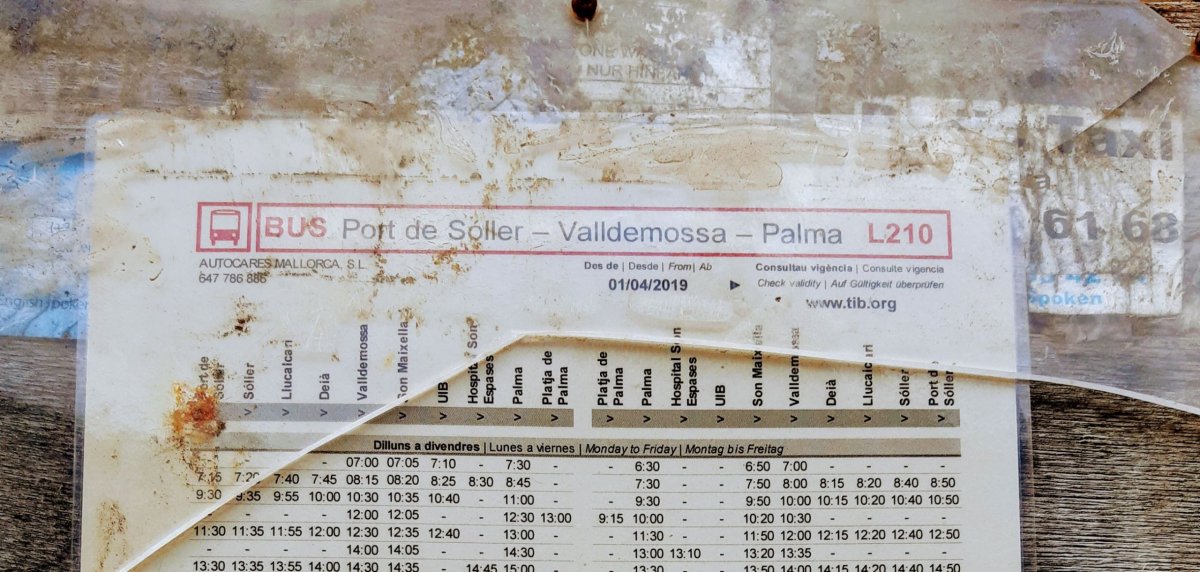 Rozjařené, zpívající ženy opustíme na Place d’Espanya. První, co po výstupu z autobusu uvidíme, jsou turistické informace. To se hodí. Rádi si necháme poradit s tím, jak se dostaneme do prvního záchytného bodu. Náš zevrubný plán cesty počítá s tím, že se dostaneme na západní pobřeží do Port de Sóller, odtud se vydáme pěšky do přímořské vesnice Cala Deia a dál se uvidí. Nejspíš navštívíme ještě nějakou pláž a město Valldemossa. Paní na informacích nám vysvětlí, že do Port de Sóller se můžeme dostat dvěma způsoby. Rychle a levně za 3 eura autobusem, nebo pomalu a draze za 18 eur historickým vlakem do městečka Sóller, které je těsně pod horami, a pak historickou tramvají za dalších 7 eur do přístavu.