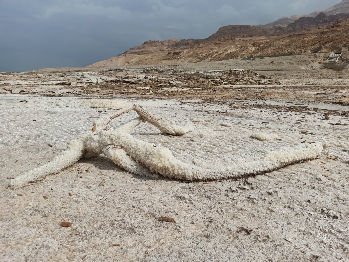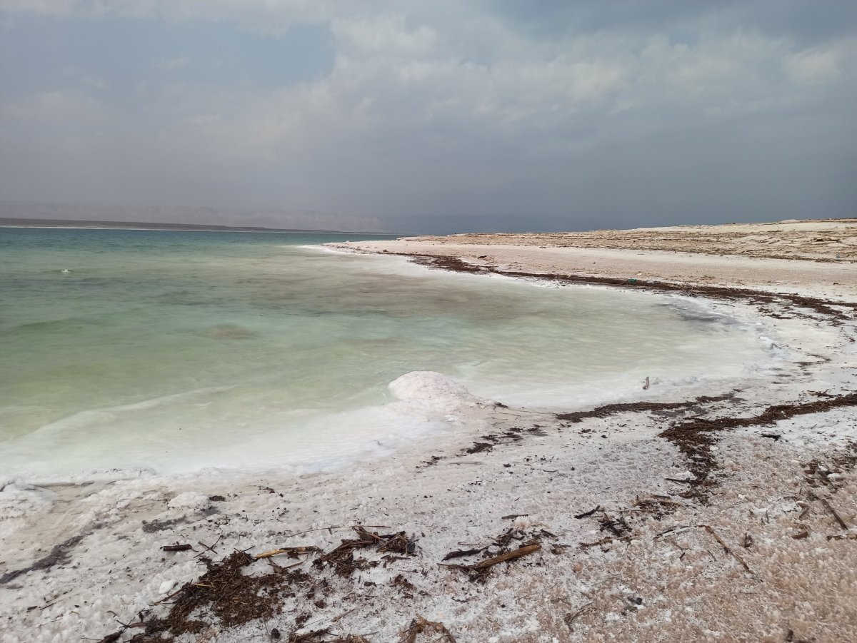 Počasí se fakt výrazně zhoršilo, jenže bez koupačky v Zesnulém Moři přece neodjedeme. Brašna domlouvá s provozovatelem Mujib Chalets návštěvu sprch za nemravných 10jorďasů na osobu. Jasně, nemůžeme přece jet do Madaby nasolení jak nešikovná obsluha posypového vozu. Oddali jsme se tedy skotačení ve vodě. Sedět téměř na hladině, v dešti, ve velkých vlnách je zvláštní zážitek. Občasný šplíchanec do oka a do pusy je pak bleskovým vytržením z romantického rozjímání. Že se v té solance nesmí prdět víme a nemáme morál to zkoušet. Domnělé sprchy se ukázaly být skladištěm, chatky pozamykané. Bloumáme areálem. Už jsem skoro umytý tím ledovým deštěm, namodralé fleky na kůži a chlupy mi stojí jak hřebíky. Musíme vypadat jako dva zmutovaní perutýni. Myslíš, že tou sprchou za 10jorďasů myslel AliBaba tuhle zahradní hadici? AliBaba, zachumlaný v péřovce, gestikuluje od recpece, že jo. Zkouším si při odchodu s AliBabou promluvit o jeho friendly taxe za hadici, ale je neoblomný. Termínu „zvrácený smysl pro humor“ nechce porozumět. Takže pozor. Mujib Chalets: „Twenty jordans. Its absolutely normal, my friend“. Vyhráváš AliBabo prestižní ocenění: Jordánský Majfrend roku 2020.
