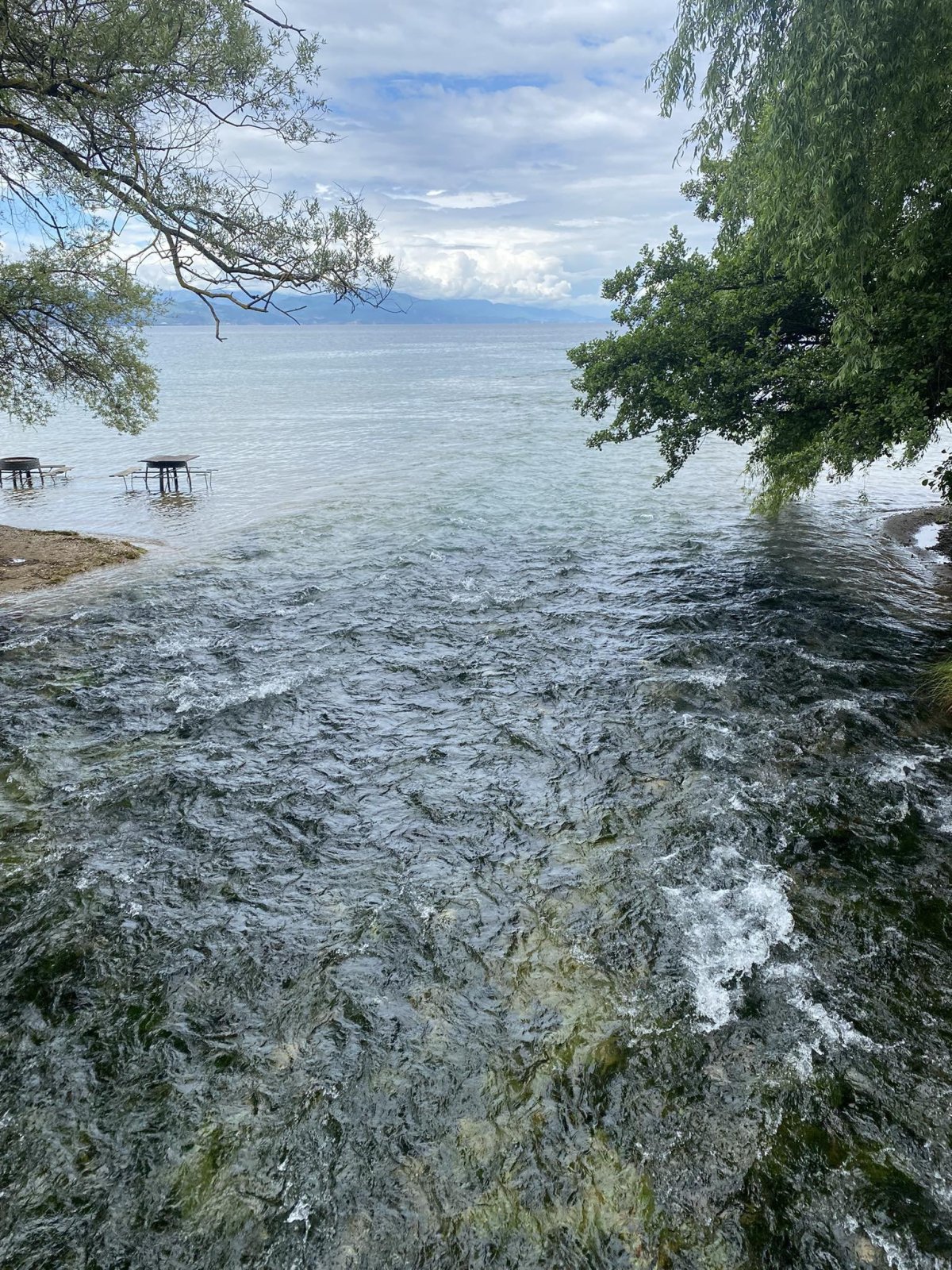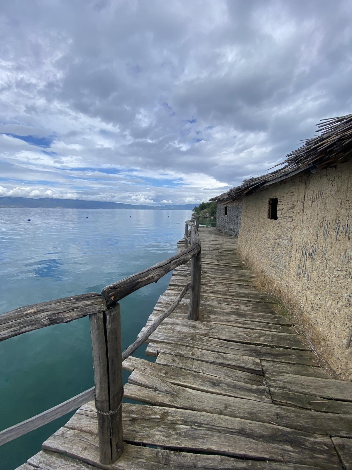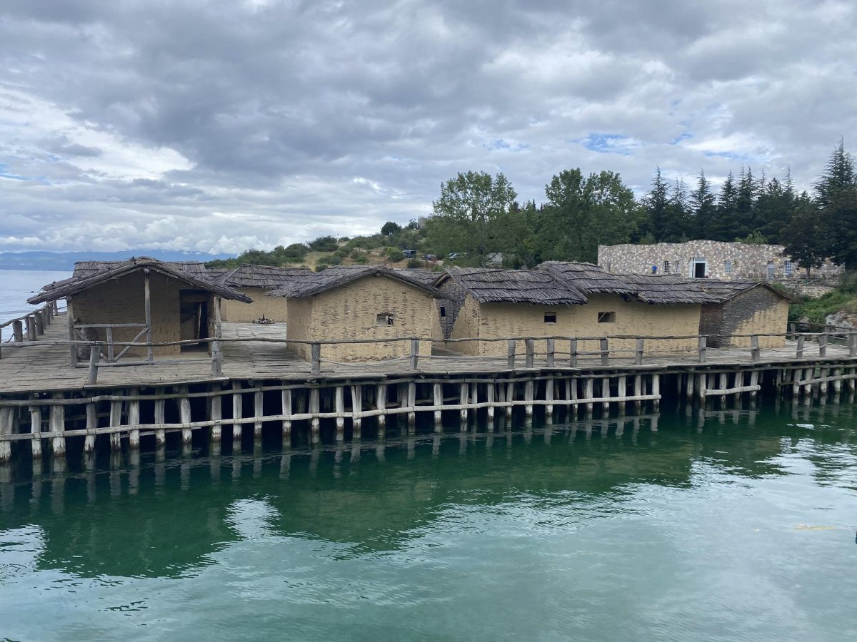 Cílem naší plavby byl St. Naum, čekala nás ale ještě zastávka v Zátoce kostí. Jedná se o repliku chatrčí ze 12.století před našim letopočtem. Na prohlídku jsme měly 30 minut, vstup stal 150 MKD a bylo to velmi zajímavé. Pod námi jezero s průzračnou vodou nabízelo krásné pohledy na ryby a dokonce i vodního hada.