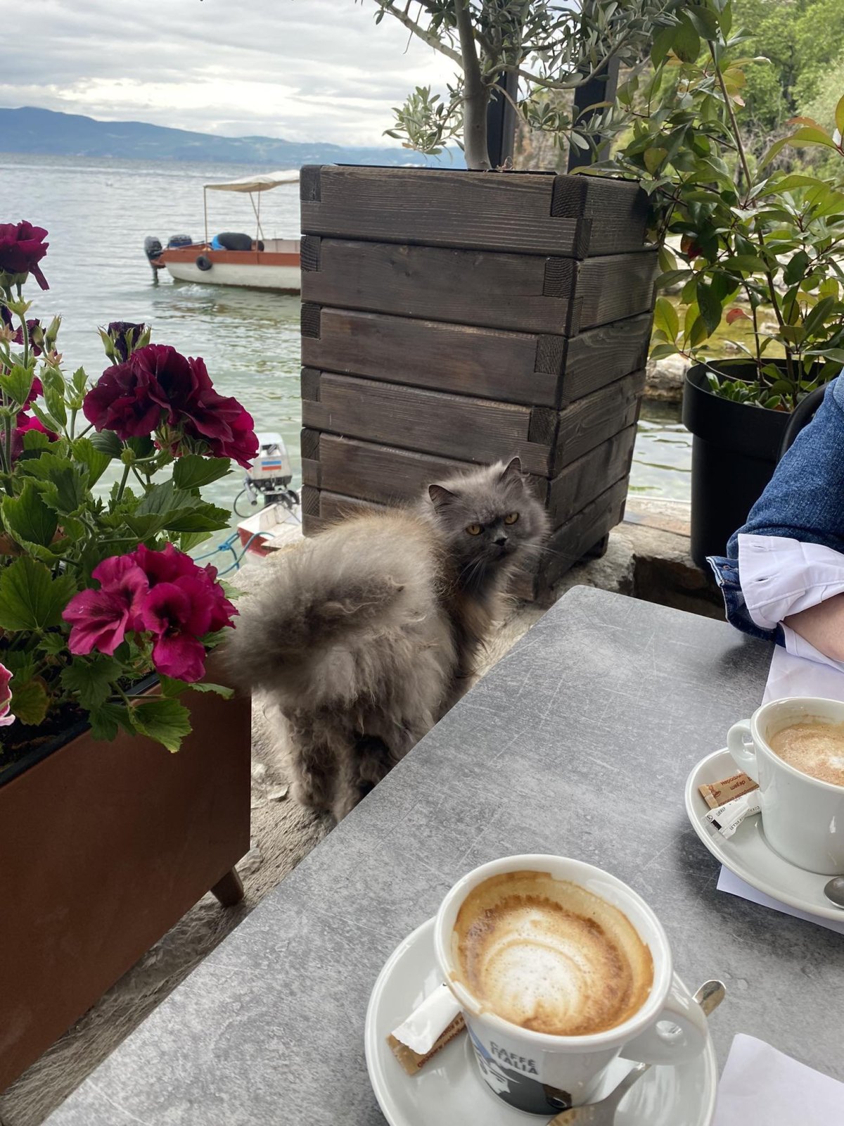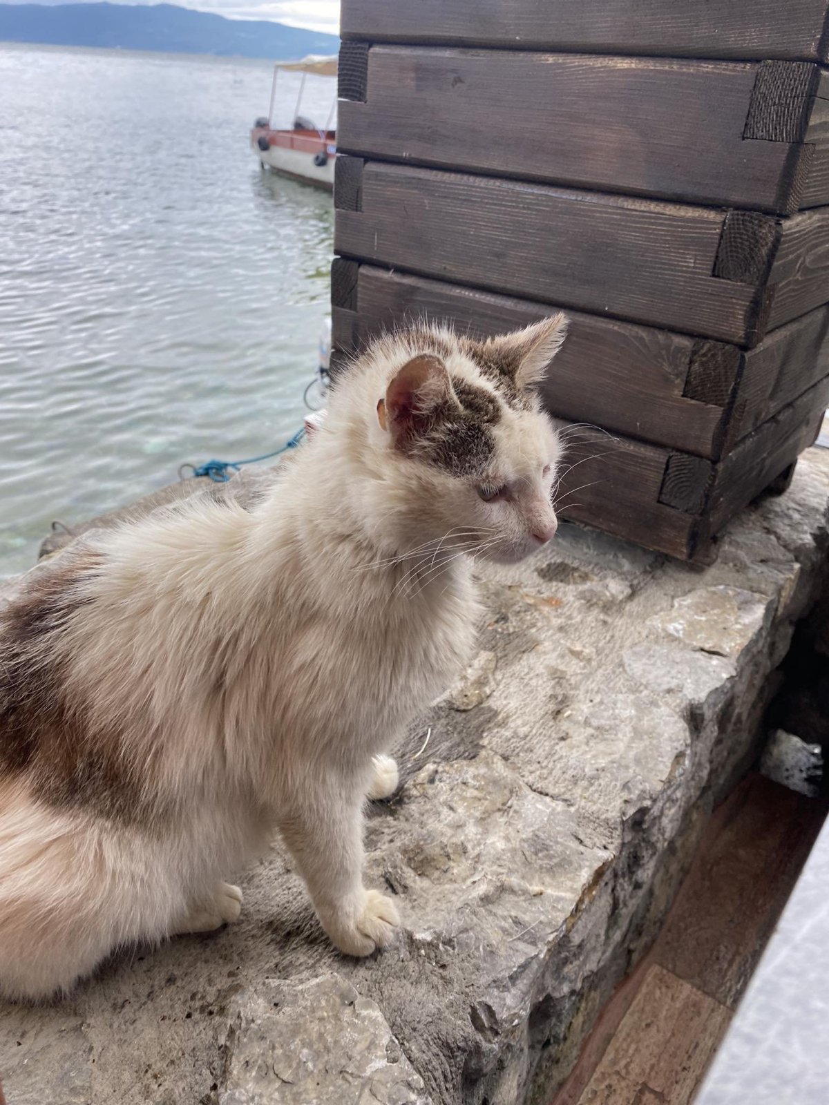 Druhý den na nás čekala plavba na lodi. Plavba začínala v 10.00, my už však v 8.00 byly připraveny na zážitky. Den jsme začaly snídaní u jezera. Městečko Ohrid je opravdu moc pěkné. Jediné, co mě velmi mrzelo, byl neposčet osamělých a vyhublých koček a pár psů. V průběhu pobytu jsme kupovaly konzervy a zvířata krmily.