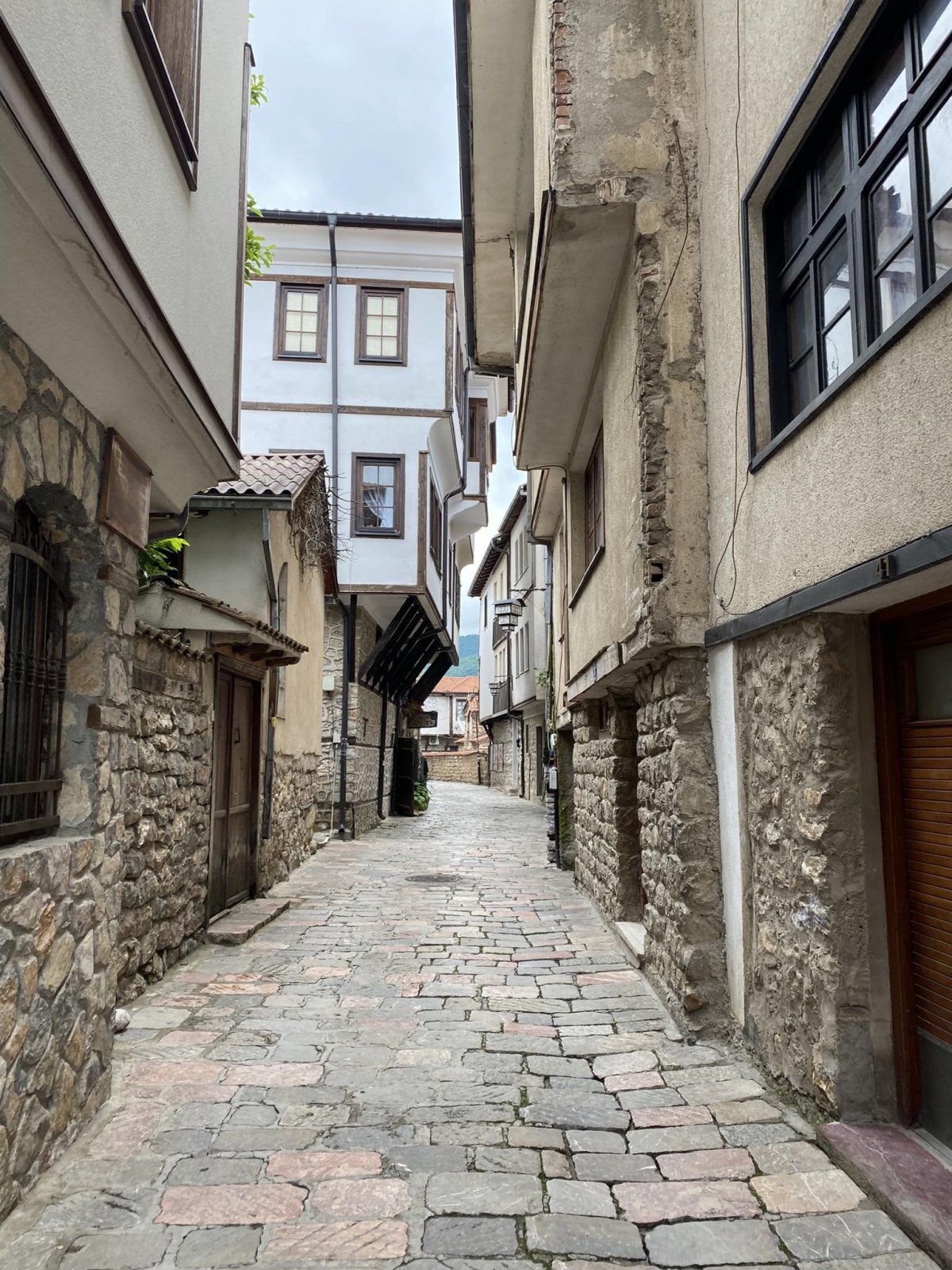Po necelých 2 hodinách jsme přistály ve Skopje. V 20.00 nám měl jet autobus z města, kam jsme se musely dostat z letiště. Nebyla žádná šance, že bychom ten autobus stihly. Byl to poslední autobus do Ohridu, záměrně jsem dala až poslední, abychom měly hodinu a půl rezervu. Ani ta však nestačila. Musely jsme tedy využít taxi službu. Řidič jel jak blázen, což nám velice pomohlo. Odvezl nás na autobusové nádraží, bylo 19:59. Měly jsme přesně minutu najít a doběhnout náš autobus. Moje máma se zastavila, už nemohla. Já byla sobecky naštvaná na ni, na sebe, na Wizz air i celý vesmír. Stal se však zázrak, Balkánci tolik časy odjezdu neřeší a my ten autobus stihly. Dokonce jsem zvládla koupit i vodu do autobusu. Čekala nás cesta tři hodiny v minibusu, ve kterém svítilo modré světlo a vzduch by se dal krájet. Bylo to hrozné. Každopádně jsme ale byly velice vděčné, že jsme na cestě.