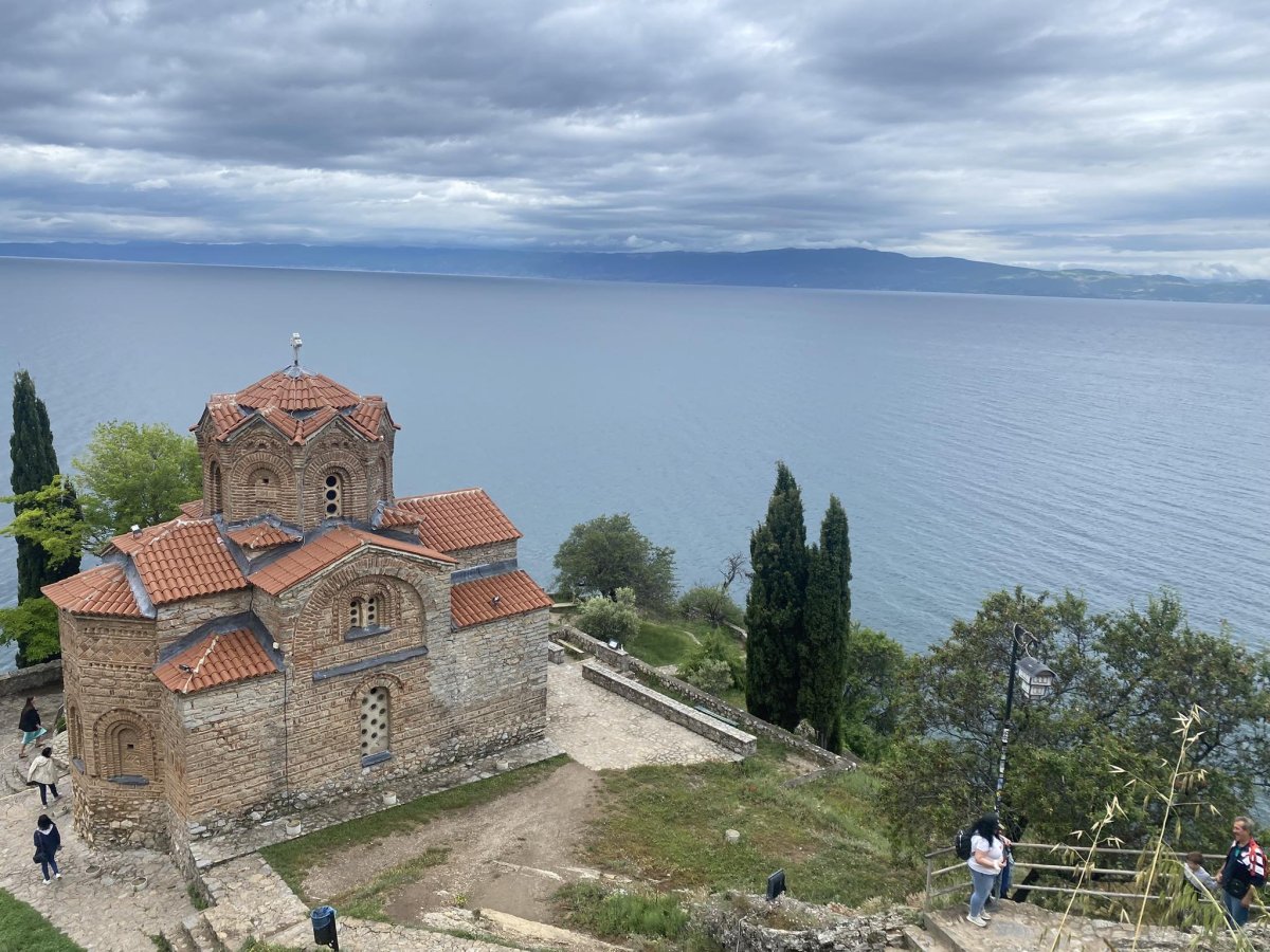 Ráno jsme vyrazily na kostel sv. Jovan Kaneo, která je v Ohridu asi nejznámější a vyjede vám snad na každém obrázku po zadání Ohridu do vyhledávače. Je tam opravdu moc hezky, jezero mate jako na dlani.