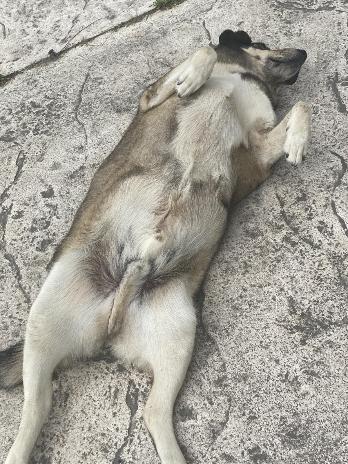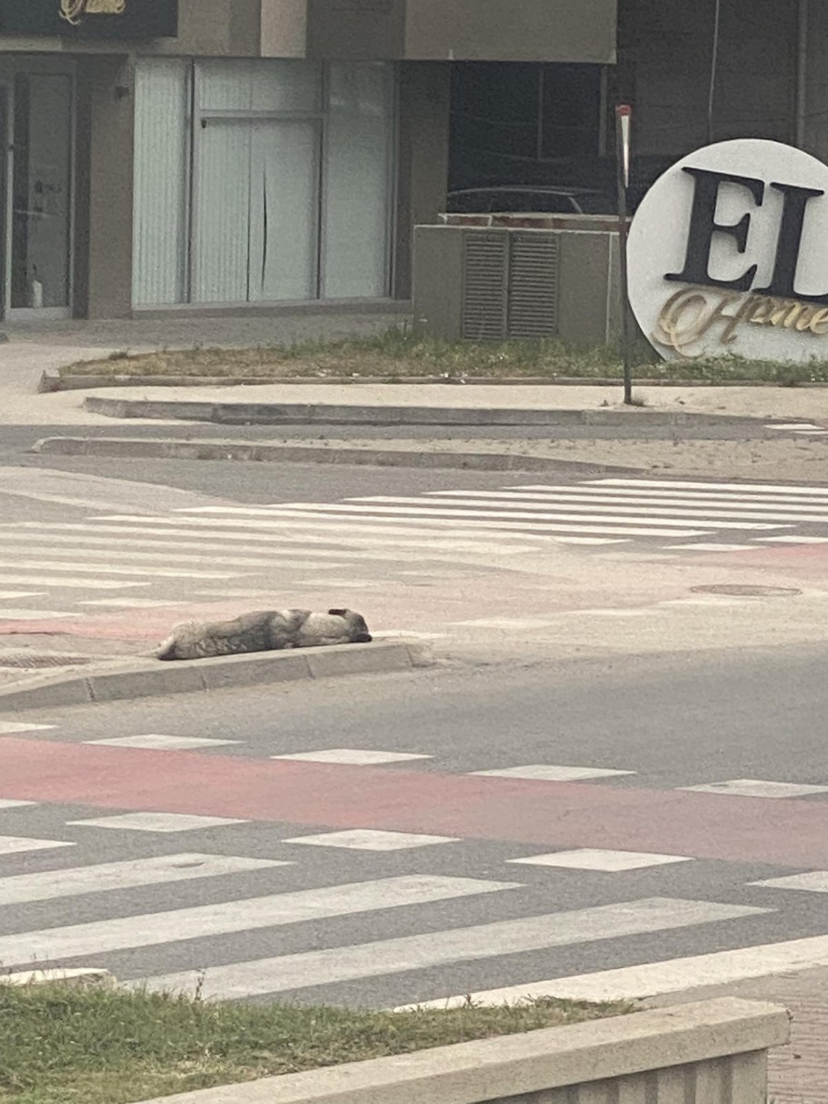 Cestou zpět jsme potkaly odpočívajícího psa, chtěly jsme mu nalít vodu a pod stromy našly dřevěnou boudu s matrací a miskami na žrádlo a vodu. Velmi nás to dojalo. Osud tohoto psa nebyl obyvatelům domu, před kterým ležel, lhostejný.