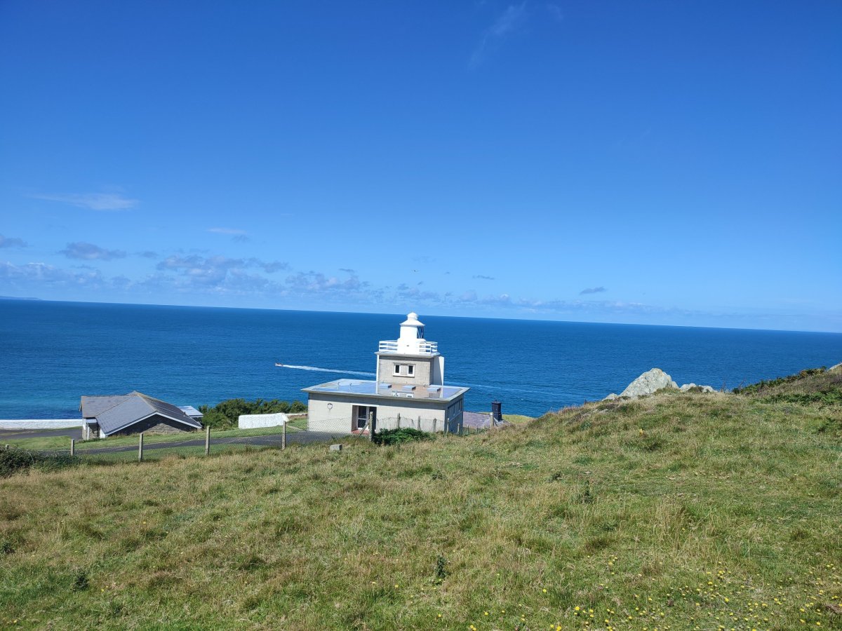 Pěšina se klikatí podél rozeklaného pobřeží. Je to jak na houpačce, do kopce, z kopce. Výhled se dlouhou dobu nemění. Ale to mi nevadí. Je tady krásně. Sotva obejdu útesy Damage Cliffs, pod kopcem na mě vykoukne maják Bull Point. Je to skoro až kýčovité, jak sem krásně zapadá. Není kdovíjak veliký, ale je posazený na vysokých útesech, takže to určitě stačí. Dneska už se dá také pronajmout jako bydlení na prázdniny. Pořád ale uvažuju, proč se v názvech okolních prvků pořád opakuje slovíčko damage ...