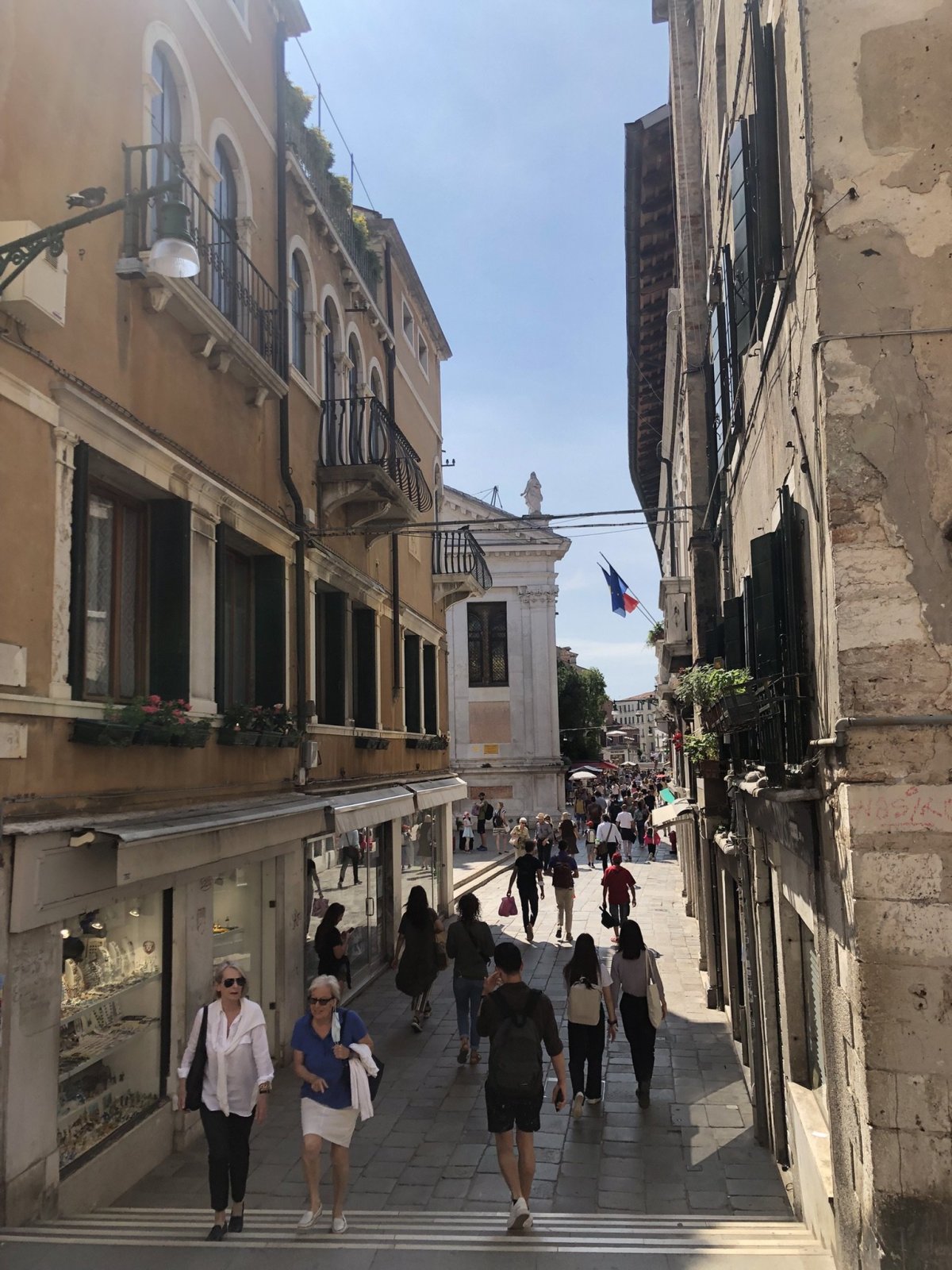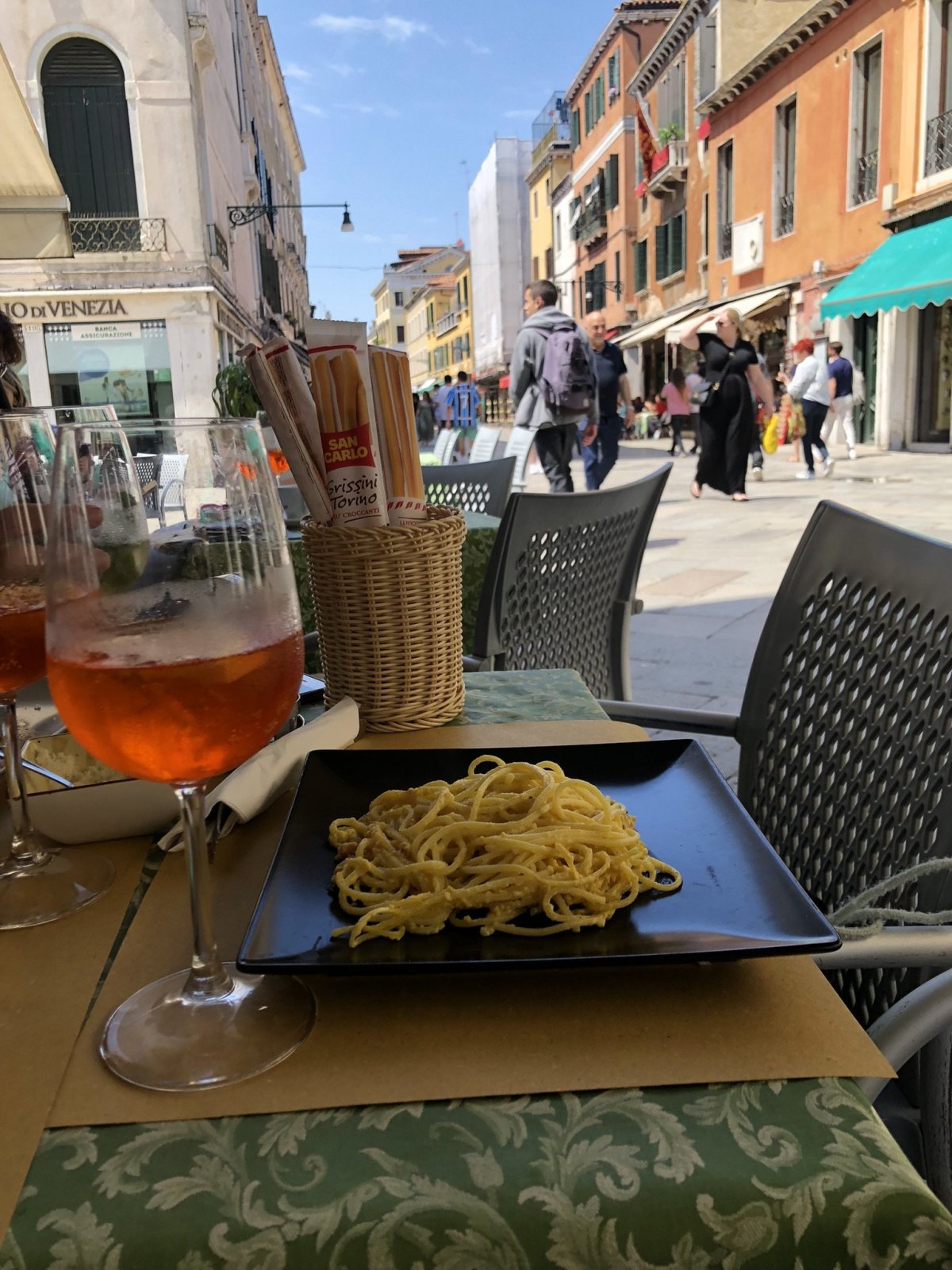 Po príchode do mesta si sadneme na obed v jednej z miestnych krčiem, na pravé talianske špagety Carbonara a Aperol Spritz. Nasleduje blúdenie v lokálnych úzkych uličkách, až k Ponte di Rialto, azda najznámejšiemu mostu v meste. Neskôr si dáme ďalšiu prestávku na Aperol a bruschettu a čas sa nájde aj na talianske gelato. Dôjdeme aj na Piazza San Marco, najväčšie námestie v Benátkach, ktorému dominuje Bazilica di San Marco a zvonica, na ktorú sa môžete dostať za 10 EUR. My hore nejdeme, vydávame sa po nábreží smerom k záhradám Biennale. Po ceste naspäť na hotel sa zastavujeme ešte na večeri a na ubytovanie prichádzame až za tmy.
