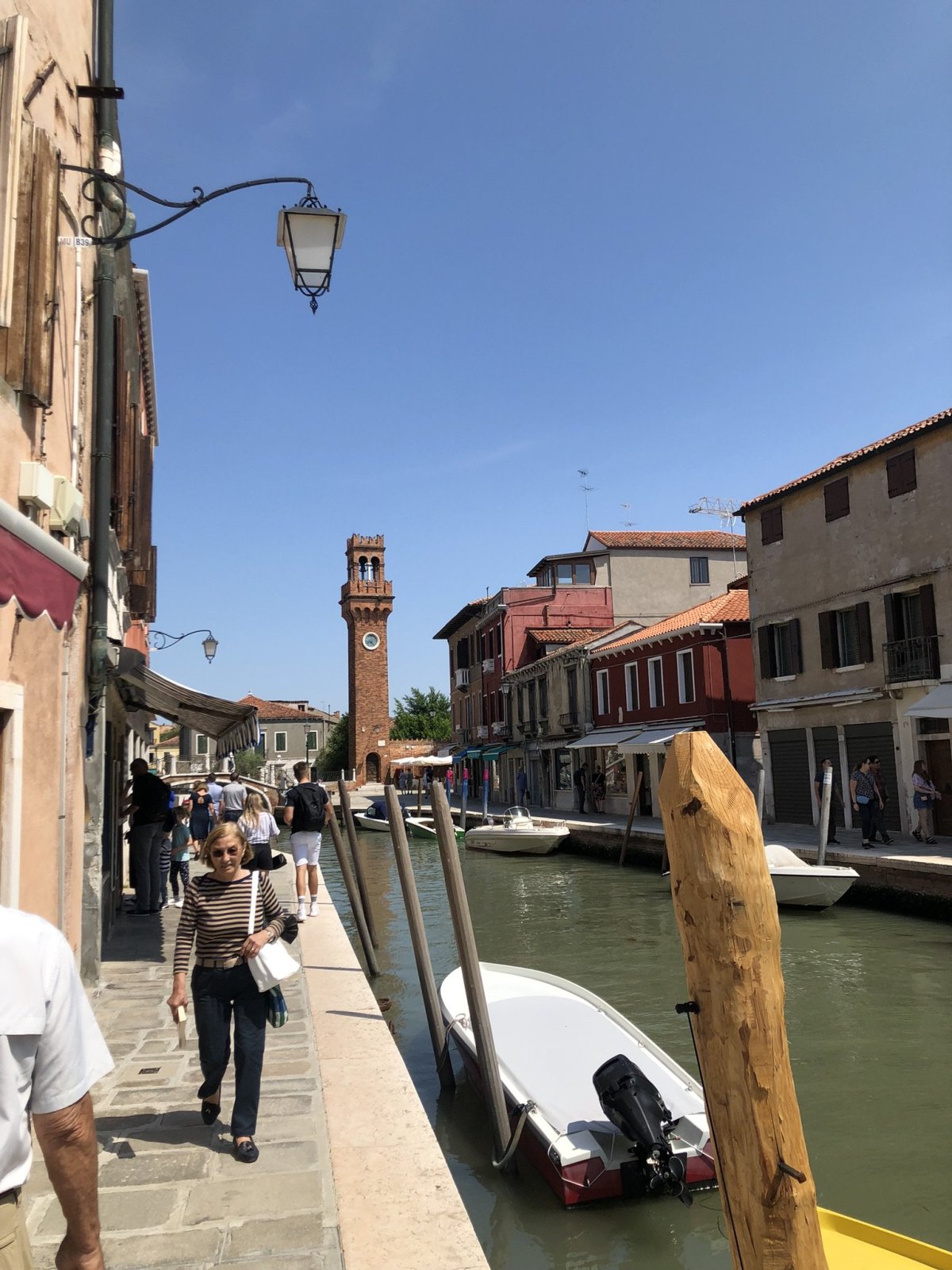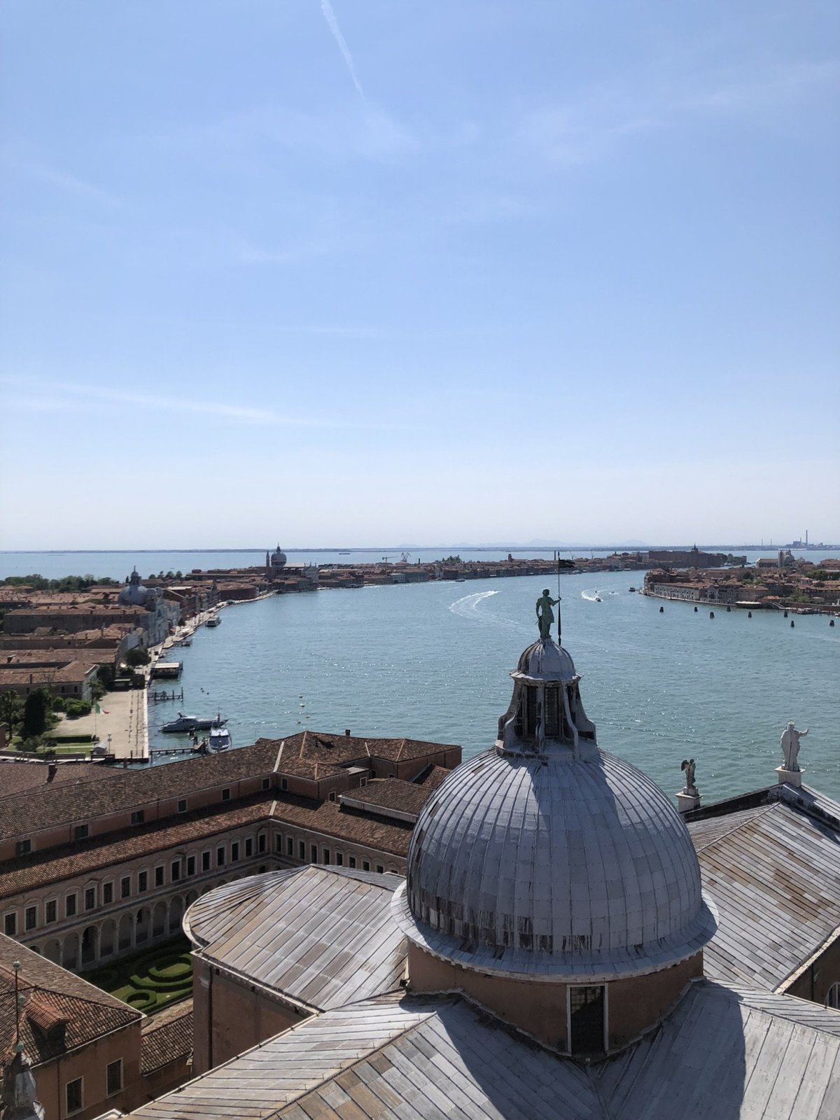 Druhý deň ráno začína croissantom a espressom, čo iné si tiež v Taliansku dať však? Po raňajkách sa zhodujeme, že si dnes spravíme výlety aj na okolité ostrovy, kupujeme si teda denný lístok na všetky dopravné prostriedky v meste za 21 EUR. Nie je to síce najmenšia čiastka, ale platí to aj na všetky trajekty, hovorme tomu teda príplatok za vodu. Našou prvou zastávkou je ostrov Murano, v minulosti známy svojou výrobou skla. Zastavujeme sa v jednej z reštaurácií na taliansku pizzu a opäť ďalší Aperol, potom už sa vraciame naspäť do Benátok a cez Canal Grande jadrom historického centra sa dostávame opäť na Piazza San Marco, kde prestupujeme na inú loďku, ktorá nás odvezie na Isola di San Giorgio Maggiore. Ostrov má podobnú zvonicu, ako na protiľahlom brehu námestie San Marco, ale s ďaleko menším počtom turistov. Využívame toho, a za 5 EUR sa dostávame hore, z veže je naozaj pekný výhľad po okolí, panorámu starého mesta tu ako bonus vôbec nekazia výškové budovy, ako v iných mestách. Z veže sa vraciame naspäť do centra mesta, v jednej z uličiek nám pri ďalšom Aperole a bruschette napadne zájsť sa pozrieť na Lido, hoci so sebou nemáme plavky a na konci mája je more ešte studené, bude to pekný výlet. Vraciame sa teda naspäť do prístavu a ďalším trajektom sa dostávame na Lido di Venezia. Prejdeme sa po pláži, vyzujeme si topánky a nechávame si nohy máčať v morskej vode, ale to je tak všetko, na kúpanie to ešte nie je. To si radšej sadneme na drink v plážovom bare. Cestou naspäť sa ešte zastavujeme na večeru v miestnej reštaurácii, opäť, čo by to malo byť iné, ako špagety, alebo pizza?