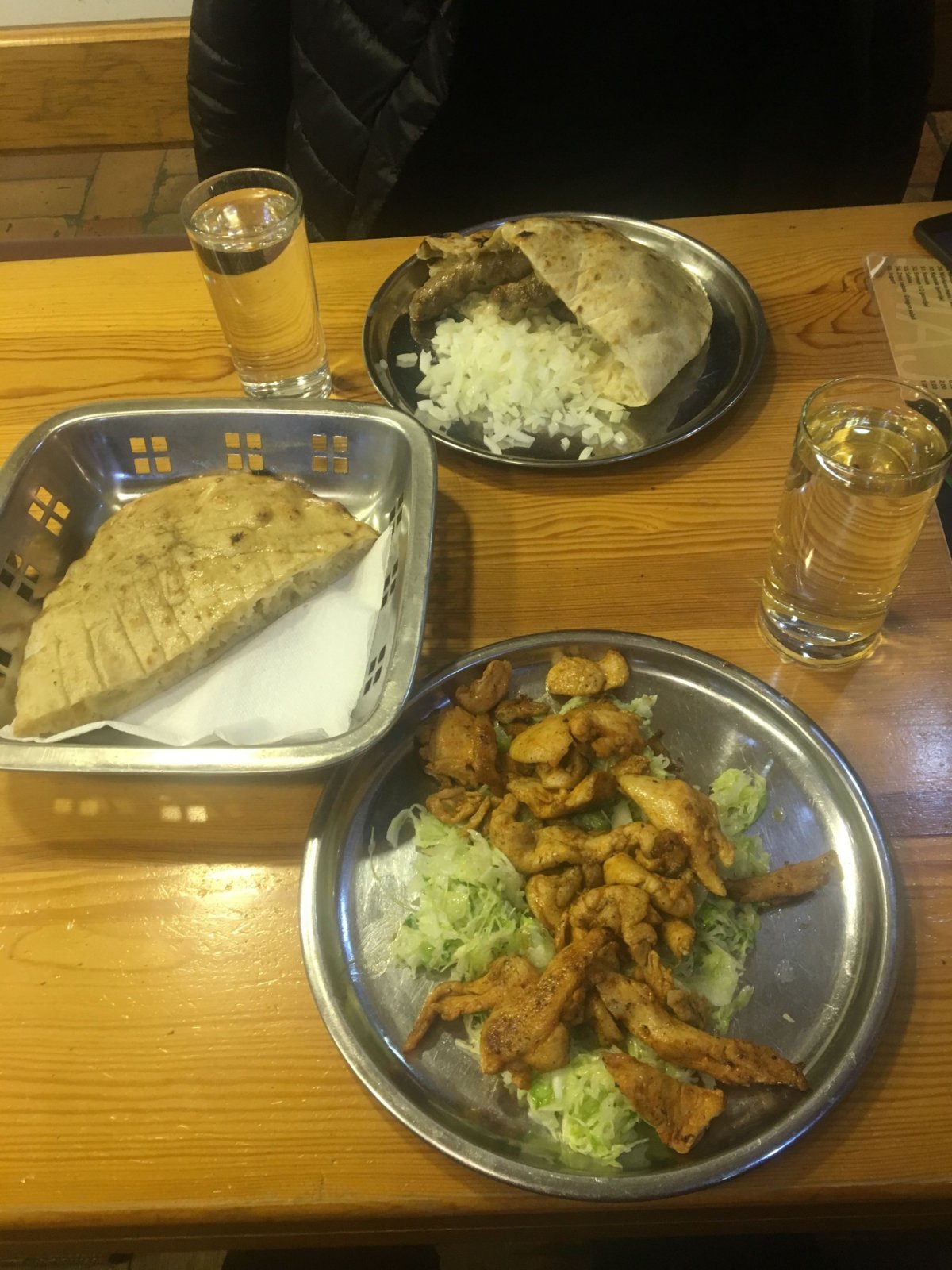 Jenže, byla už tma a vánice. Koukla jsem z okna. Tam varovný cedule „zaminované území“. Po další půl hodině už jsme se rozjeli, cestou nabrali zachumlaný 2 babičky, který v tý vánici čekaly uprostřed lesa. Do 40 minut jsme byli v Sarajevu na nádraží. Jenže, byla mega tma (divný, když už byl večer). Po týhle cestě jsme byly zralý na panáky, minimálně… Jelikož jsme nevěděly, kde máme ubytko, vlezly jsme do prvního podniku, kde byla Wi-Fi. Natěšený frajerky jsme tam nalítly a v jídeláku hned zabrousily do kategorie Nápojů. Jenže, aha, to byl muslimskej podnik. To nás taky mohlo napadnout. Síla zvyku. Takže nejvíc alko věc bylo nealko pivo. No nic. Tak jsme si vzali na baru aspoň skleničky s vodou, který byly zadarmo a objednaly si jídlo - Čavápí (čevabčiči) a kuřecí kousky s klasickým pita chlebem. Tím si nás, alespoň trochu, udobřili, protože to bylo famózní! Po jídle jsme prozkoumaly, kde vlastně bydlíme, vzali si taxík a nechali se odvést. Vůbec to nesplňovalo můj lowcost, na který jsem zvyklá ale energie už došla.