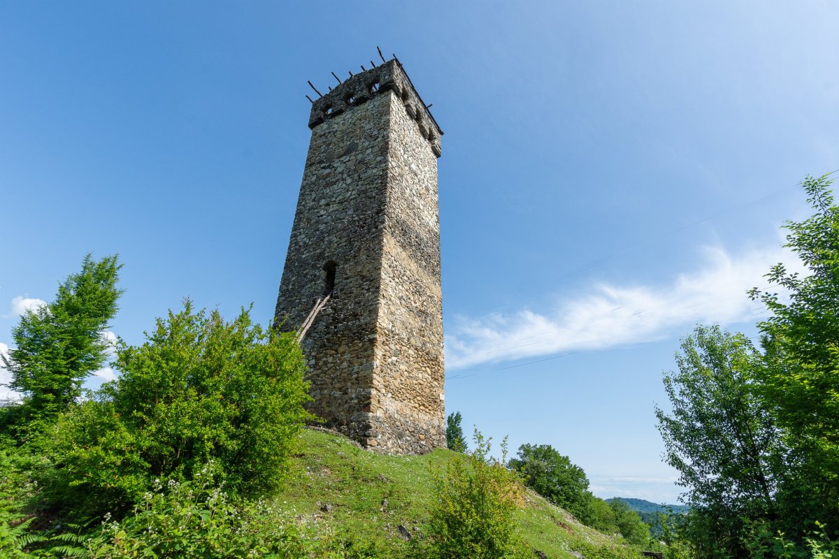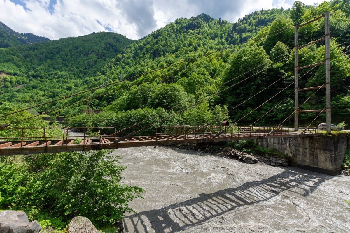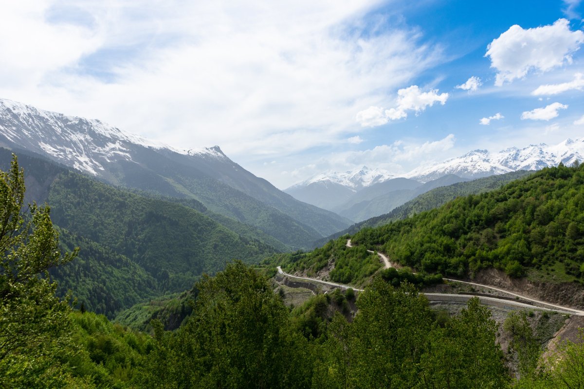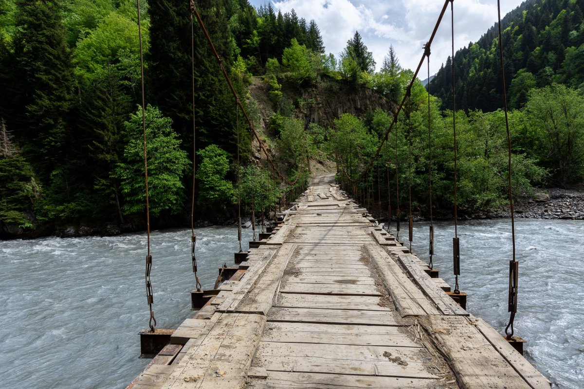 Vyrážím na západ a sever, na další dny jsem si náhodně vybral, že začnu v horách. Nepočítejte s tím, že po gruzínských silnicích budete jezdit moc rychle - a ono by to moje auto ani nedalo, ale i na asfaltkách jsem rád, že mám teréňáka 4x4. To, co vám mapy ukazují, vynásobte 1,2 - 1,5x.Po cestě se setmí, a já zjišťuji, že mě navigace vede na prašnou cestu. Tma jako v pytli, napravo skála, nalevo temná propast, kde někde dole slyším divokou vodu. Svítí mi jen jedno světlo. Co si budeme povídat, byla to velmi dobrodružná cesta. Mosty převážně z plechu, vidět moc daleko není, rychlost kolem 20 km/h. Do hotelu přijedu vyčerpaný v 11 večer, slečna na mě čeká s dítětem v náručí, řekneme si, že vše vyřešíme ráno, a okamžitě usínám.