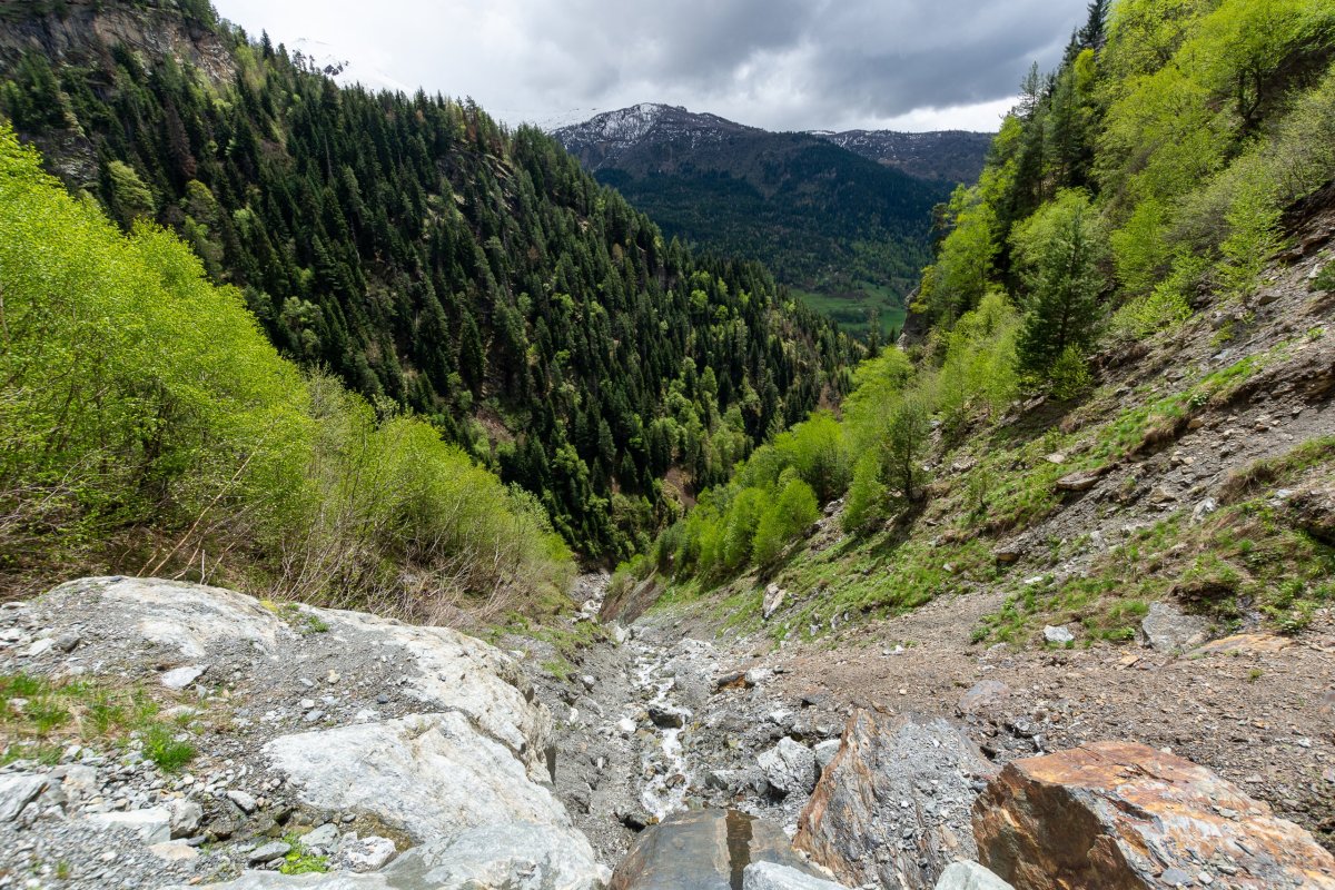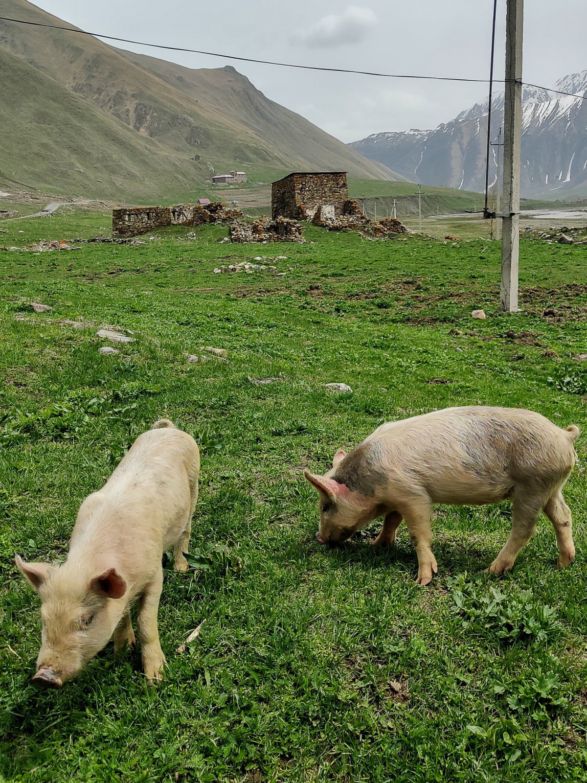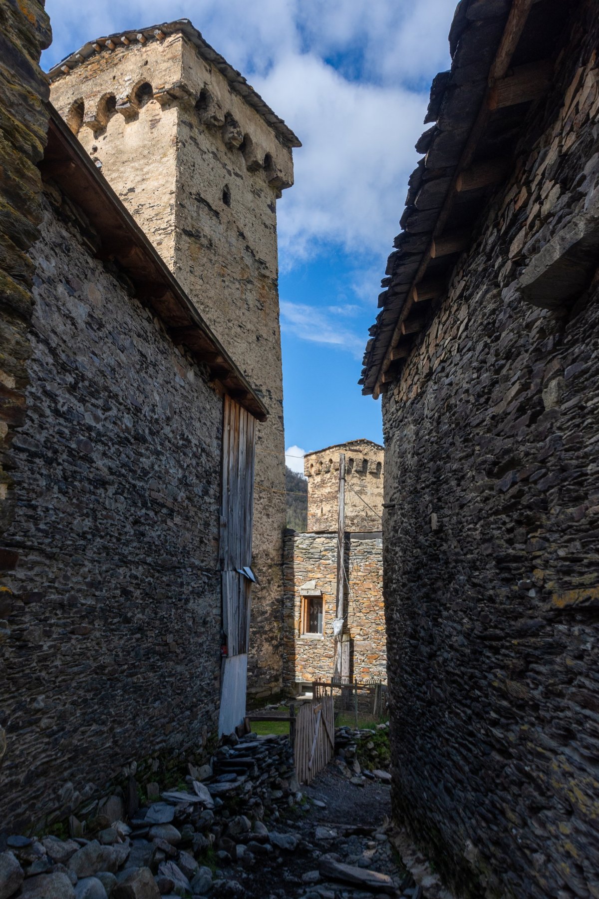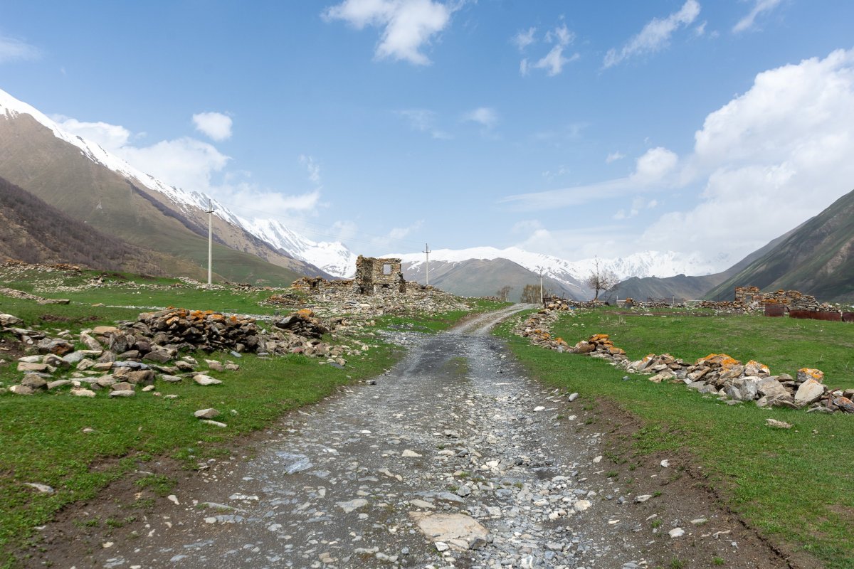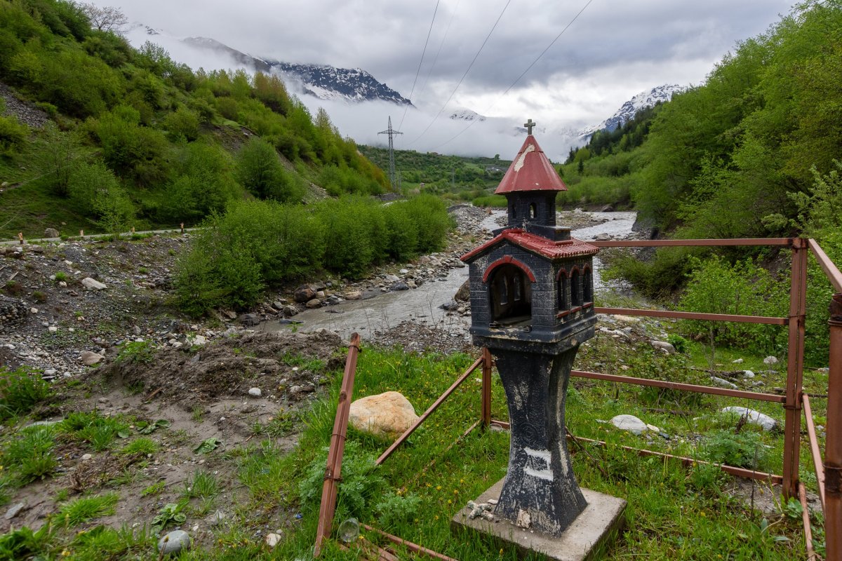 Není každý den posvícení. Vyrážím ráno z Mestie, mám dnes v plánu dojít k ledovci a vyjít u lyžařského střediska na výhledy. Dojedu k výchozímu bodu na ledovec, silnice strhnuté velkou jarní vodou ve vesnici osvobozuje bagr. Nechám auto u tradiční věže, kde chci dnes spát a vydám se cestou prudkým údolím k ledovci. Po hodině chůze přicházím k místu, kde lavina strhla dvacet metrů cesty a svah končí v prudké, divoké ledovcové říčce. Chvíli váhám, ale pak přelezu horolezecky skrz propadlou část a po lezení po skálách a houpání se na kořenech se dostávám na druhou stranu, kde ale cesta nepokračuje. 5íkám si že půjdu dál lesem a cestu najdu, ale ve svahu se sklonem 60+ stupňů to jde velmi pomalu a nebezpečně. Po další hodině, kdy ujdu asi půl kilometru a na jdu další část strhnutou lavinou a cesta stále není, si sednu a zjišťuju, že k ledovci bych se tímto tempem dostal za týden. Otáčím se a další hodinu bojuji s porostem cestou zpět. Cestu jsem nenašel za celou dobu. Ve vesnici dávám třetinu ceny za ubytování babičce, co má stát ubytování a říkám jí skrz překladač, že tam dnes spát nebudu a musím jet dál. Pokračuji stále výš do hor, s malou odbočkou k zavřenému lyžařskému středisku, které obývají jen dva psi. Google mě stále odrazuje od cesty na východ a říká ať hory objedu cestou kterou jsem přijel, což nechápu, mapy.cz mi říkají ať jedu skrz hory na východ. Zhruba ve dvou třetinách dojde asfalt a dále se jede prašnou, divokou cestou, kde potkávám jen maršrutky jezdící d o Ušghuli, což je poslední zastávka před horským pasem a cestou na druhou stranu hor Svaneti. Ušguli je opravdu konec světa, horská vesnička, kam se bez terénáku nebo zkušeností nevydrápete. Jeden obchod, pár kaváren, skoro všechny místní domy fungují jako penziony. Dozvídám se, že v pasu jsou tři metry sněhu, silnice další minimálně měsíc fungovat nebude. Rezervuji si tedy ubytování u místních a vydávám se na procházku po okolí, cesta pokračuje do hor, samota, skoro nikdo tu není, relaxující. V starobylém kostele Lamaria chvíli poslouchám modlitby uvnitř, pak začne pršet tak se jdu ubytovat. U auta potkávám ženu. které dům s ubytováním patří, ta se diví že má hosta, sprdne muže, že jí to neřekl a jde mi nachystat pokoj. Usínám za silného deště s obavami, jestli zítra s autem vůbec odjedu.