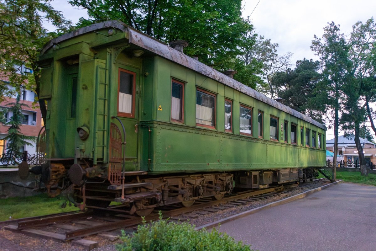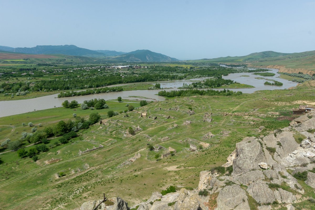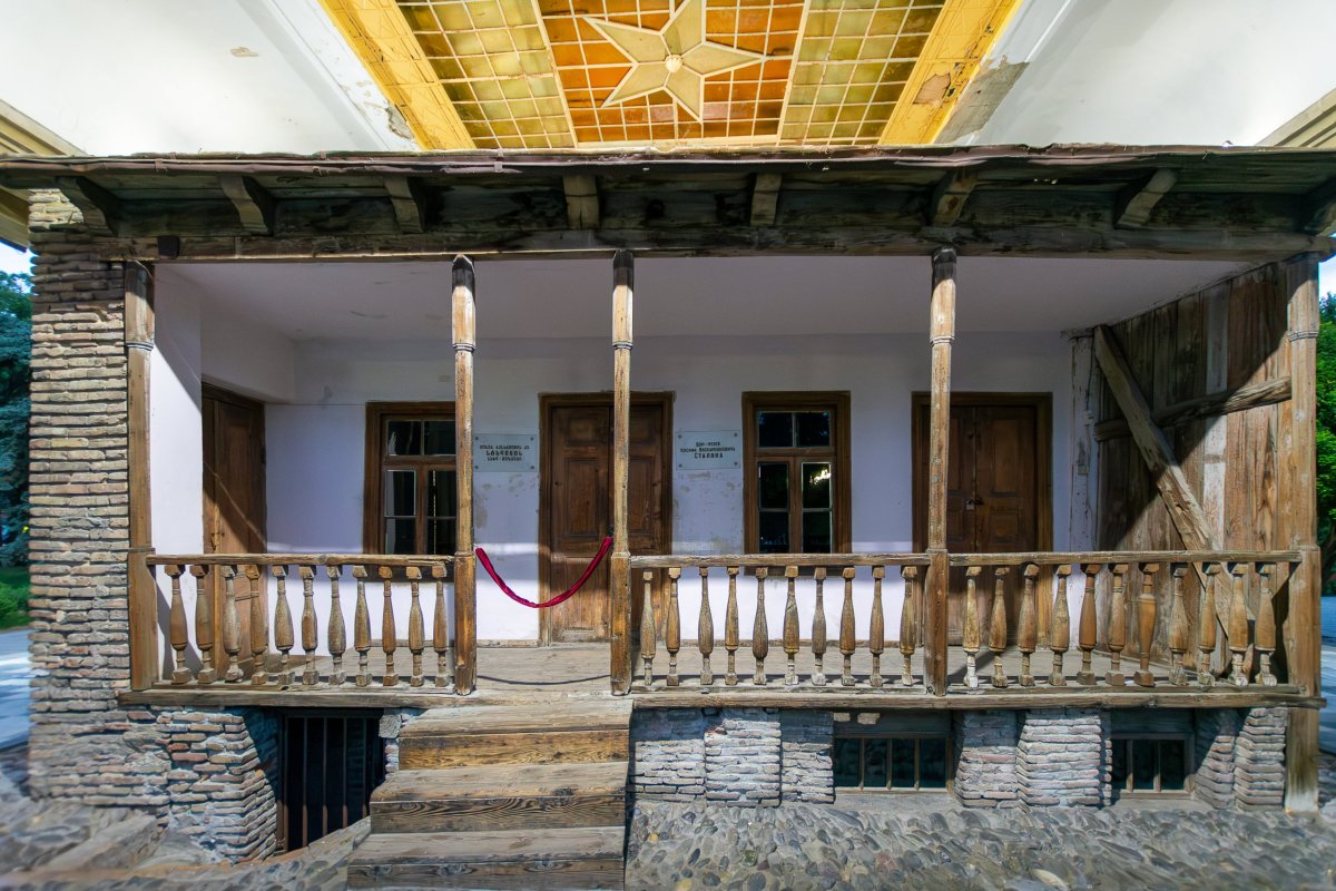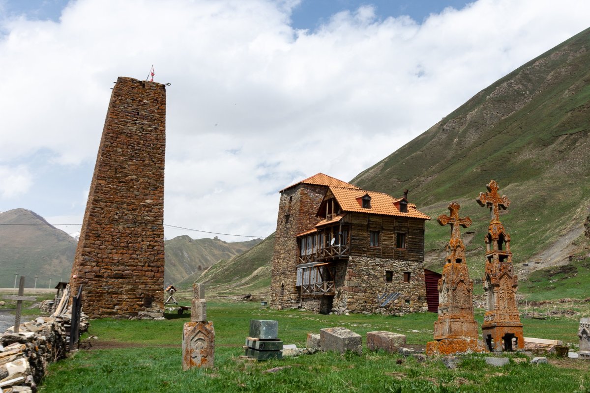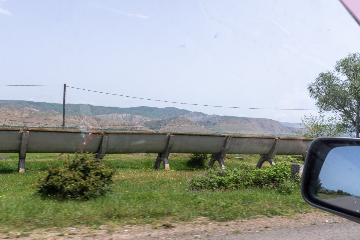 Ráno se ukazuje, že mé obavy byly neoprávněné, je to den jak malovaný. Snídani mám samozřejmě domácí, od paní domu. Máslo opravdu chutná jinak než to naše, rajčata jsou více jako ty italská, masitější. Vyrážím za výhledy k pevnosti, která v minulosti chránila Usghuli, skrz neprošlapanou pěšinu mezi rododendrony, později po sněhu, pevnost je těsně nad úrovní sněhu. Krásné výhledy, tady by se to stanovalo! Člověk by tu mohl koukat do okolí celý den, počasí se ale rychle mění, tak jdu radši zase dolů k autu. Dnes půl dne pojedu cestou kterou jsem už jel, ale aspoň uvidím věci, které jsem v prvním dni už kvůli tmě nestihl. Přes řeku Inguli vede spousta mostů, o které se nikdo nestará, a tak se pomalu rozpadají. Za jedním z nich je napůl zasypaný betonový tunel, ale nemám s sebou baterku, motivaci ani důvěru v rozpadající se železobeton. Zajímavá zkušenost jít přes prudkou řeku po mostě, skrz který je vidět. Cestou míjím známá místa, v Mestii čerpám benzín, zastavuji se u vodopádu, kde si nakoupím místní snickersky a lisované jablečné dužiny, což je taková obdoba raw tyčinek na západě, akorát v tom není žádná chemie. U poslední věže, kterou míjím zastavuji a ruším místní milence, kteří si očividně mysleli, že se k ní nikdo trmácet nebude. Chyba! Zamávám jim a nechám je v klidu pokračvat, mám před sebou dlouhou cestu. Najednou na mě mává místní policista s bouchačkou u pasu, stojí u velkého pickupu, zavařili si ho, ptají se mě, jestli mám vodu, ptám se, kolik potřebují, ukazuju že mám jak lahve s vodou, tak jeden barel 6 litrů, ten mi hned vezme a začne ho lít do auta. Ani nepoděkují, nezaplatí, jen pokyne že teda můžu jet dál. Jiný kraj, jiné mravy. Cesta probíhá v klidu, zjišťuji že pod horami je rozveden plyn, ale ne jako u nás v zemi, ale v trubkách na povrchu, ale tenkých, které vedou po vesnicích u silnice plyn, jsou natřené na žluto, tam opravdu nabourat nechcete. Po polích se rozvádí voda viadukty, to už se taky často nevidí. V zemi se zrovna staví první dálnice, za podpory Číny, takže stavba je pokrytá čínskými nápisy. Je jí hotová zhruba polovina mezi Kutaisi a Tbilisi, hlavním městem, zbytek se objíždí v silném provozu vlásenkami. K večeru přijíždím do své dnešní destinace – Gori, které je známé tím, že se tam narodil nějaký Džugašvili, později spíše známý jako Stalin. Mají zde jeho rodný dům, schovaný v přístřešku, aby na něj nepršelo, jeho vagón a muzeum oslavující jeho život. Večer už je vše ale zavřené, tak se projdu parkem a dám si tradiční gulášovou večeři v místní restauraci, kde se vodka prodává po lahvích a opravdu si to místní objednávají, jak vidím u vedlejšího stolu. Za dnešek jsem jel osm hodin a přejel polovinu Gruzie, v horách bylo příjemných 15 stupňů, tady pod horami teploty stoupají ke třicítkám.