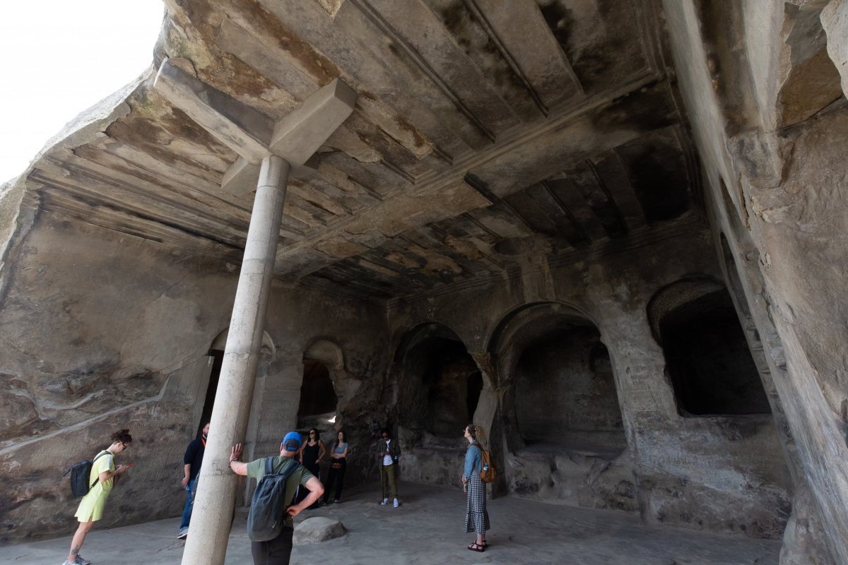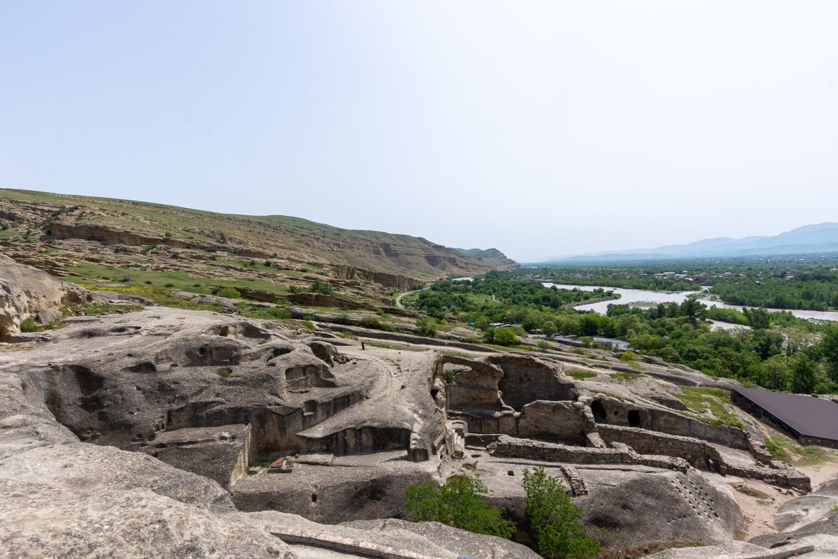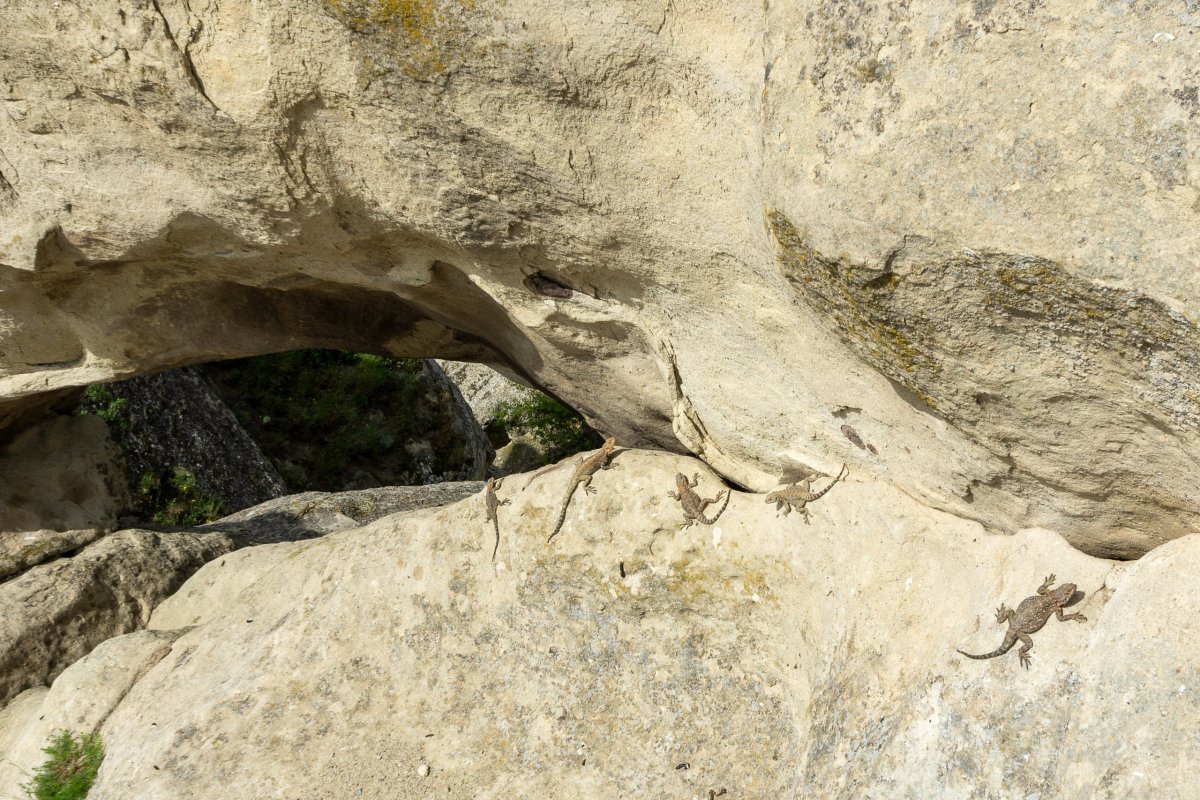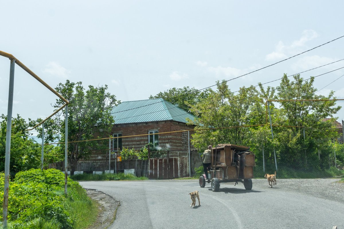 Ráno váhám, jestli navštívit muzeum Stalina , pere se ve mě turista a moralista, nakonec moralista vyhrává, a tak nakoupím jídlo a vyrážím do skalního města /pevnosti u Kvakhvreli, které se jmenuje Uplistsikhe. Po příjezdu moc nechápu, co všichni řeší, jsou to jen skály s pár dírami, ale pak mi dojde že jsem šel jen po přírodních hradbách a jeskynní město je o kousek dál. Stane se. Nejvíc si skalní město užívají místní obyvatelé, ještěrky, které se vyhřívají skoro na každé skále. Vyhřátý pískovec láká ale i hady, takže si taky vyzkouším jak umím skákat do výšky, když na jednoho málem šlápnu. Skalní město bylo obývané od doby železné do středověku a je očividně na seznamu všech zájezdů v Gruzii, protože hodinu po otevření se začíná plnit japonskými a americkými turisty. Strategická poloha nad údolím řeky dává jasně najevo, že pevnost kontrolovala veškerý obchod po řece a díky tomu se udržela tak dlouho. Turistů na mě začalo být moc, a tak se vydávám autem skrz horká pole do Tbilisi, abych nasál i něco jiného než přírodu. Po příjezdu do Tbilisi zjišťuji dvě zásadní věci – přestala mi fungovat klimatizace a mám radši gruzínskou přírodu než města. Doprava je na půl cesty mezi Albánií a Indií, na pravidla ani pruhy se nekouká, ale na světlech se ještě zastavuje. Rychle tedy zaparkuji v centru a lyžařskou kabinovou lanovkou se vydávám na kopec s výhledem na město a taky chci porovnat sochu matky Gruzie s mojí zkušeností s matkou Ukrajiny. Výhledy jsou pěkné, ale místo je pěkně turistické se stánky s suvenýry a trdelníkem. Je hrozný hic, ale neodolám a vylezu ještě na pevnost, která je výš než kopec se sochou, stojí mě to lehký úpal, ale výhled je opravdu pěkný. V dálce vidím obrovskou katedrálu, nevím, čím to je, ale největší jsou vždy ve velmi chudých zemích. Zlatá střecha funguje jako maják, a tak i já si říkám že se přes město vydám se tam podívat. Město je samo o sobě taky na přechodu mezi Evropou a Asií, má podzemní parkoviště, ale i kabely všude nad zemí a odpadky po ulicích. Kupuju si zmrzlinu, v dnešních třicítkách to bude nutnost. Okolí katedrály není překvapivě nejluxusnější, oprýskané domy a zarostlé zahrady, v každém evropském městě by to byla nejluxusnější adresa. Před katedrálou se právě fotí děti s pokreslenými podepsanými košilemi, asi konec školního roku. Katedrála je samozřejmě monumentální, obrovská, ale překvapivě tu skoro nikdo není, i otevřené dveře do ní hledám dlouho a obejdu jí skoro celou, než najdu. Uvnitř se, jak jinak, nesmí fotit, ale popravdě, ani moc není co. Ikony i výzdobu mají jinde hezčí. Po cestě zpět k autu se zastavím na pozdní oběd v Khachapuri House, kde musím ukázat na náhodné jídlo, nikdo nemluví anglicky. Jednoduchá polévka a gruzínský chléb ale zasytil dobře, a tak můžu vyrazit na sever. Vydávám se k ruským hranicím, kde má být krásné údolí, celodenní trek k opuštěné pevnosti na konci světa. Cestou míjím vodní nádrž, kde si místní vyrobili na vyhlídkových místech kovové rámy ve tvaru srdce a musí se jim za fotky platit, a pevnost u nádrže, která byla zamčená a hlídaná ospalými psy. K pevnosti se jelo po mostě, který měl mezi jednotlivými betonovými díly mostu asi deset centimetrů místa, což jsem naštěstí při jízdě po něm nevěděl. Pak už začínám stoupat serpentýnami k horám směrem do Ruska, kde se čile obchoduje, jeden kamion za druhým, takže v zácpě skejsnu hodinu a půl co bych jel autem dvacet minut. Usínám v hotelu v horském středisku s výhledem na krásné hory a silnici plnou kamionů.