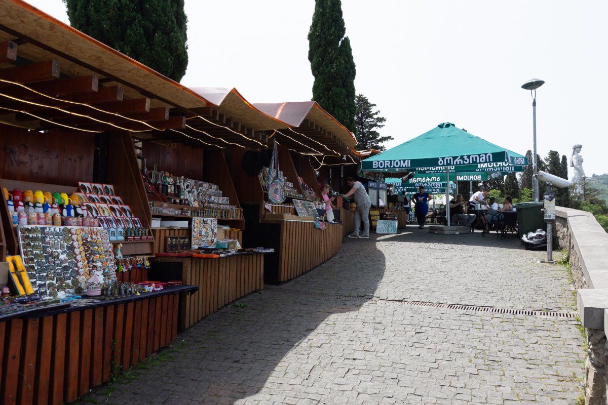 Po příletu na mikroletiště v Kutaisi kupuji neomezená data za 90 Kč na týden a píšu do půjčovny, kde je moje auto. Chlap na mě už čeká, neumí ani slovo anglicky, ale na telefonu má kolegu, který umí, tak si ve třech zvládneme předat Nissan X-Trail z roku 1998, který někdo předělal z japonské verze na levostranné řízení. Auto už má dost za sebou, ale to je v půjčovně výhoda, nehledí se na poškození až tak. Odvážím chlapa zpět do Kutaisi, v samoobsluze dělám nákup a výběr hotovosti. Spousta věcí se dováží a stojí tak stejně jako u nás, místní suroviny jsou levné. Hodně je z Ruska, z Ukrajiny (Roshen) a západní klasika. S nákupem vyrážím do centra, chci nasát atmosféru a protáhnout se. Stavební zákony jsou tu velmi volně interpretovány jako "když to nespadne, je to ok". Podobně je na tom i vozový park a silnice. Naivně s tím, že v centru bude zákaz vjezdu, nechávám auto u řeky a vybíhám do kopce, kde zjišťuji, že tu platí pravidlo "když tam vyjedeš, tak tam můžeš". Pro příště dobré vědět. Před katedrálou sedí dvě babky, mají před sebou misku s mincemi a chytají nově přiletivší turisty, aby si mysleli, že je to na vstup, ale jen žebrají. Další čekají u dveří katedrály. Katedrála se jim rozpadala, tak ji teď obnovují a moc původního tam nezbylo, ale je odtamtud hezký výhled na město.