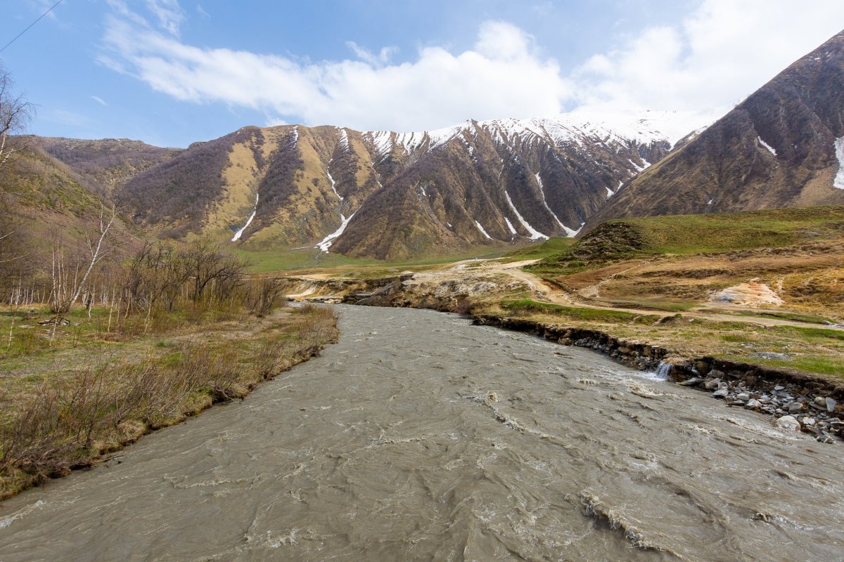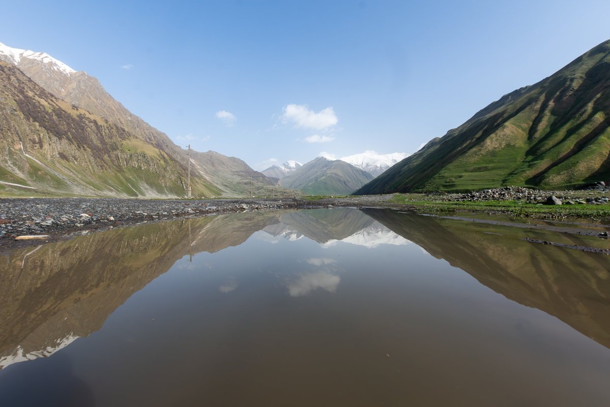 Ráno vstávám v šest, což znamená, že opět nikoho nepotkám, tak nechávám peníze přikryté na recepci a píšu majiteli zprávu, ten za 4 hodiny odpoví že ok, holt ještě není sezóna. Stále stoupám vzhůru, ale tak brzo ráno ještě nejezdí kamiony, tako to jde dobře. Zastavuji u pomníku Rusko gruzínského přátelství, vybudovaného za SSSR, teď by takový úspěch asi neměl. Krásné výhledy na hory, které už leží v Jižní osetii, takže jsou z gruzínské strany nepřístupné. Cesto přejíždím Křížový průsmyk, nevyšší bod, jakého tady dosáhnu autem, protože je jedna z mála spojnic s Ruskem, tak jej udržují bez sněhu i teď. U silnice koupím tuhý bílý med, říkám si, že zkusím na letišti, jestli projdu skrz kontrolu. Potom kousek před hranicemi zahnu do údolí, ve kterém strávím většinu dneška. První kilometry jedu autem, pak potkám farmu v kopci, tak se farmáře ptám, jestli je cesta dál průjezdná, ten říká že ne, tak u něj auto nechám a pokračuju pěšky. Jdu půl hodiny, cesta pořád v pohodě, v duchu nadávám farmářovi za přílišnou opatrnost. Dojede mě Subaru forester, turista se mě anglicky zeptá, jestli chci dál jít nebo chci svézt, tak říkám super, svez se v subaru, další věc odškrtnuta. Přehází věci, jednu stopařku z Polska už mají v autě, sednu si, jedeme deset vteřin a řidič říká, že asi končíme. Přes cestu je lavina, odklidit by ji trvalo půl dne. Takže ve dvou s Litevkou vyrážíme pěšky dál, o pár set metrů je další část cesty zavalená, takže i kdybychom první zával odkopali, daleko se nedostaneme. Další kus cesty vede říčkou, která sahá akorát nad lem mých bot, aby to bylo napínavější. Potom se před námi ale otevře údolí a na veškeré obtíže rychle zapomeneme, je to dechberoucí a vypadá to, že jsme jediní, kdo tudy za dlouho dobu šli. Jdeme kolem krásných travertin, obdivujeme opuštěné vesnice, pijeme z minerálního potoka, veeelmi opatrně jdeme okolo prasete, které vypadalo, že turisty jí k snídani a mělo u sebe mladé a bachyni. Naštěstí ho moje dýňová semínka zaujala natolik, že nás nechal na pokoji. Jdeme kolem opevněného domu ze středověku se solárními panely a satelitem, ale nikdo tu není. V dálce již vidíme pevnost, v tom nás předběhne turista, který se objevil netušíme odkud a zničí naše iluze o objevování zapomenutého kraje. Pevnost je krásná, výhledy do hor majestátní. Na chvíli si lehnu a jen pozoruju nekonečnou přírodu a šum větru. Když sejdeme zpět z pevnosti do údolí, potkáváme už více lidí, byli jsme první jenom dnes ráno to vypadá. Vracíme se jinou cestou po druhém břehu dravé říčky, má tam být minerální jezírko a taky že ano! Chuť skvělá, čerstvá minerálka přímo ze země. S holkou dojdeme k autu, dovezu jí k silnici, ona pokračuje na opačnou stranu, mě čeká dlouhá cesta do Kutaisi. Čeká mě dlouhá cesta, která ze začátku probíhá bez větších potíží, jen objevuji, že se na ukazatel paliva asi už nedá spolehnout, chvíli jde nahoru, potom dolů. Při cestě na dálnici vidím reklamu na Wendy's, což mi v Gruzii přijde tak bizarní, že porušuji svou zásadu nejíst fastfoody v cizině a dám si hamburger. Není nic výjimečného, ale je zajímavé tu vidět americkou franšízu. Jedu do krásného západu slunce, se kterým se se mnou Gruzie loučí. Pak to začne. Zjišťuji, že v noci je silnice vedoucí podél stavby dálnice zavřená, takže musím se musím kus vrátit a udělat dvouhodinovou zajížďku okreskami v noci, kdy občas chybí kusy silnice, mě nesvítí pořádně světla a řidiči ani zvířata nemají pud sebezáchovy. Nejhorší zážitek v Gruzii taky odbytý. Do Kutaisi přijedu v jednu ráno, zabalím se a jdu spát, naprosto hotový.
