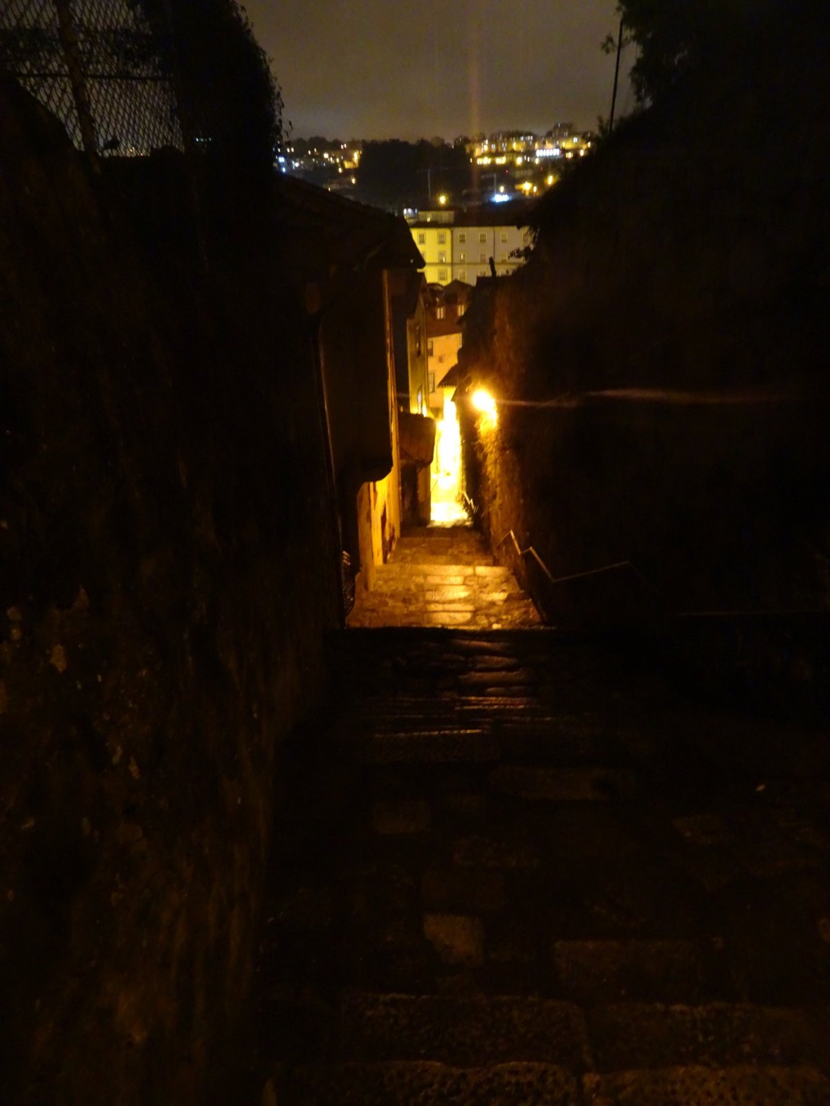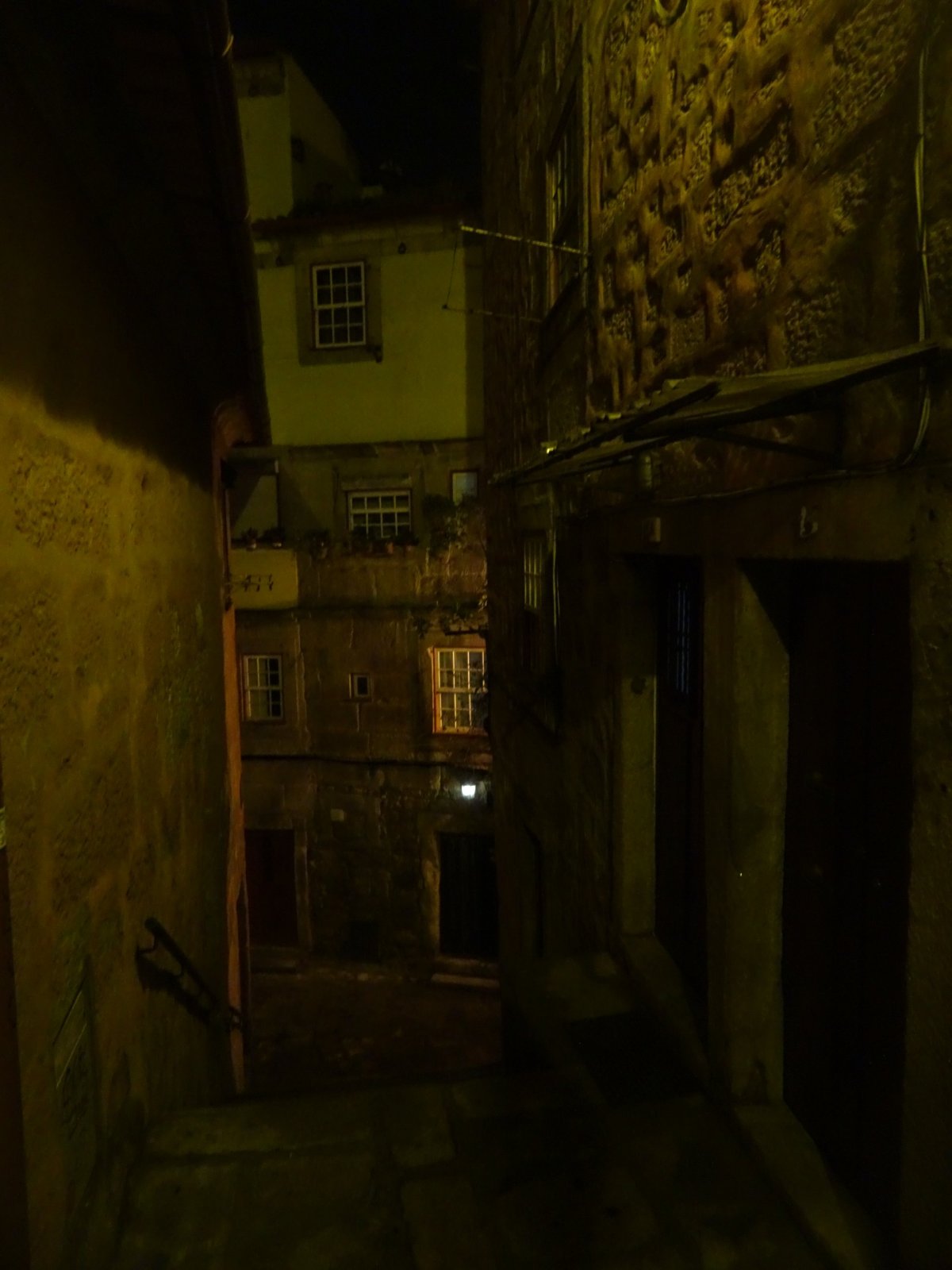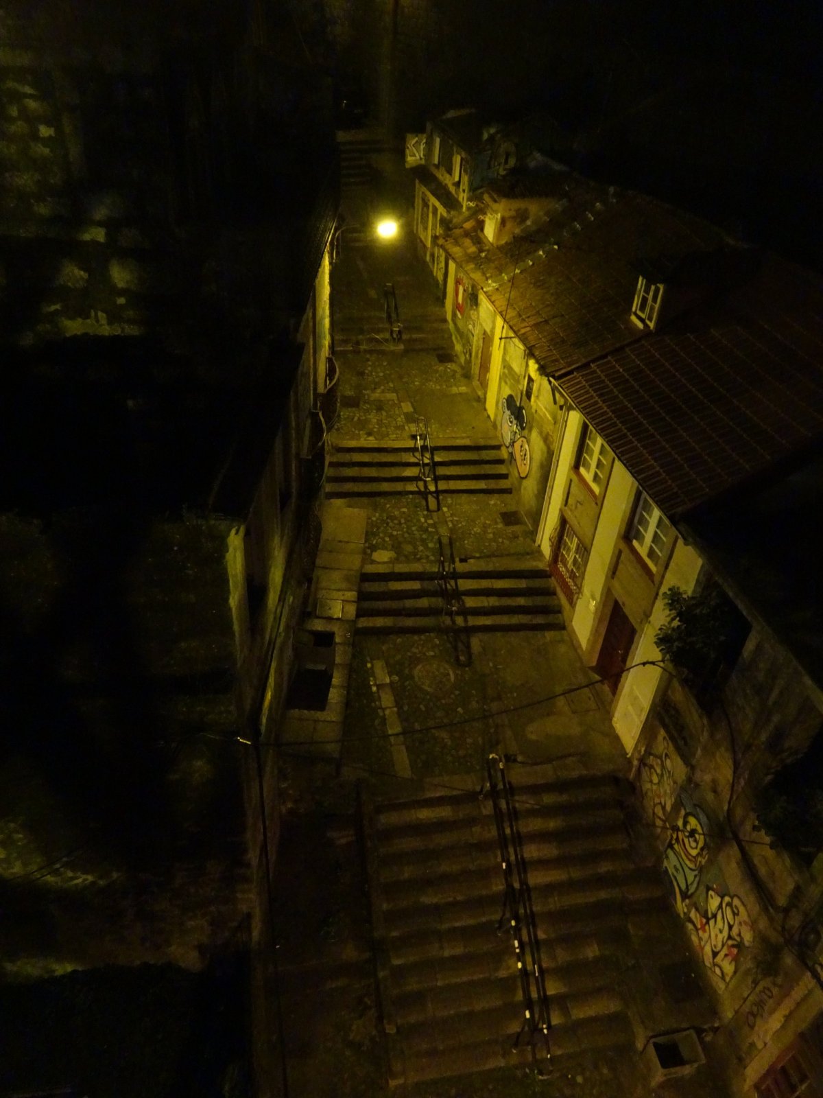 Předem bych chtěl upozornit, že nejsem žádnej ten klasickej prolízač všech kulturních a historických památek, ale raději tíhnu k nějakému tomu dobrodružství, což Porto v hojné míře nabízí. Vydal jsem se tudíž pod rouškou tmy do ponurých, úzkých a spletitých uliček Barrio La Ribeira, hned za rohem katedrály Sé do Porto. Cesta z kopce byla někdy tak prudká, že bylo třeba jít nesčetnými schodišti s patřičným zábradlím. Byl to úplný labyrint, kde občas svítila nějaká ta žárovka na cestu. Vzpoměl jsem si na rychlý šípy ve Stínadlech a začal tiše našlapovat.