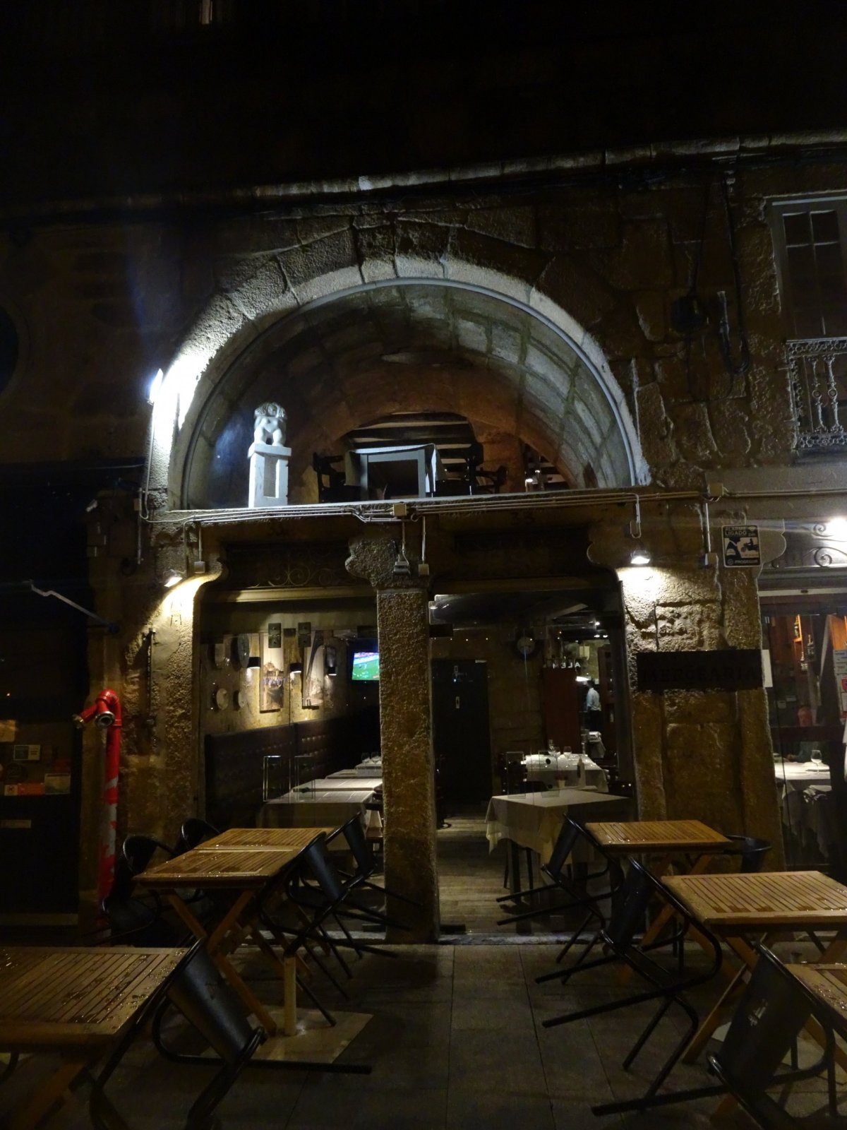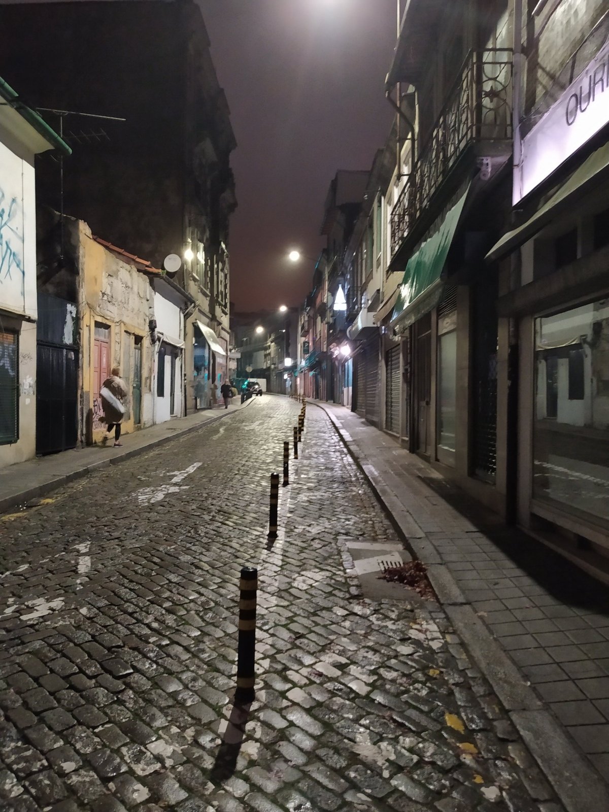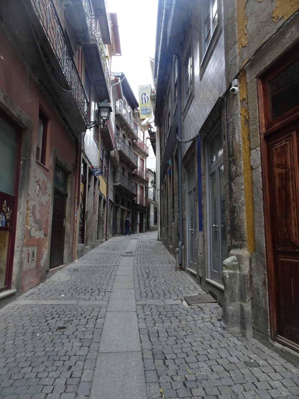 Předem bych chtěl upozornit, že nejsem žádnej ten klasickej prolízač všech kulturních a historických památek, ale raději tíhnu k nějakému tomu dobrodružství, což Porto v hojné míře nabízí. Vydal jsem se tudíž pod rouškou tmy do ponurých, úzkých a spletitých uliček Barrio La Ribeira, hned za rohem katedrály Sé do Porto. Cesta z kopce byla někdy tak prudká, že bylo třeba jít nesčetnými schodišti s patřičným zábradlím. Byl to úplný labyrint, kde občas svítila nějaká ta žárovka na cestu. Vzpoměl jsem si na rychlý šípy ve Stínadlech a začal tiše našlapovat.