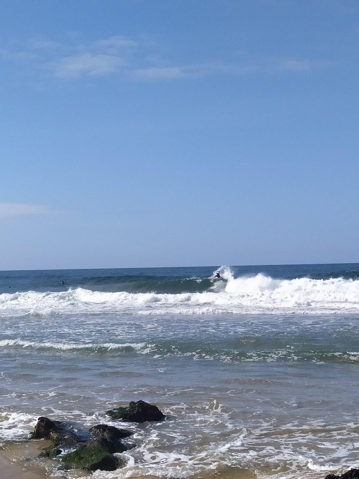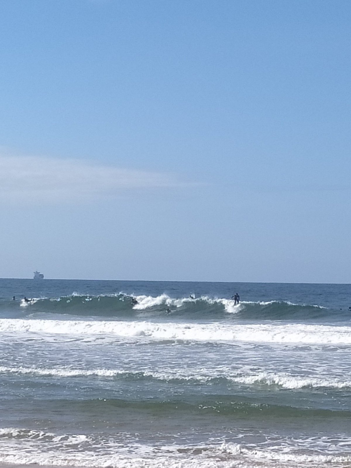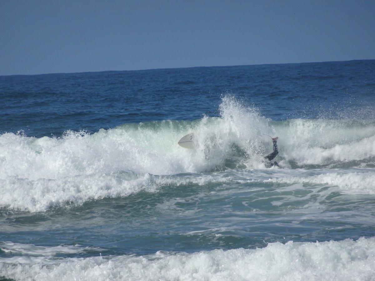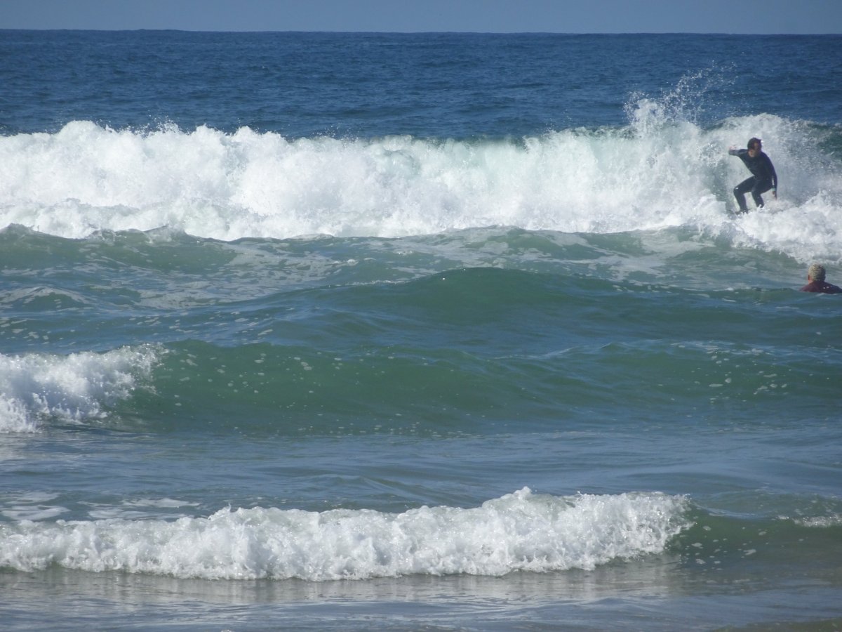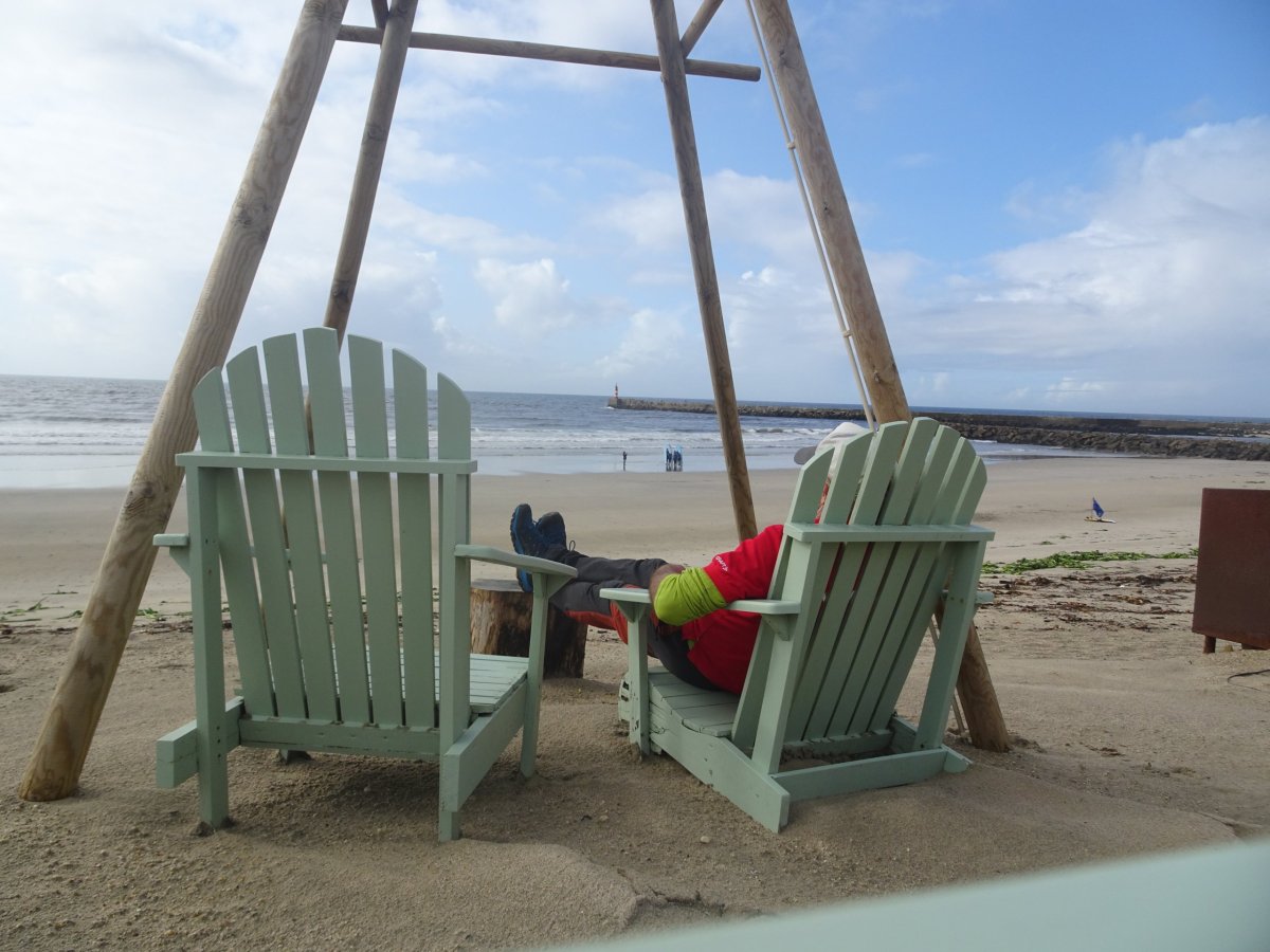 Po návratu s cesty jsem byl docela znaven a navíc poslední 3 km začalo vydatně pršet. Ještě, že touto dobou bývá v Portugalsku poměrně teplo. Dobře chlazené pivo mi však bylo večer odměnou. Na další den jsem si naplánoval surfování na věhlasné Praia Azurare. Ve středu ráno jsem tedy sednul na Metro a jel do města Azurare. Počasí se začalo pomalu, po včerejším deštivém zakončení dne, lepšit a občas se objevila i modrá obloha. Cesta Metrem ubíhala rychle i když byla až do nejvzdálenější stanice a s mnoha zastávkami. Přibližně za hodinu jsem stál na dlouhé písčité pláži a pokračoval pěšky v jemném písku na sever. V půjčovně jsem si zapujčil prkno a neopren, což bylo nakonec stejně drahý, jak na Hawaii samotný prkno. Bez neoprénu je to ovšem v Portugalsku jen pro otužilce. Surfing je poměrně fyzicky náročná zábava a tak jsem tam vydržel čistýho času jen dvě hodiny. Pokračoval jsem pak Metrem do koncové stanice.