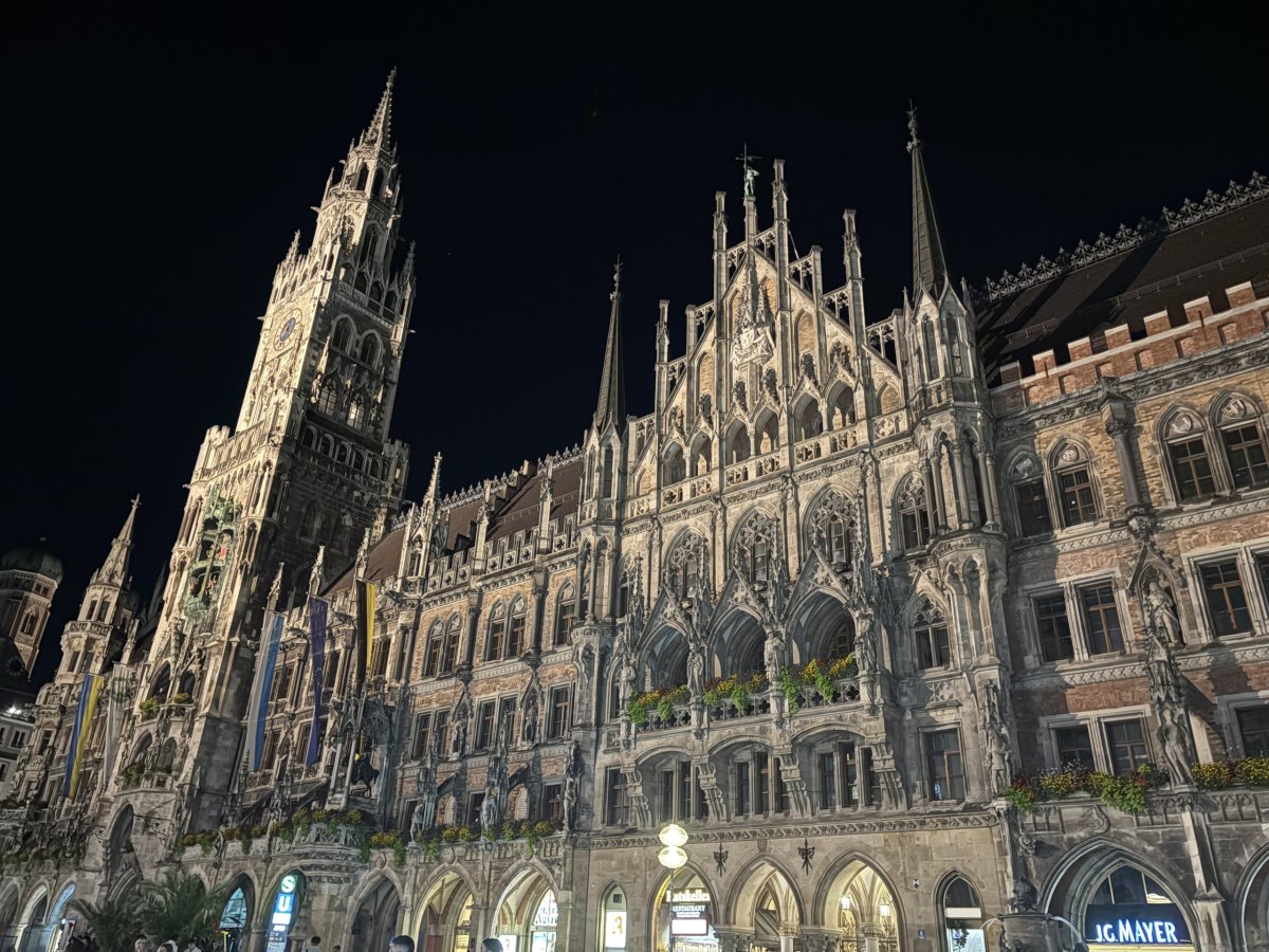 Po tomto tichém a silném zážitku míříme do Mnichova, kde náš první den končí. Večerní ulice, ruch města, první pivo. V plánu bylo jen jedno, ale jak už to tak bývá – věci se občas vymknou. Z piva se stal otřes mozku. Doslova. Než ale hlava udělala svůj výlet, ještě jsme stihli projít slavné náměstí Marienplatz, kde gotika a neogotika bojují o pozornost stejně jako turisti o nejlepší úhel pro fotku.