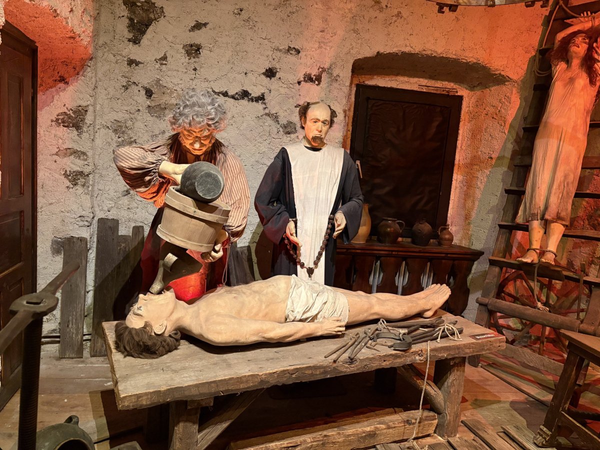 Uvnitř hradu je muzeum mučících nástrojů – výstava, která je sice drsná, ale zároveň fascinující. Vše doplněné historickým kontextem, dobře zpracované a překvapivě informativní. Mohu doporučit – i když není pro slabší žaludky, rozhodně zanechá dojem.