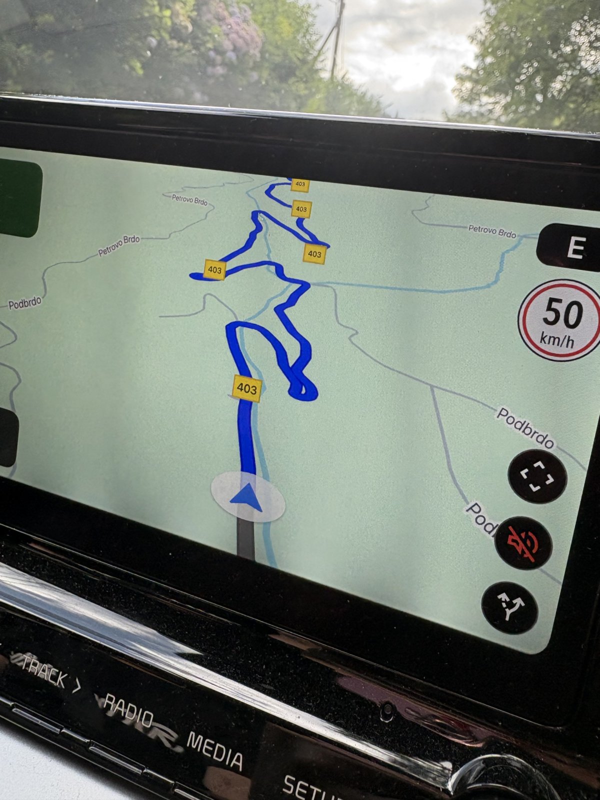 A pak už znovu na cestu. Serpentiny, nekonečné zatáčky, úzké horské silnice. Krása všude kolem, ale zároveň… mi je pěkně blbě. Večer dojíždíme do Podbrda – tiše, vděčně a s lehce zeleným výrazem ve tváři.
