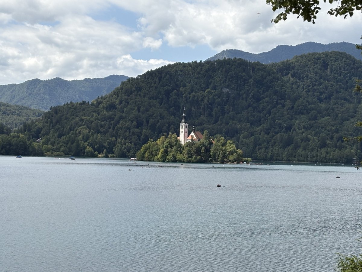 Kolem půl osmé vyrážíme směr Bled. Slavné jezero s ostrůvkem uprostřed vítá turisty, ale i přesto si najdeme prostor na klidnou procházku kolem vody a zaslouženou zmrzlinu. Voda se třpytí, lodky kloužou po hladině a město za zády necháváme jen tak plynout.