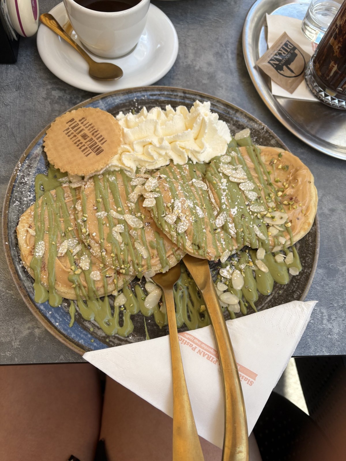 Pak míříme na snídani – a dáváme si americké lívance. Dlouho jsme neměli tak dobrou snídani. Sladké, voňavé, nadýchané a poctivě zalité sirupem. Po takovém ránu by člověk klidně odpustil i to parkování z předešlého dne.
