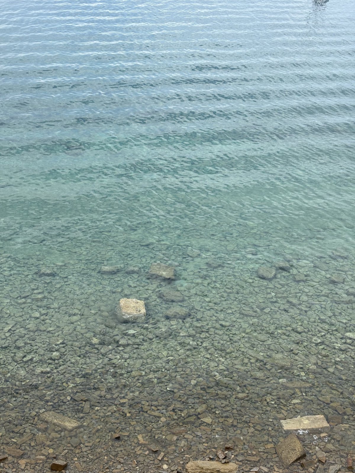 Voda je průzračná, téměř až neskutečně čistá, ale kameny pod nohama klamou – jsou ostré, kluzké a zrádné. Přesto tu zůstáváme. Rozkládáme deku, koupeme se, odpočíváme. Den bez přesunů, bez stresu, jen my, moře a slunce.