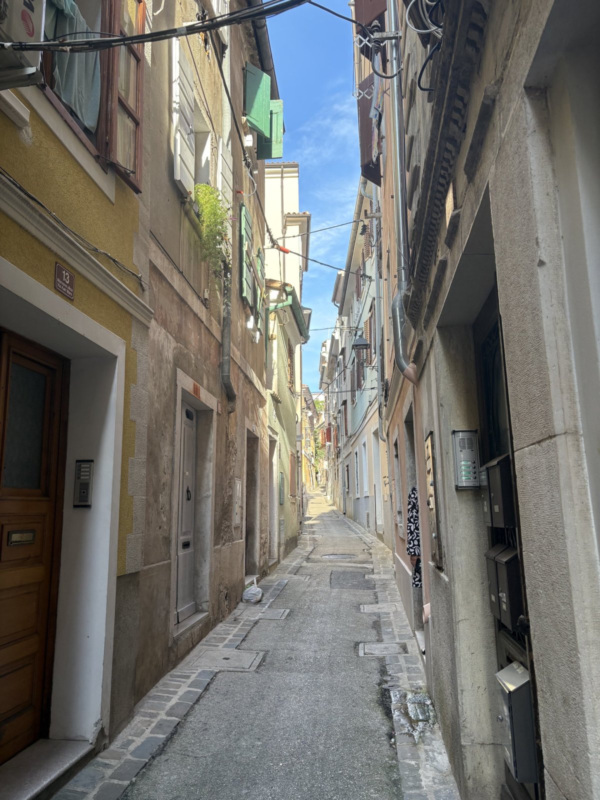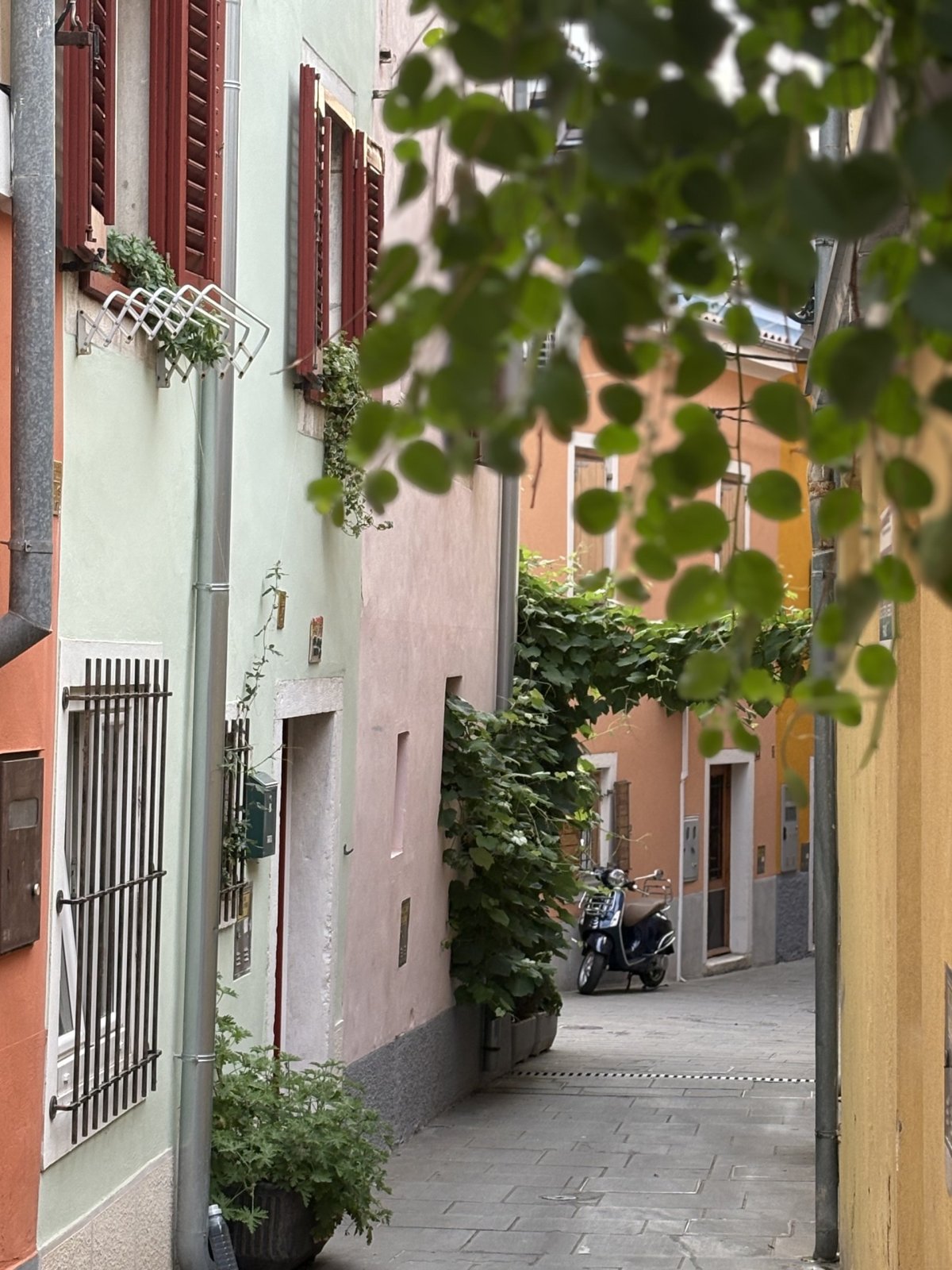 Zbytek dne se nese v pomalém tempu. Procházíme se po Pirani, úzké kamenné uličky se klikatí mezi starými domy, vůně kávy a moře se mísí do jedné mediteránní nálady. Nakonec docházíme na malou kamennou pláž.