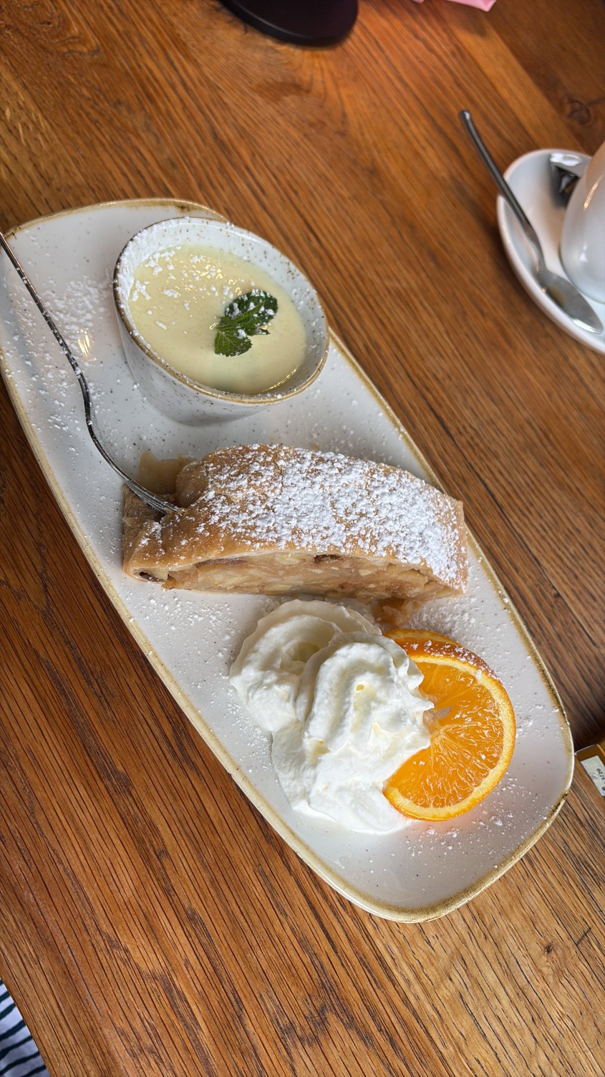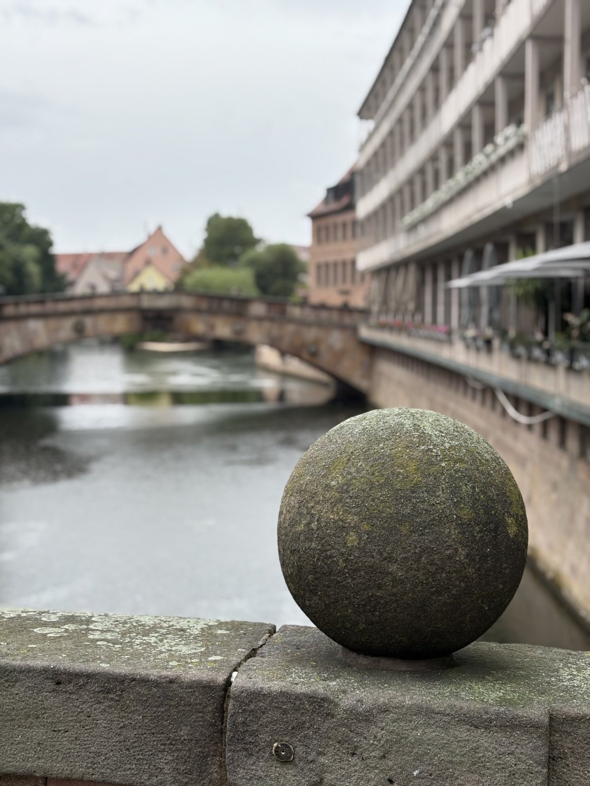 Na závěr si dáváme pauzu v kavárně přímo u mostu Fleischbrücke, kde padá jasné rozhodnutí: kafe a jablečný štrúdl. Prší, ale déšť má svoje kouzlo – město pod kapkami zpomaluje, dlažba se leskne a vůně kávy se mísí s vlhkým vzduchem. Možná nejlepší tečka za návštěvou města, kde má každá budova co vyprávět.