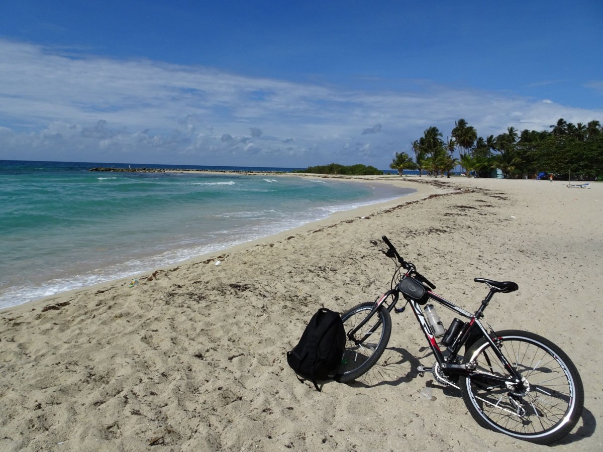 Lednový výlet na kole kolem Kostariky se vydařil a tak v březnu proběhla další cyklistická cesta, tentokrát Dominikánská republika. Motivací pro tuto cestu byla velmi levná letenka od Condoru s kooperací ČSA. Pomalu jsem začínal přicházet na chuť tomuto specifickému způsobu cestování. Po přistání v cílové destinaci sestavení kola a potom svobodný pohyb po neznámé zemi. Převozní brašnu, složenou do malého ruksaku necháte hned v prvním ubytování a pak s malým baťůžkem jedete na kole kam vás napadne. Má cesta vedla ze Santa Dominga do Punta Cana a Macaa. nazpět přes Bayhibe s návštěvou ostrova Saona. Dohromady nějakých 800 km za 14 dní, tedy žádný Tour de France, navíc je to po rovině. V Santo Domingu jsem před příletovou halou opět udělal pro místní taxikáře show se sestavením kola. Jeden dokonce projevil zájem o první projížďku. Cesta na ubytování byla kolem 25 km po rovině. Slabá hodinka. Druhý den, již jen s malým baťůžkem, brzo ráno po snídani vyrážím na první etapu. Cesta vede na východ, kolem pobřeží Karibiku do 60 km vzdáleného Juan Dolio. Za tři hodiny se již opaluji na Karibské pláži této turistické destinace. Zahřívací etapa proběhla velmi rychle a v podstatě nebylo kam spěchat. Počasí bylo nádherné, jen občas nějaký mráček vytvořil na silnici pohybující se stín v jehož úkrytu se pěkně šlapalo. Následující den jsem rekreačním tempem pokračoval do další turistické destinace La Romana. Opět brzy ráno o snídani v pohodovém výletním tempu trasa kolem 60 km. Obě tyto destinace slouží k rekreaci spíše domorodému obyvatelstvu. Při následné etapě z La Romany do Punta Cana se opouští pobřeží, ale jede se neustále po rovině. Ještě bych chtěl připomenout, že se jede v odstavným pruhu dálnice, která je v podstatně lepším stavu, než D 1 před rekonstrukcí. Punta Cana je největší turistické centrum na straně Karibského pobřeží Dominikánské Republiky. Létají sem dokonce i přímé leteké spoje z Evropy. Ceny ubytování jsou zde velmi příznivé a pro plážové povaleče podmínky téměř ideální. Nepatřím k plážovým povalečům a na jednom místě vydržím tak maximálně 3 dny. Pokračoval jsem tedy po těch třech dnech na sever do Macaa. Tamější ubytování bylo ve stylu hippies ze sedmdesátých let a prostředí na pobřeží mělo přírodnější ráz. Opět jsem se zdržel 3 dny, zaneprázdněn šnorchlováním a surfingem. Nastal čas pro zpáteční cestu do Santo Dominga. Cestu jsem volil tentokráte přes Bayhibe, malé přístavní město u národního parku. Tam jsem strávil dvě noci v nádherném ubytování a jeden skvělý celodenní, All inclusive,výlet na katamaránu , jehož cílem byl ostrov Saona- perla Karibiku. Je až neuvěřitelné, co člověk může vypít a sníst, když hodlá amortizovat náklady. Investice byla zpět již během prvních dvou hodin jízdy 😂. Opravdu nádherný ostrov je Saona, vždyť se tam dokonce natáčel film Piráti z Karibiku. Další ráno po úspěšné plavbě jsem pokračoval známou cestou na Santo Domingo. Jelikož cesta je po rovině kolem pobřeží, stačily na to dvě etapy. Ve výletním tempu jsem dorazil do Juan Dolia a přenocoval jsem v levném apartmánu. Počasí mi celou dobu pobytu přálo a pivo Presidente taky není špatný. Cyklovýlety po Dominikáně mohou vřele doporučit.