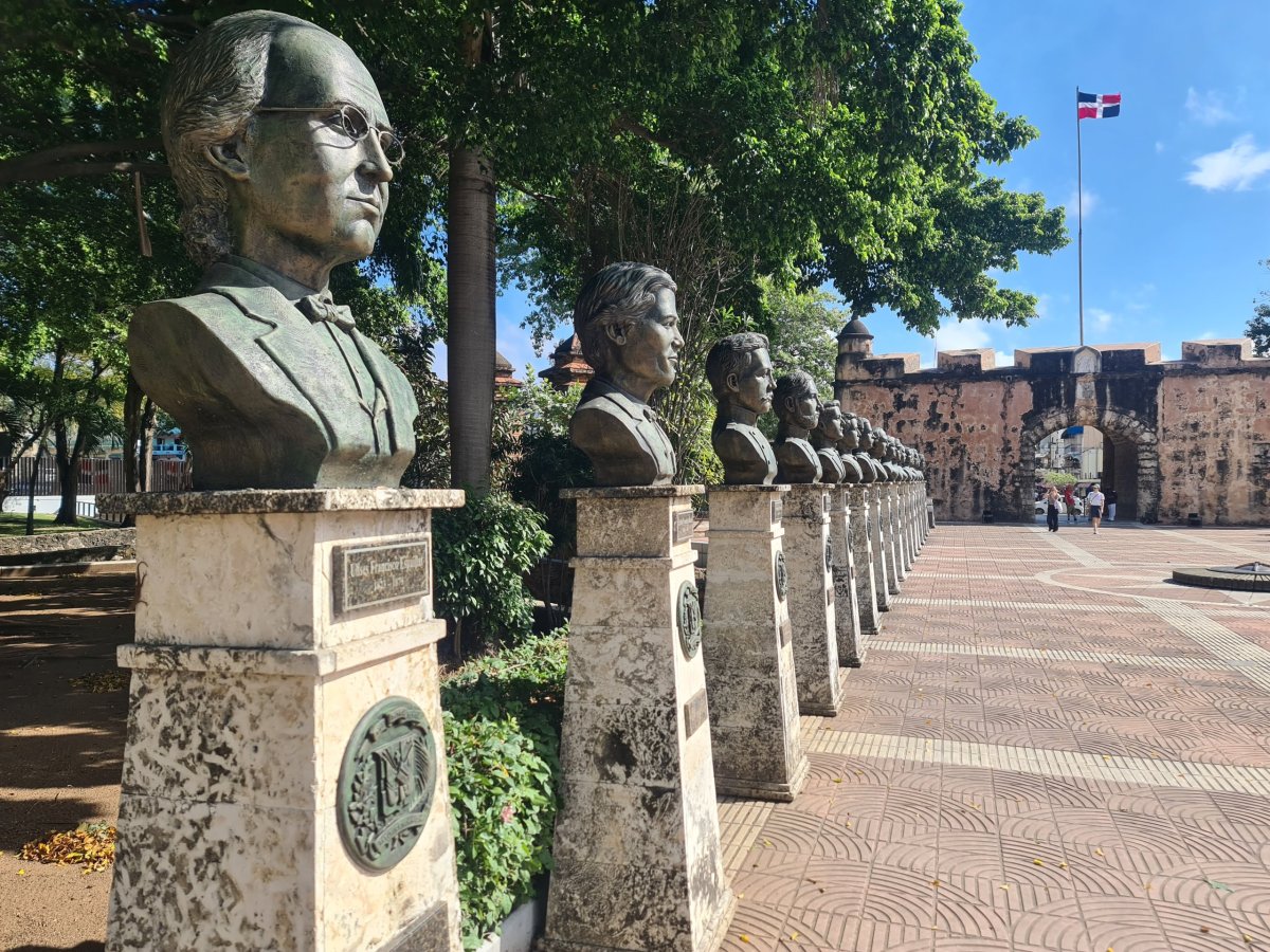 Následně scházíme dolů k Park Independecia, kde je i moc pěkná brána a mauzoleum se sochami zakladatelů Dominikány. Prý stojí za to i blízký pahorek Fuerte de la Concepcion, ale kromě spícího bezdomovce a několika podpapíráků tady fakt nic není.