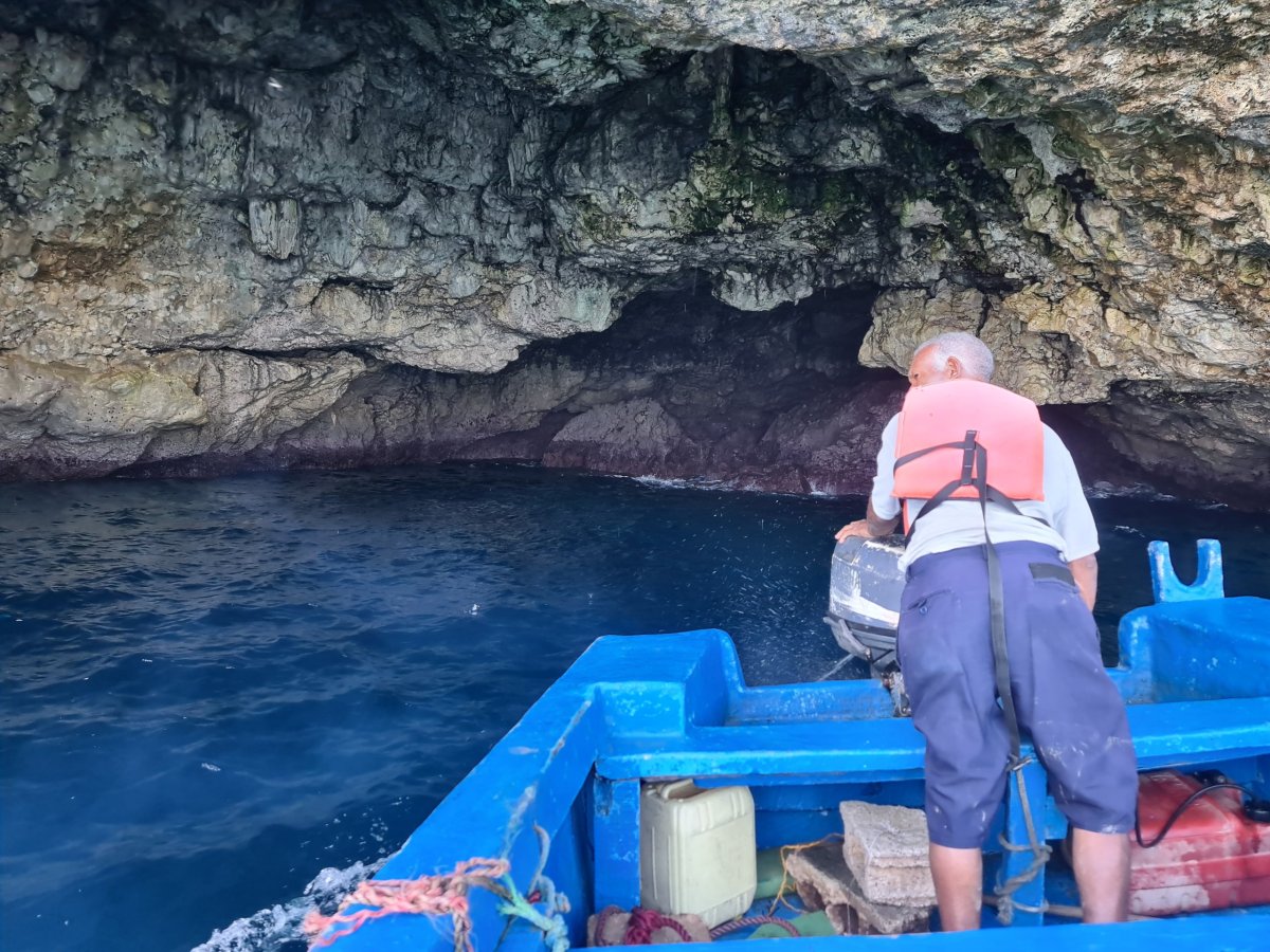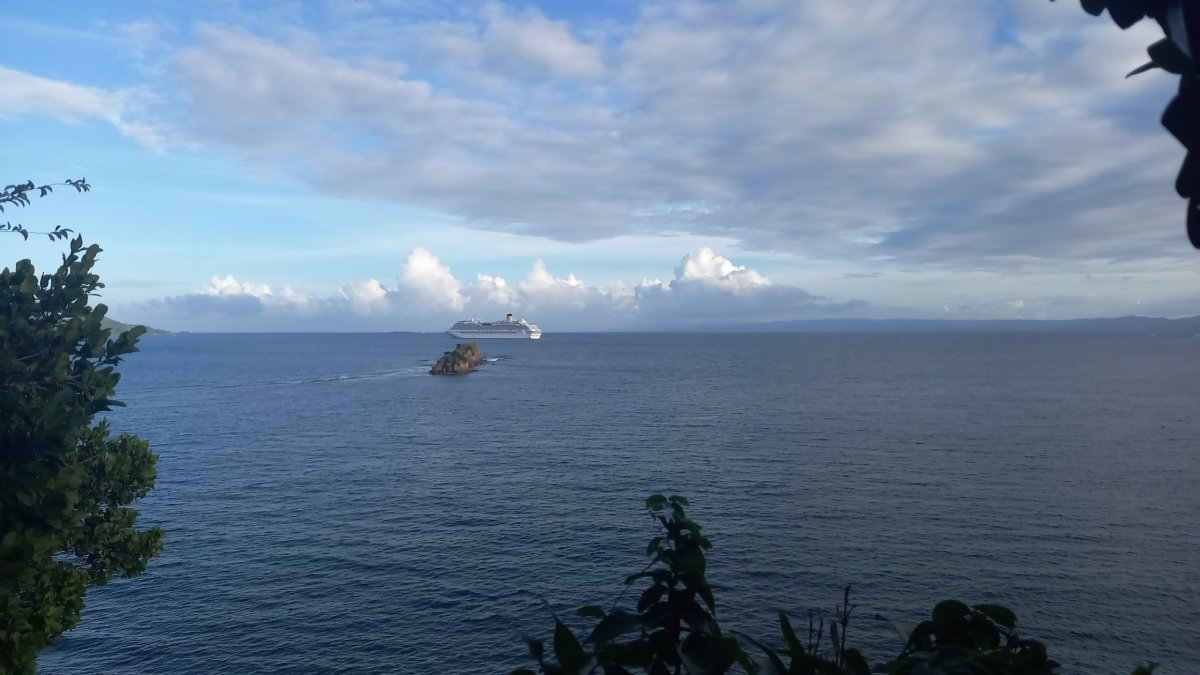 V 9 jsme opravdu na místě, odchytává si nás známá osoba ze včerejška a doplácíme mu zbytek požadované částky. Chvilku sedíme a čekáme v restauraci a někdy kolem 9:40 už nastupujeme do katamaránu, který míří ven ze zátoky na moře.