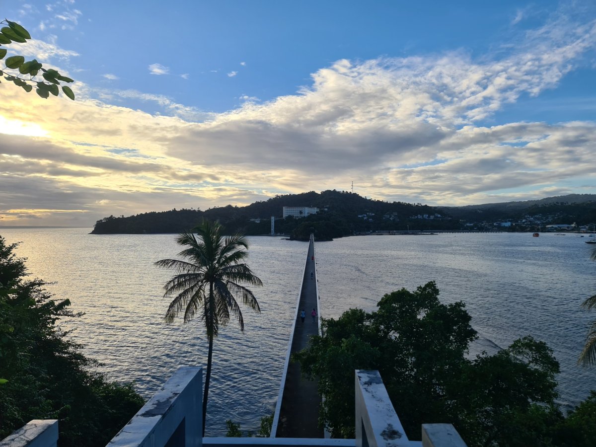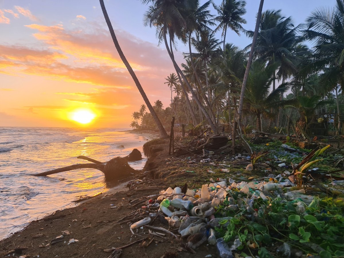 Ráno, chvilku po sedmé, vstávám a jdu mrknout na východ slunce k přilehlému pobřeží. Je tu strašnej bordel, dost fouká a mám docela strach, že mi na kokosu přistane ten opravdový kokos. Sice je slunce trošku za mraky, i tak to stojí za to.