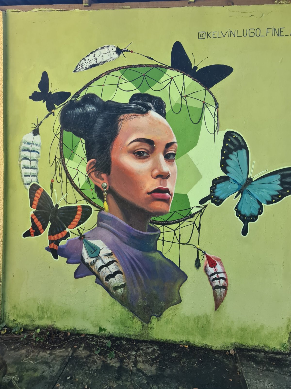 K laguně se dostáváme docela v pohodě, dá se zaparkovat v těsném sousedství v některé z uliček. Není tu žádný autobus, žádní turisté, pěkně klid, ticho a pohoda. Scházíme po schůdkách dolů k jezeru a hned nás odchytává první naháněč. 4000 DOP za celou rodinu. Jo, to víš, že jo. Jako všude jinde, i tady platí, nenechte se zahnat do kouta. Zkusím mu navrhnout 2000 a když říká 2500 jako poslední slovo, přestávám se s ním bavit a jdeme doleva k oficiálního okýnku pro vstup do laguny. Na oficiální tabuli je cena pro 4-8 osob za 2500. Nikdo jiný tu ale není, takže pojedeme v lodi sami. Platím tedy 2500 za celou rodinu, ujímá se nás kapitán Lorenzo (jak sám o sobě poznamenal Lorenzo Lamas), usazuje nás do motorové loďky a vyrážíme. V loďce jsme tedy sami, Lorenzo umí trošku anglicky, takže občas k nám něco prohodí a něco málo řekne. Proplouváme prvně mangrovy ve sladké vodě, pak už vjíždíme na moře. Korzuje tu několik lodí, míjíme starý vrak a jedeme kolem pobřeží doprava do tzv. Vlaštovčí jeskyně. Jeskyně je trošku honosný název pro vykotlanou díru ve skále, která vznikla působením příboje. Lítá tu spousta vlaštovek, takže název je jasný. Jo, mně se to celkem líbí. Nazpátek jedeme kolem pobřeží, kde nám Lorenzo ukazuje spoustu dalších zajímavostí. Posvátná místa, na kterých je naskládána spousta sošek, skálu jejíž silueta vypadá jako tvář z profilu. Nakonec nám zastavuje v parádní zátoce a vybízí nás ke koupání. Kluky samozřejmě dvakrát pobízet nemusí, takže skáčou z lodě a užívají si nádhernou tyrkysovou vodu. Vedle je i velmi známá pláž Playa Caleton, kolem které proplouváme při naší cestě nazpátek do laguny. Lorenzo nám říká, že se tam dá dojít i pěšky od silnice. Z lodě vypadá moc pěkně, tak uvidíme, třeba si tam ještě zajdeme. Celý výlet i s koupáním trval asi 2 hodiny a musím říct, že se mi moc líbil. Lorenzo a vlastně ani nikdo jiný si neřekl o spropitné, tohle se mi tady docela líbí. Pokud nechcete, spropitné nedáte, zatím se mi nestalo, že by si o ně někdo řekl. Vyskakujeme z loďky a jdeme se ještě mrknout na kresby Tainů, původních obyvatel Dominikány, kteří už tu prakticky nežijí. Ne, že by je kreslili Tainové, ale jsou to kresby moderních umělců, které znázorňují Tainy a jsou na velké zdi hned vedle laguny.