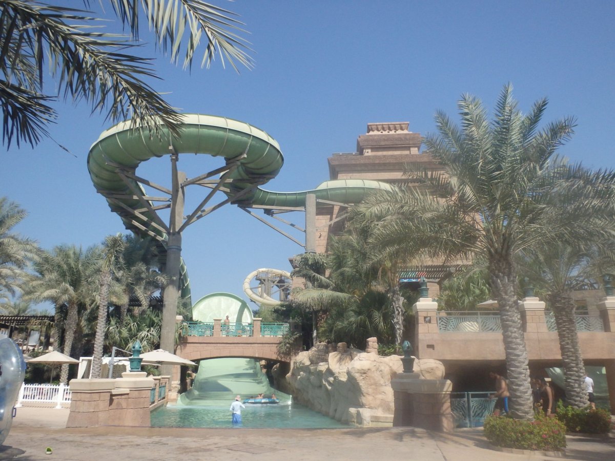 Palmový poloostrov / Aquapark hotelu Atlantis Druhý den jsme vyrazili do největšího akvaparku na světě. Nachází se na cípu palmového poloostrova a jediná doprava je taxíkem. Je to opravdu daleko a dubajskou dopravou nám cesta zabrala skoro hodinu. Lístky jsme měli koupené dopředu a upozorňuju, ze vstupné je s nadsázkou nekřesťanské :). 4 člennou rodinu vyjde jak malý osobní vůz :) samozřejmě sranda, ale mě a syna stálo vstupné 3 tis plus útrata . U vstupu kontroluji tašky, takže zásoby jídla a piti nehrozí :) Park je krásný, veliký, možnost být u moře nebo u bazénu, lehátek dostatek. Jediné a obrovské minus považuji to, že na hodně atrakcí můžou děti až od 120 cm a plně to kontroluí, můj syn měl 119 cm a neprosel ani s prosíkem, že půjdu s nim. Byl velký brek a z mé strany nechápající vstupné za malé dítě, kdy zaplatíte 13OO,- a na plno atrakci ho pak nepustí. Každopádně atrakce pro mě šílené. :) Aquaconda byl tobogan, kdy sem poprvé v životě myslela, ze mam infarkt ( kupodivu tam děti pustí ) . Zpět z aqua se dostanete zase jen taxíkem, chtěli jsme zkusit nadzemku, která vede zpět jen na "pevninu" ale byla poměrně drahá na tak malý kousek a večer už nejela.