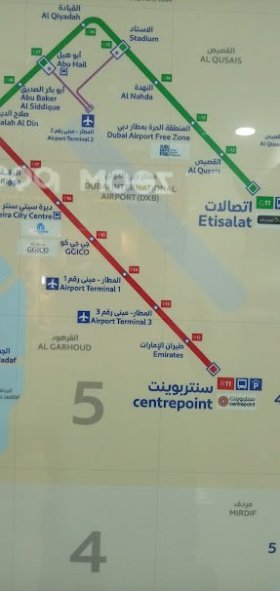 Ak prídete na Dubajské letisko večer treba si uvedomiť, že verejná doprava v Dubaji okolo 21-22 hod je už mimo prevádzky. Metro je v prevádzke ale len do 01:00 hod a je len pre terminál 1 a 3 nie pre terminál 2. Na terminál 1 a 3 ide tzv. červené metro. I keď sa budete informovať na pracovníka v metre či ide metro na terminál 2 povie Vám že ide ale nejde !!!! Treba voliť inú alternatívu ale v čase keď verejný dopravcovia prevádzkujú linky. Rovnako pozor na piatok keď v arabskom svete je voľno resp. sviatok a verejný dopravcovia začínajú s prevádzkou svojich liniek podstatne neskoršie ako v iné dni niekedy až od 09:00 hod ich času. Takže čím ste viac od letiska a centra tým je doprava náročnejšia a zdĺhavejšia.