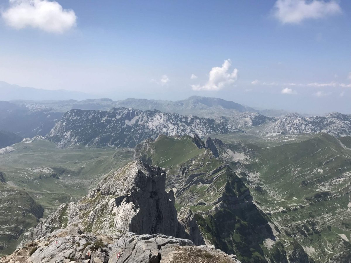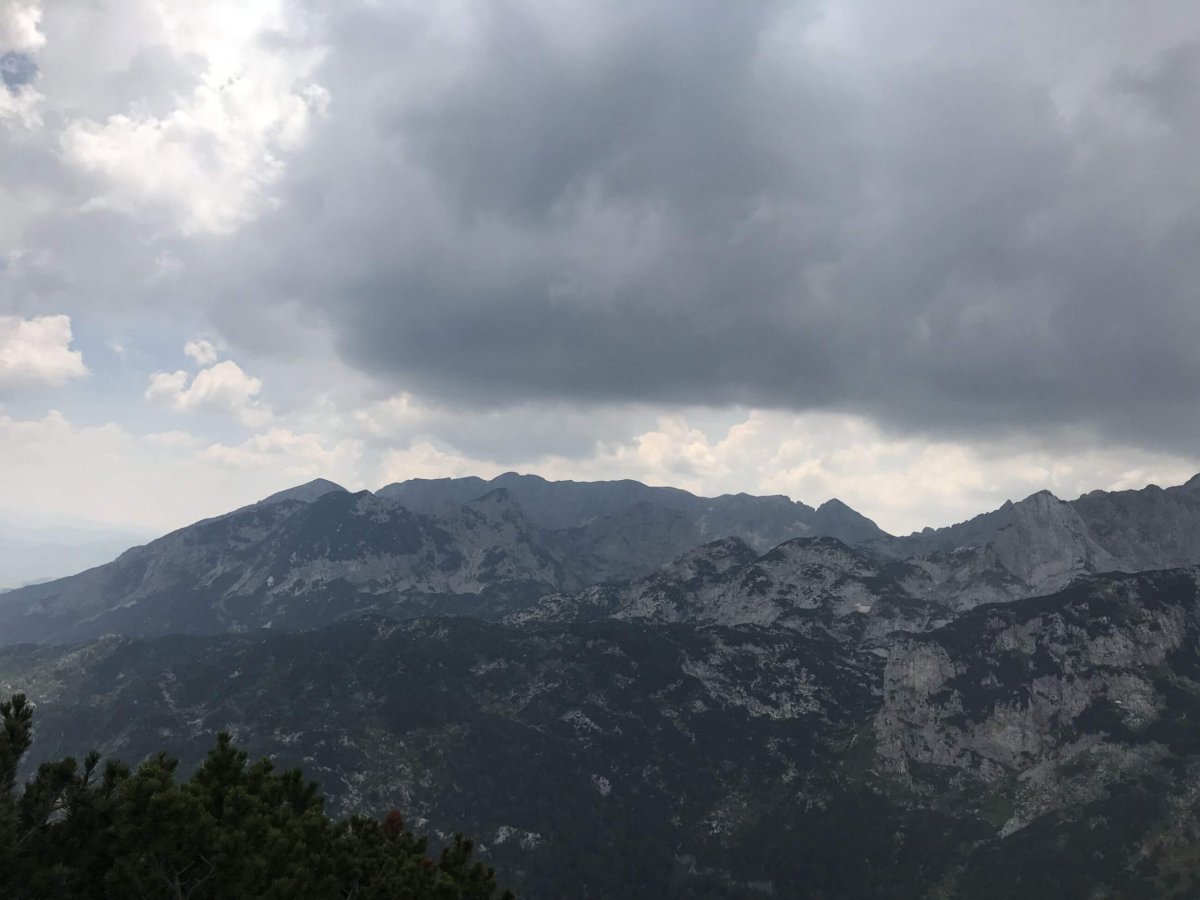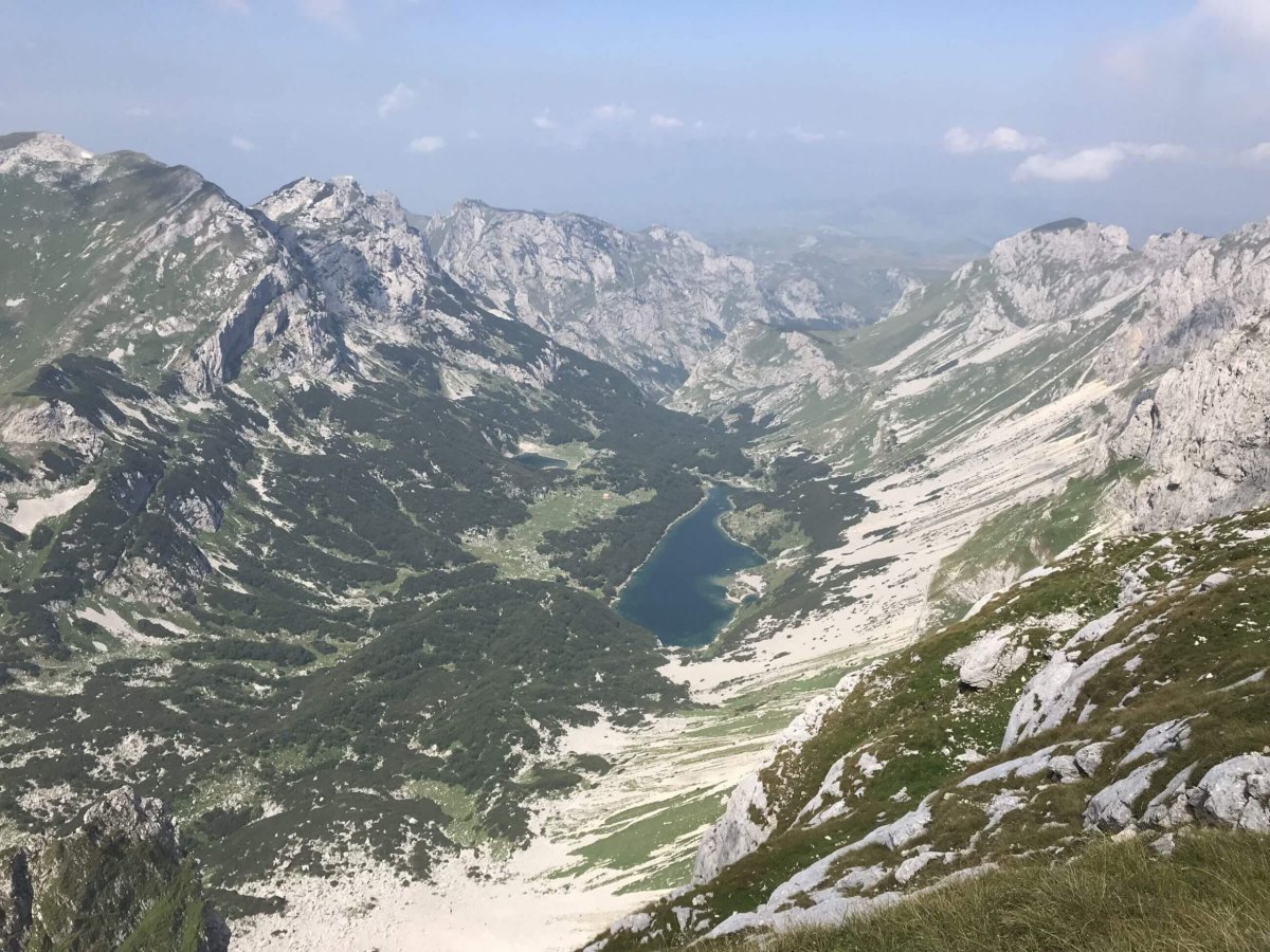 Na druhý den v Durmitoru jsem si naplánoval náročnější trasu přes Medjed, což je nejnebezpečnější hora v Durmitoru, budete se muset přidržovat hodně lan a upozorňuji vás, že je tam opravdu hodně míst, kde by byl člověk raději jištěný, nicméně to stálo za to. Cestu na Medjed jsem započal v Žabljaku, odkud jsem šel kolem Černého jezera, kde se nachází Titova jeskyně, kde měl jugoslávský komunistický odboj svůj hlavní štáb. Po okruhu kolem jezera jsem se vydal k ledovci Debeli namet, nad kterým se majestátně tyčí Savin Kuk. Na tomto místě se nachází červený bivak, kde lze zdarma přespat v pevném přístřešku, který vás spolehlivě ochrání před deštěm. Odtud jsem se dál vydal na Terzin bogaz a následně na Medjed, co se těchto dvou hor týče, mějte dobré obutí, nechoďte na ně s dětmi a dávejte si skutečně dobrý pozor, na Medjedu se zabilo nemálo lidí, týden před mým příjezdem se tam zabila holka z Malajsie. Po sestupu z Medjedu jsem došel zpátky do Žabljaku, kde jsem unavený padl do postele, ale ještě předtím jsem zašel do restaurace a odměnil se grilovaným masem (mešano meso je jídlo, které najdete v každé restauraci, bývá dražší, ale většinou je ho tolik, že se z něj nají dva lidé, v podstatě se jedná o každý druh grilovaného masa, který na Balkáně dělají, takže ochutnáte hodně v jednom jídle).
