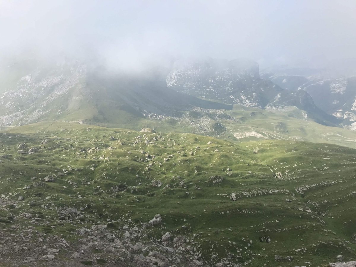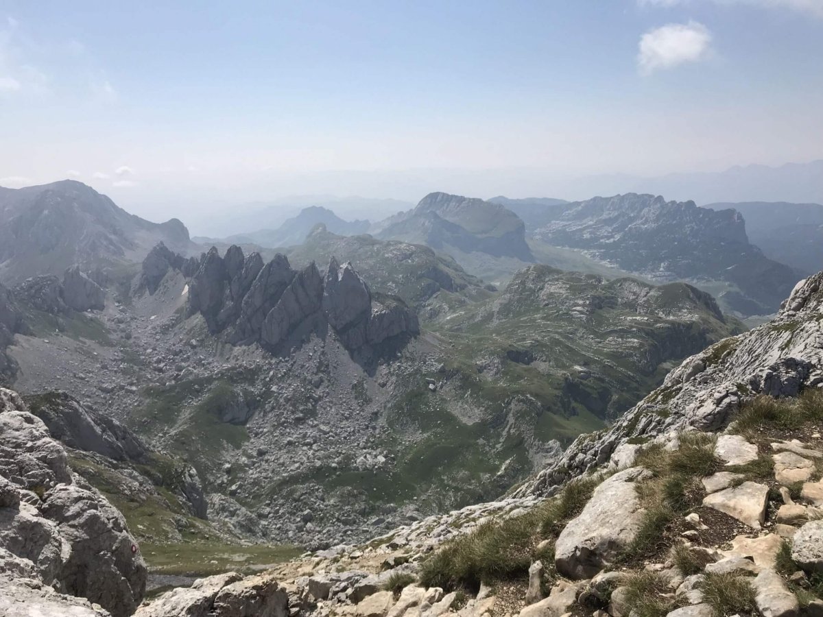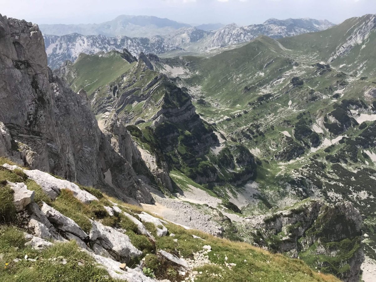 Na druhý den v Durmitoru jsem si naplánoval náročnější trasu přes Medjed, což je nejnebezpečnější hora v Durmitoru, budete se muset přidržovat hodně lan a upozorňuji vás, že je tam opravdu hodně míst, kde by byl člověk raději jištěný, nicméně to stálo za to. Cestu na Medjed jsem započal v Žabljaku, odkud jsem šel kolem Černého jezera, kde se nachází Titova jeskyně, kde měl jugoslávský komunistický odboj svůj hlavní štáb. Po okruhu kolem jezera jsem se vydal k ledovci Debeli namet, nad kterým se majestátně tyčí Savin Kuk. Na tomto místě se nachází červený bivak, kde lze zdarma přespat v pevném přístřešku, který vás spolehlivě ochrání před deštěm. Odtud jsem se dál vydal na Terzin bogaz a následně na Medjed, co se těchto dvou hor týče, mějte dobré obutí, nechoďte na ně s dětmi a dávejte si skutečně dobrý pozor, na Medjedu se zabilo nemálo lidí, týden před mým příjezdem se tam zabila holka z Malajsie. Po sestupu z Medjedu jsem došel zpátky do Žabljaku, kde jsem unavený padl do postele, ale ještě předtím jsem zašel do restaurace a odměnil se grilovaným masem (mešano meso je jídlo, které najdete v každé restauraci, bývá dražší, ale většinou je ho tolik, že se z něj nají dva lidé, v podstatě se jedná o každý druh grilovaného masa, který na Balkáně dělají, takže ochutnáte hodně v jednom jídle).