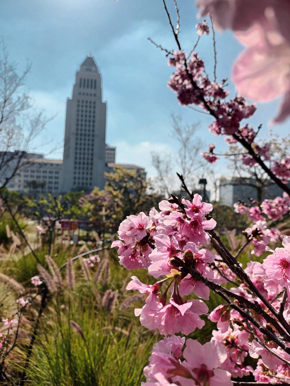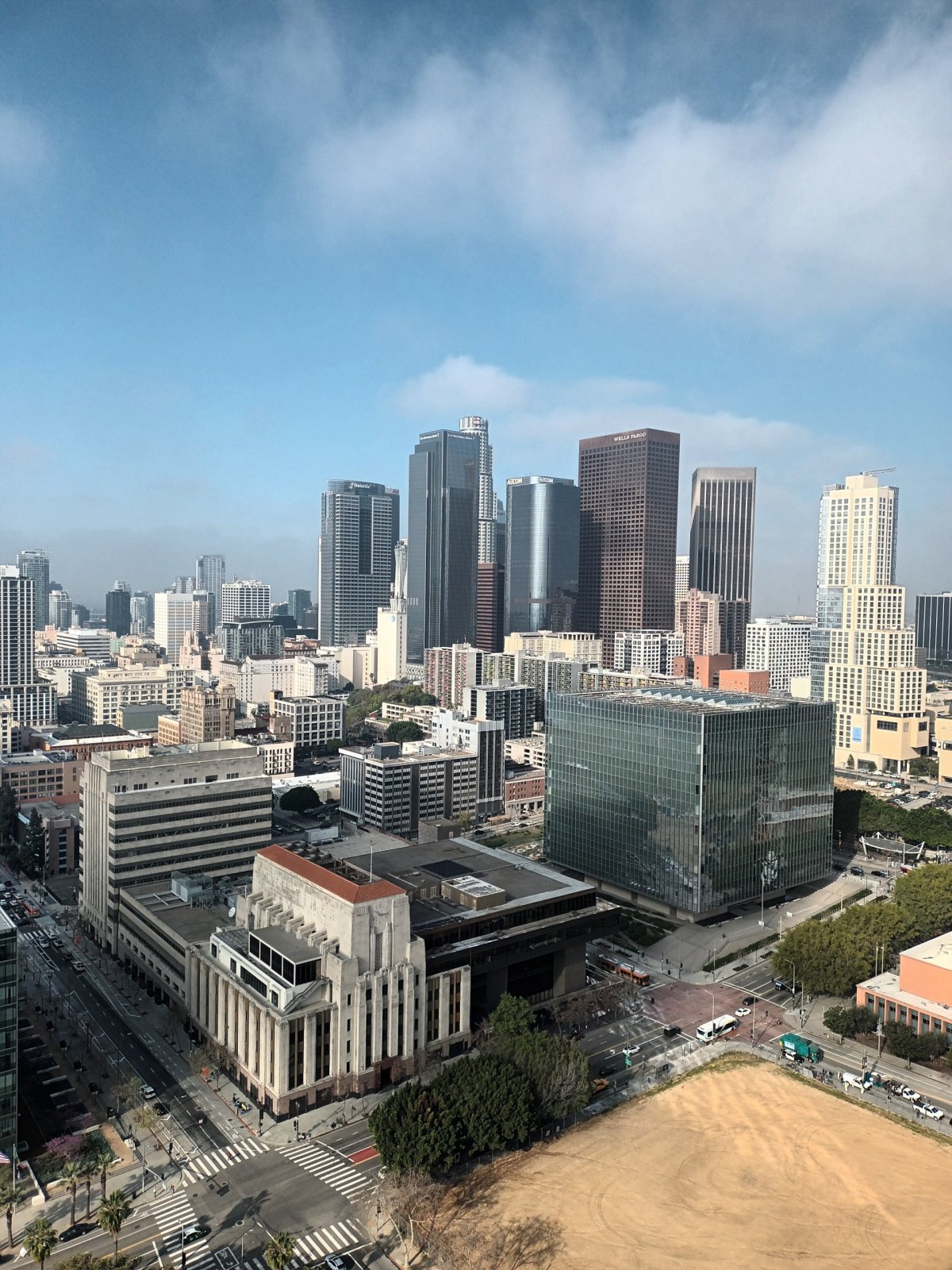 První den jsme vycházkový okruh začali v radnici City Hall, kam je zdarma vstup na vyhlídku ve 27. patře – stačí projít bezpečnostní kontrolou a předložit pasy.. a neztratit se v množství výtahů, když každý jede do jiného patra 😆 My jeli expresem do 22., tam jsme přestoupili na výtah do 26. a pak už jen pár schodů do 27. Výhled super a ráno v 9:00 jsme tam byli sami. Pokračovali jsme procházkou po okolí – ocelová koncertní síň Walt Disney Concert Hall navržená Frankem Gehrym, muzeum moderního umění The Broad, sportovní hala Staples Center (dnes Crypto Arena) se sochami Wayna Gretzkyho a Kobeho Bryanta, roztomilá japonská čtvrť Little Tokyo, vybetonované koryto L. A. River atd.