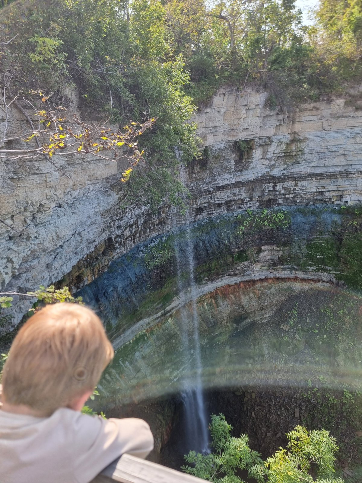 Další zastávka za další hodinu, vodopád Valaste. Tady jsme měli asi větší očekávání, navíc na začátku září ve vodopádu moc vody nebylo, ale naproti parkovišti byla aspoň kavárna, kde jsme si mohli dát konečně onu slibovanou snídani/oběd/svačinu/vše dohromady (panini a soljanka s pitím, dohromady okolo 12 €), na stolech byla zdarma k dispozici nasbíraná jablka z okolních stromů.