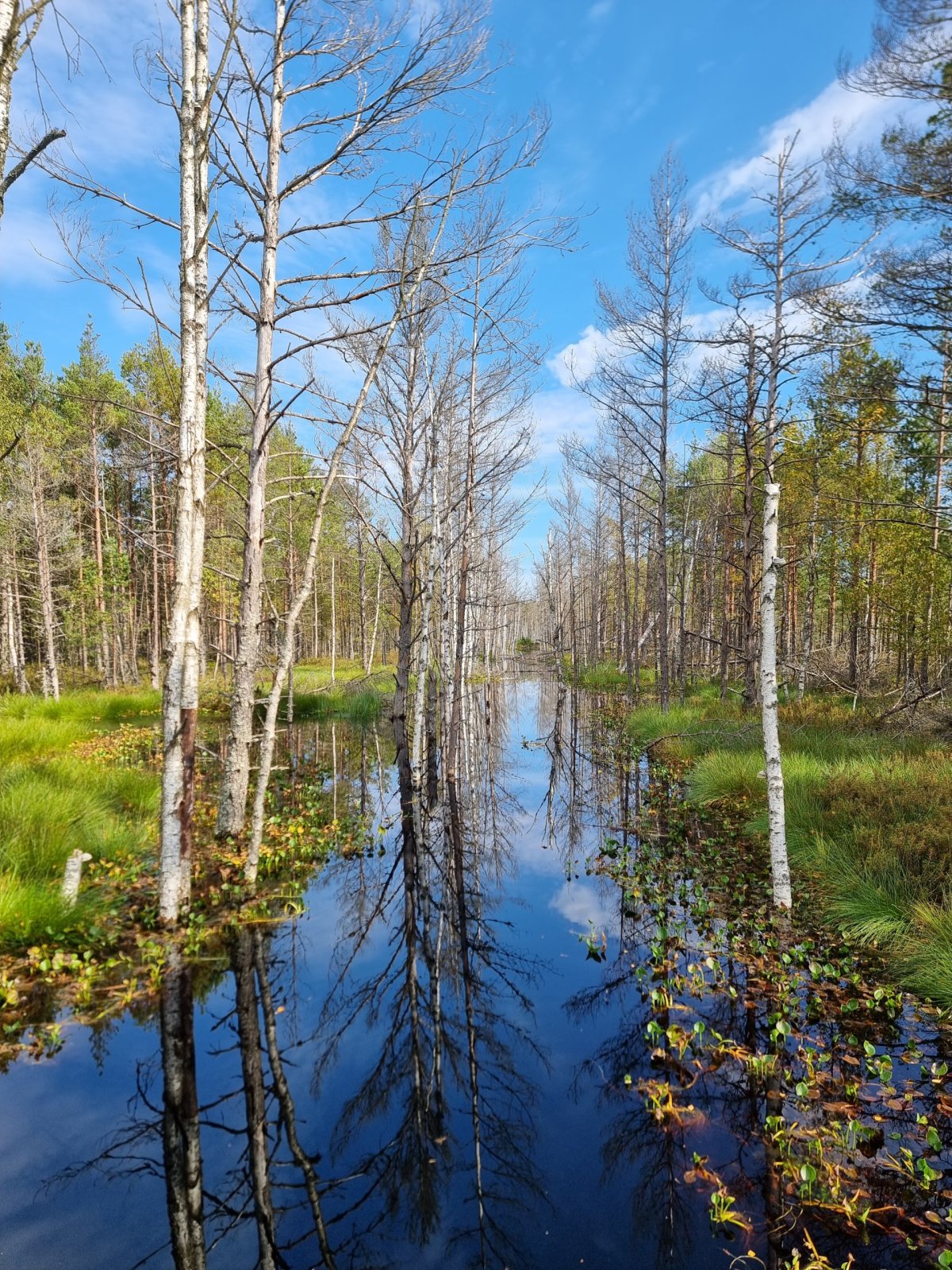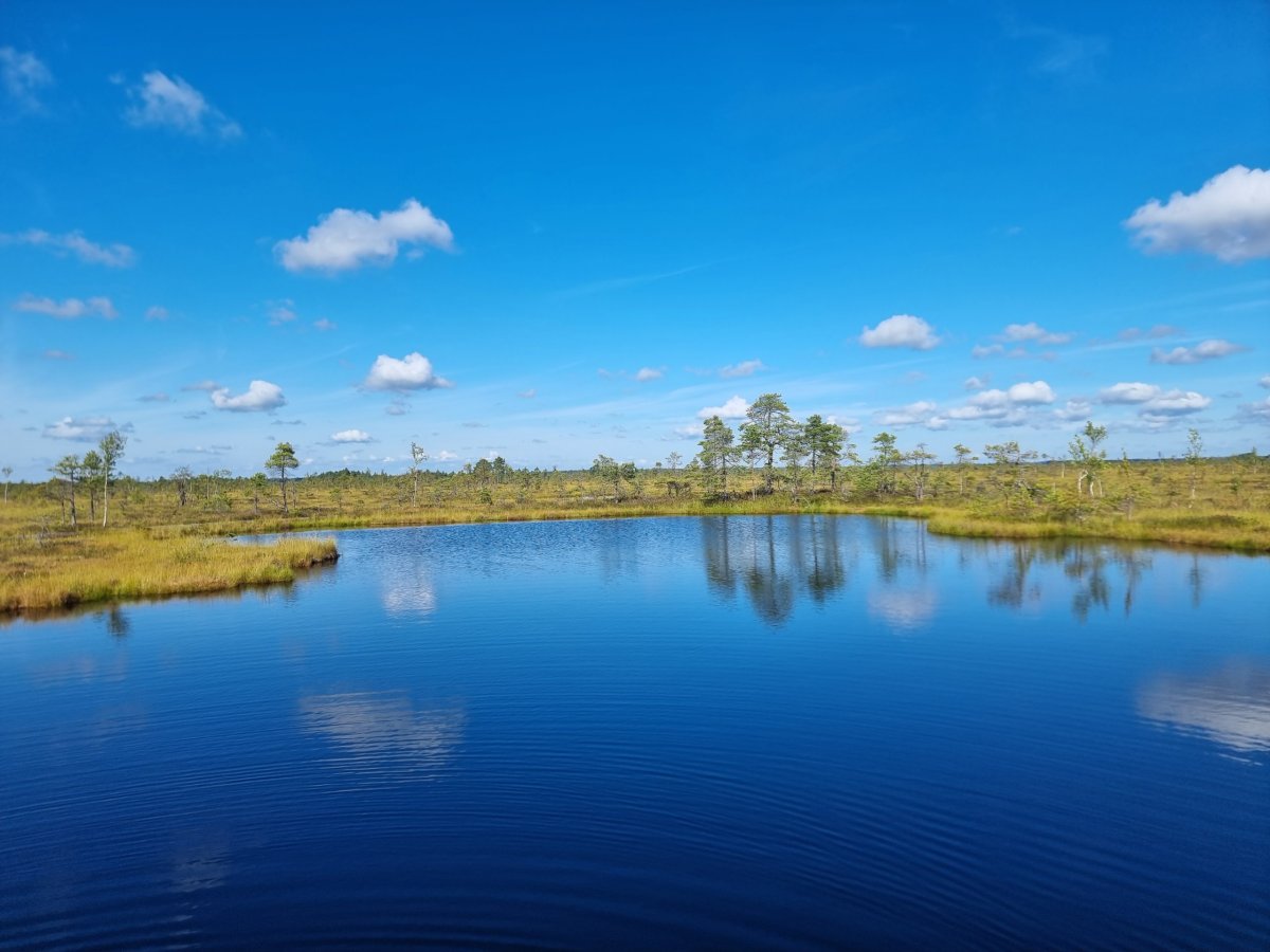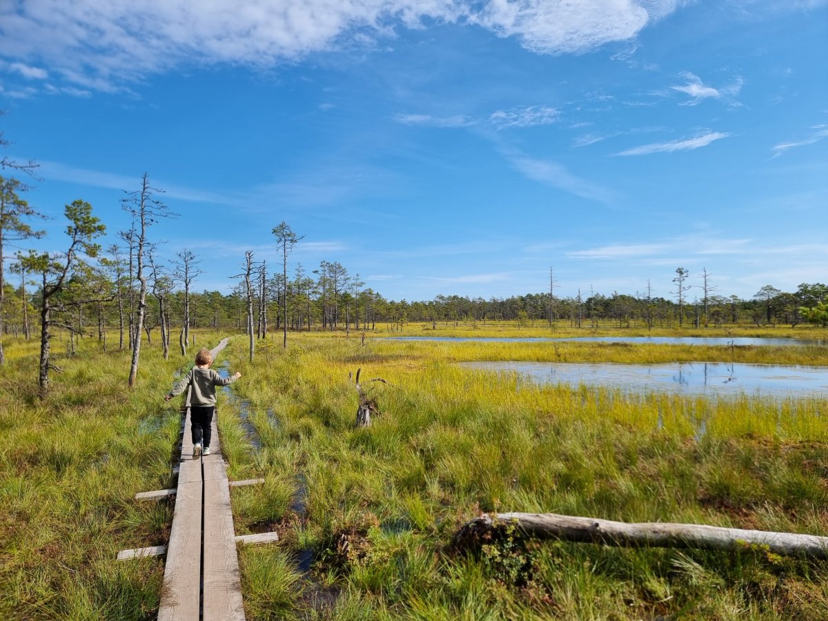 Asi půl hodiny jsme museli počkat na dovezení půjčeného auta, také můžu doporučit - společnost 1autorent, doručení na čas, cena za čtyři dny s poplatkem za dovezení na letiště a za dětskou sedačku 107 € (trochu starší Opel Corsa s nájezdem přes 150 000 km, ale s tempomatem a bluetoothem, víc vlastně nepotřebuji), chtějí depozit 200 €, který jsem platil kreditní kartou, poctivě depozit uvolnili okamžitě poté, co jsme auto vrátili. Bylo 9:30, čas kvapil a tak jsme rovnou vyrazili. Sliboval jsem J., že se zastavíme na snídani při první příležitosti po výjezdu z Tallinnu. No, a tady přišlo první překvapení - poté, co jsme vyjeli z Tallinnu směrem na Narvu, jsme dobrou hodinu nepotkali vůbec, ale vůbec nic. Rovná silnice, okolo pole, lesy, pole, lesy, ale jinak nic. I odříkáním živ je člověk, takže jsme dojeli na první plánovaný výlet, rašeliniště Viru Raba.