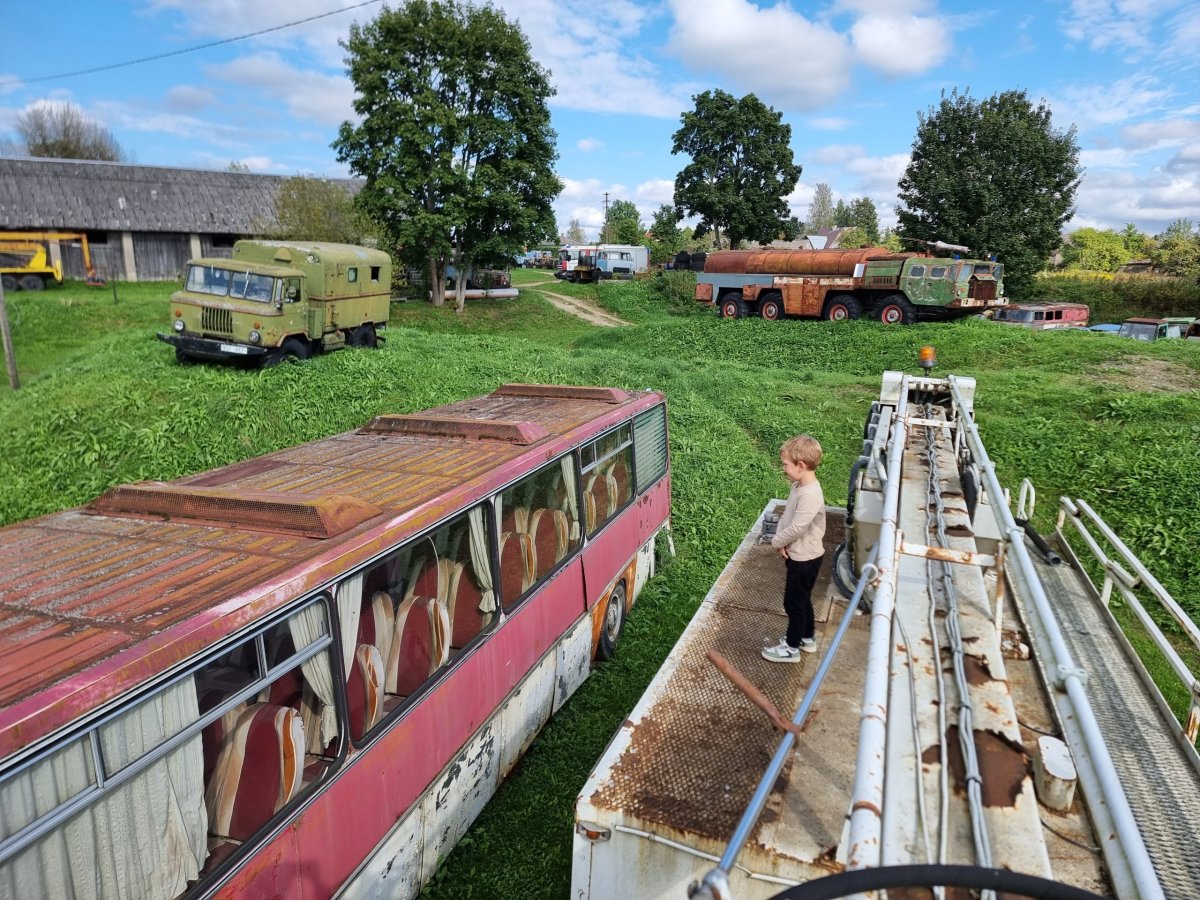 Po cestě dál jsem měl asi po dvaceti minutách vytipovanou zastávku v restauraci Route 22, k mému překvapení to bylo bistro u benzínky, ale jídlo měli obstojné, J. byl spokojený s řízkem a já měl docela solidní burger (s pitím dohromady asi 16 €). Necelých patnáct minut odtud bylo muzeum historických vozidel v Järva-Jaani. Vstup se platí kartou u turniketu (7 €), celé Estonsko funguje bezhotovostně, to pro mě byl ráj. Jedná se o venkovní "muzeum" - stovky a stovky historických vozidel, od hasičských, přes policejní, záchranná a vojenská až k osobním, autobusům, tramvajím... no zkrátka na co si vzpomenete. A nejlepší je, že do většiny z nich se dá dostat - dveře jde otevřít, prohlédnout interiér, ale pravdou je, že nejste-li ze železa a bez žaludku, asi byste si do nich nesedli. Nejen že se můžete dostat do vozidel, ale třeba hasičská auta mají i žebříky a můžete se tak vcelku bez problémů dostat i na ně (byť je to, jak jsem při odchodu zjistil, zakázané... pardon). Na místě jsme strávili jistě přes hodinu a půl, nic takového jsem ještě nikde neviděl, a po celou tu dobu jsme tam byli úplně sami. Estonsko u mě získávalo čím dál víc pozitivních bodů.